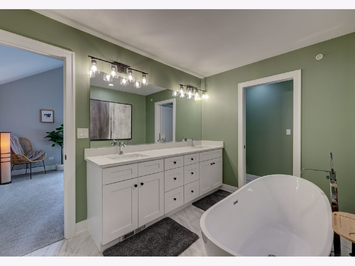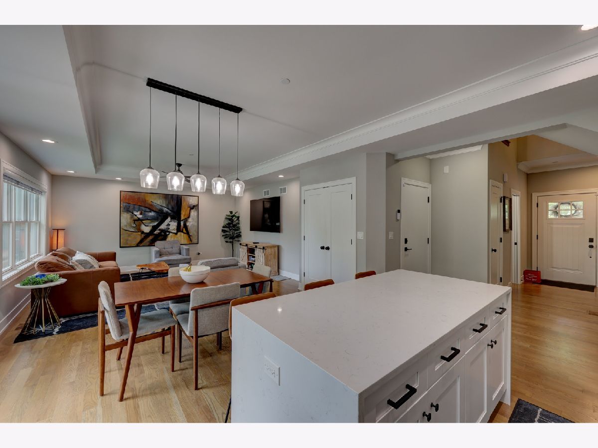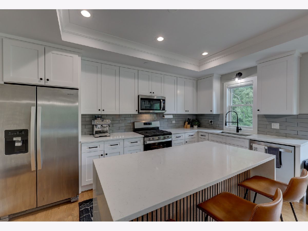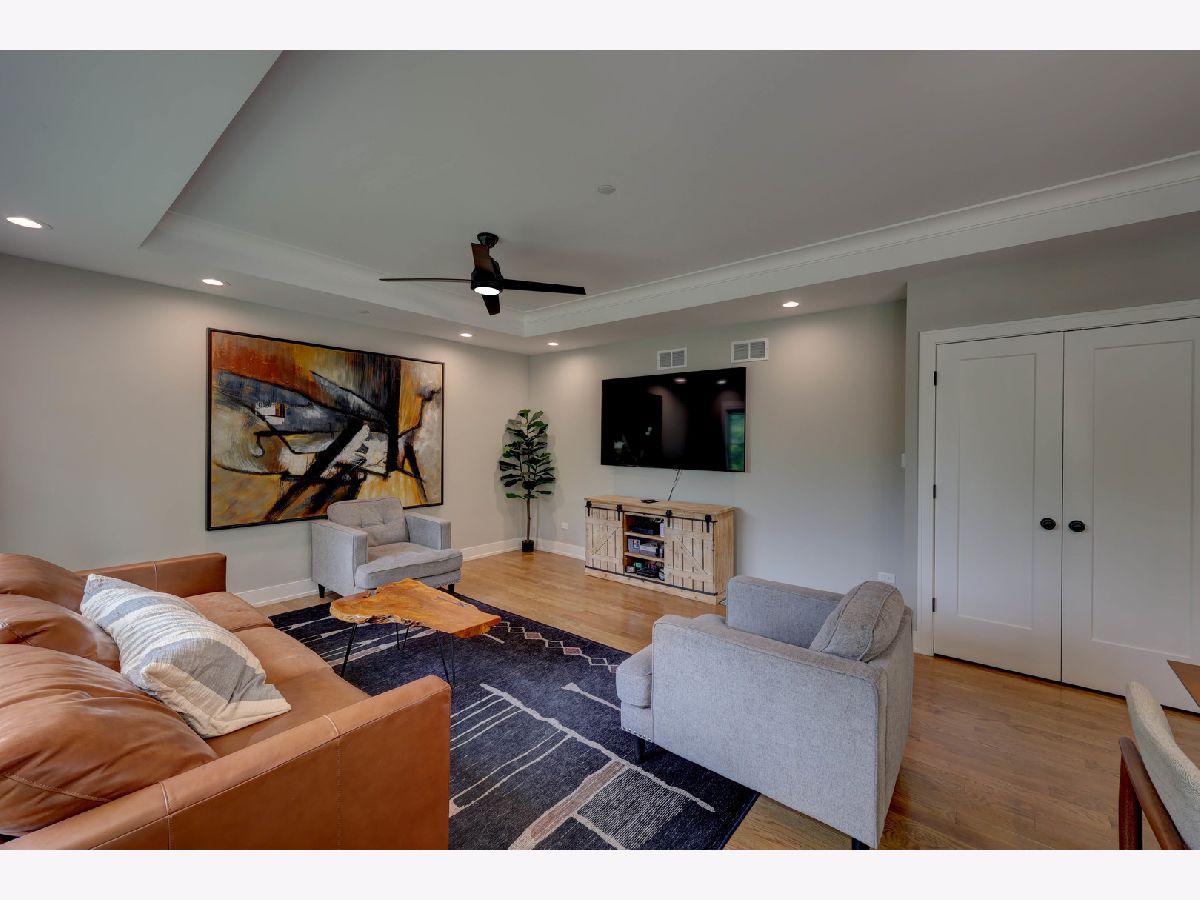 This custom-built townhome, completed in 2021, offers the perfect blend of open-concept design, elegant finishes, and highly functional living spaces. With 9-foot ceilings on both the main and upper levels and stylish recessed lighting throughout, the home feels bright, open, and effortlessly modern. From the moment you step through the front door, the warmth of hardwood flooring and the clean lines of shaker cabinetry set the tone for a sophisticated, move-in-ready experience. The kitchen is a true showpiece, featuring quartz countertops, stainless steel appliances, a spacious center island, and a sleek tile backsplash. It flows seamlessly into a light-filled dinette and a comfortable family room, anchored by a wall of Pella windows overlooking the private backyard. Step out onto the elevated deck-your own outdoor oasis-perfect for morning coffee or quiet evenings, surrounded by mature trees and lush landscaping. Upstairs, you'll find three generous bedrooms, including a luxurious primary suite with vaulted ceilings, a massive 12' x 6' walk-in closet, and a spa-inspired en suite bath. Indulge in the freestanding soaking tub, double quartz vanity, and oversized 6' x 4' walk-in shower finished in designer tile. A second-floor laundry room adds everyday convenience, complete with a utility sink and ample storage space. The finished basement offers additional living space with a flexible layout-ideal for a home theater, gym, playroom, or entertainment zone. A custom-built bar nook under the stairs features stylish cabinetry, a beverage fridge, and warm wood accents, creating a cozy and inviting atmosphere for gatherings or relaxing at the end of the day. Additional highlights include an oversized 20' x 19' garage with 11-foot ceilings, providing excellent vertical storage or space for larger vehicles. Surrounded by open areas, parks, ponds, and walking paths, yet just minutes from Woodfield Mall, Busse Woods, and all major expressways, this townhome offers the perfect balance of comfort, convenience, and community.