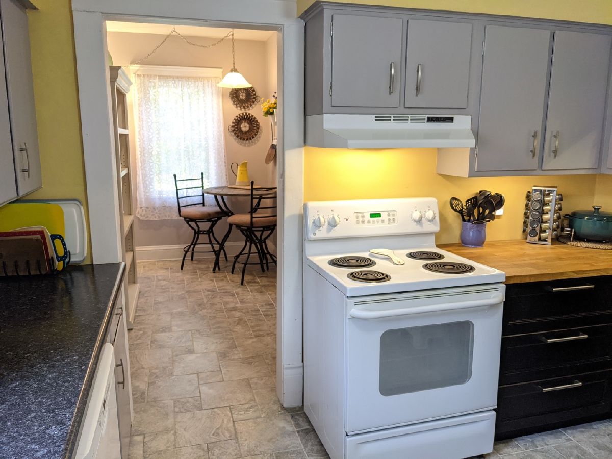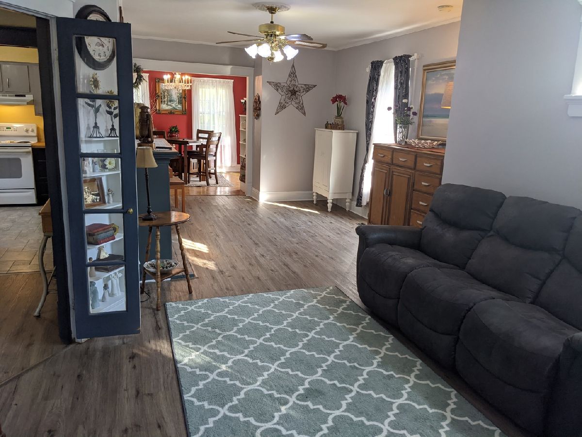 Curb appeal inside and out! Affordable utilities avg $80/mth electric, $59/mth gas, $86/mth water/sewer/trash. More updates than I can list here; roof, gutters, windows, electric circuit breaker panel, furnace, water heater, flooring on the main floor, kitchen, bathrooms, appliances, plumbing & more. Beautiful entry with french doors to huge living room, open to dining room with french doors to the 17' x 16' deck. Additional room between the kitchen and dining room great for a breakfast nook, office or school room. Kitchen with all appliances and double door pantry. Half bath on the main floor. Main floor is all tile or wood flooring, easy to maintain. Exterior is all maintenance free. Side door entrance from the garage makes it easy whether carrying in groceries or using the basement workshop. Upstairs 2 bedrooms, bonus room for office or nursery and full bath. Office has door to flat roof, great area to relax and enjoy. LL has lots of storage and cabinets.
