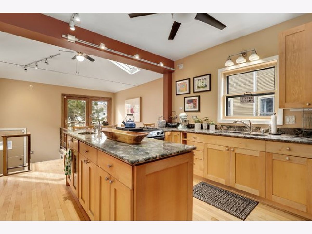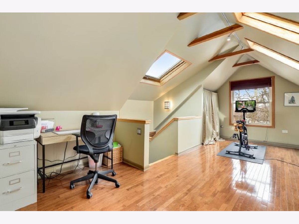 Welcome home to this Oak Park gem featuring classic charm with modern updates. The first floor open layout is a great space for entertaining, combining living room, dining room and pass through kitchen with vintage buffet cabinets. Featuring a large open kitchen with granite countertops, prep sink and plenty of cabinet space along with and a breakfast bar that seats 4. Enjoy breakfast in the separate eat in kitchen space overlooking the large deck which leads to a beautiful fully-fenced yard with raised garden beds, cedar arbor swing, additional patio, 2 car garage, with a parking pad for a third car. Second floor has 4 bedrooms with a nicely updated bathroom. Third floor primary suite is a great place to unwind. Large and light filled capable of holding your king bed with en suite bathroom, skylights and plenty of space for an office, workout or yoga area. Full, unfinished basement with laundry, storage, and room for shop or studio. Within blocks to local schools, parks, pool, ice rink, Farmers' Market, restaurants and Green Line & Metra stations. Schedule your showing today, this one won't last