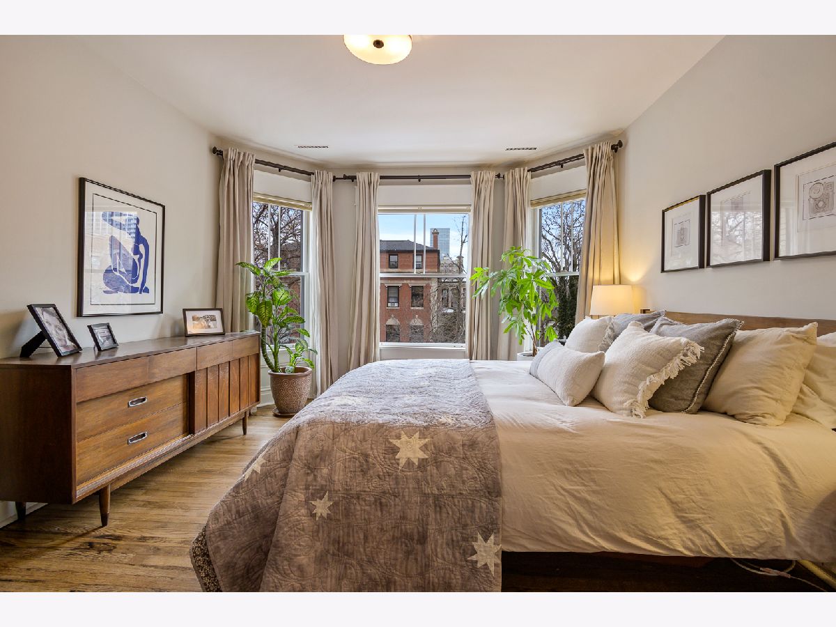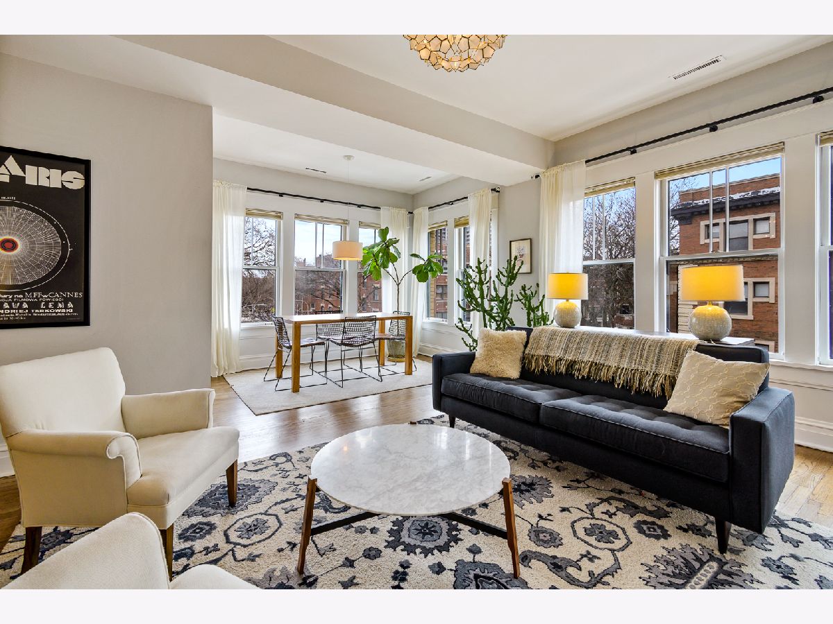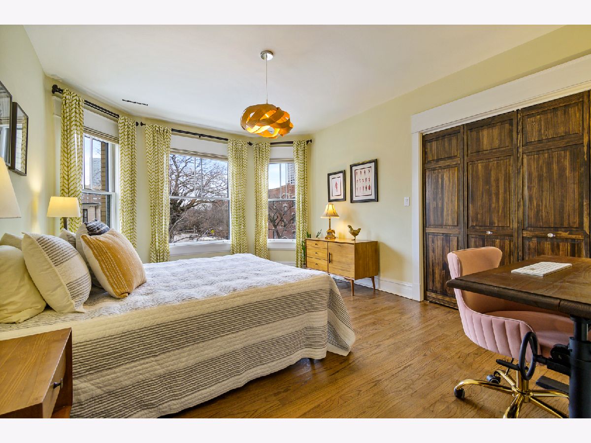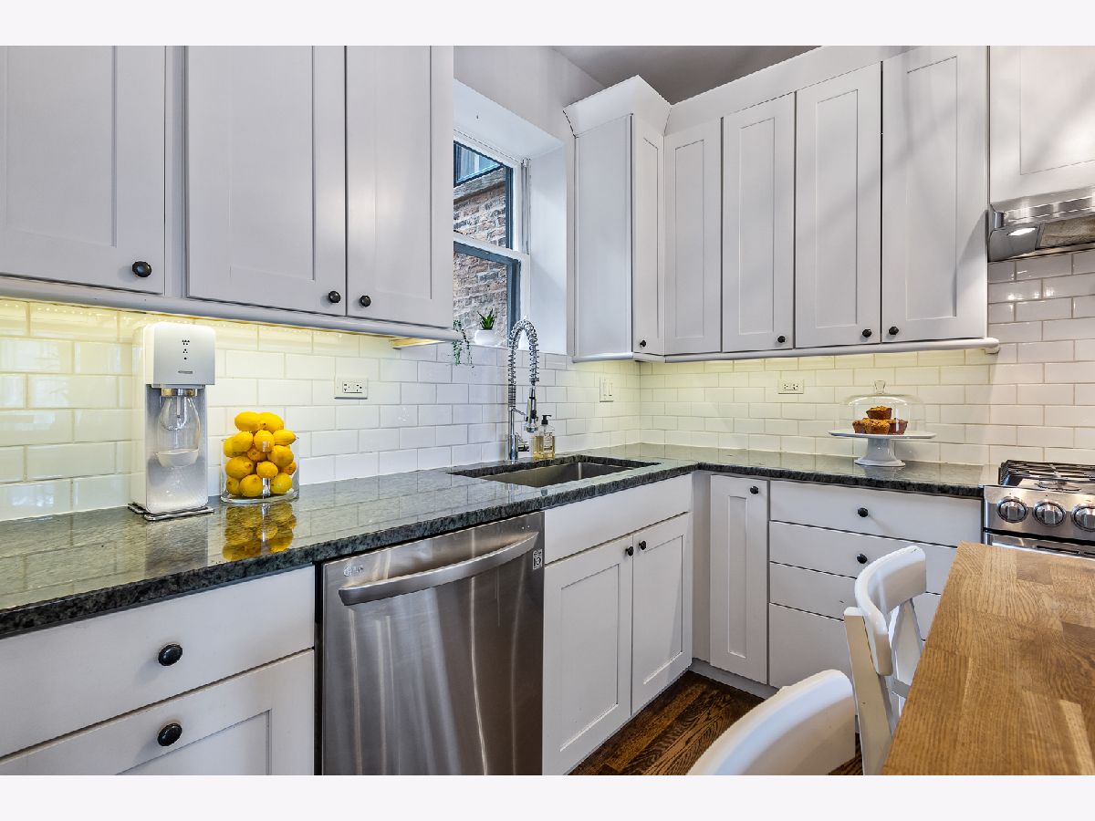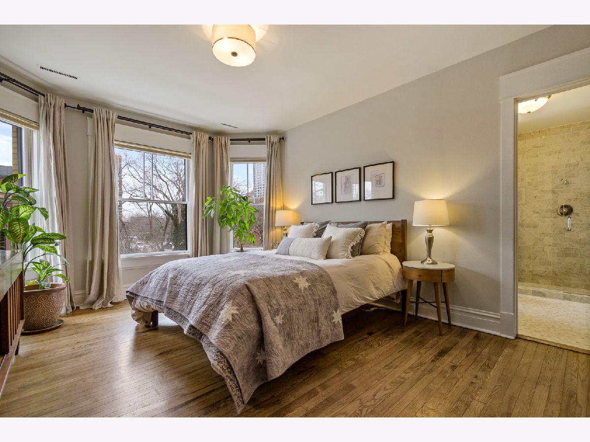 Buena Park 3 bedroom 2 bath home features recent renovations while keeping its vintage charm. Located in the historic area between Lakeview and Uptown just steps to the lakefront, dining, and convenient shopping. Gut renovated eat-in kitchen features 42" white cabinets with under cabinet lighting, stainless steel appliances, 5 burner gas stove, granite counter tops, chefs island with butcher block top, and adjacent pantry. Open concept kitchen leads into a large family room which is perfect for TV/entertaining. Outdoor deck space off the kitchen. Sun filled front living room/ dining room has 2 full walls of windows facing east and north. Features include gas fireplace, custom mantel surround with marble tile, built in cabinets and shelving. Gut renovated bathrooms. Primary marble bath offers frameless glass walk in shower with 2 separate shower heads and Restoration Hardware vanity. Second marble bath has subway tile shower surround, soaking tub and Restoration Hardware vanity. Primary bedroom and BR 2 are very large, filled with lots of light from big bay windows and feature organized closet systems. BR 3 is perfect for guests/ home office. Hardwood floors throughout. All new lighting fixtures. New solid wood doors. In unit washer/dryer. Large storage space (11 ft X 12 ft). Includes 1 secured gated parking space.