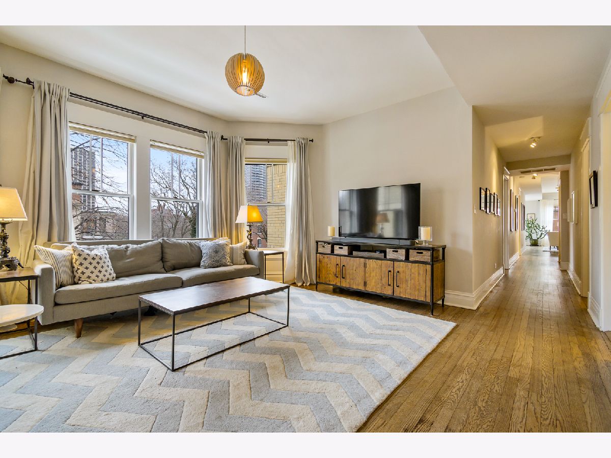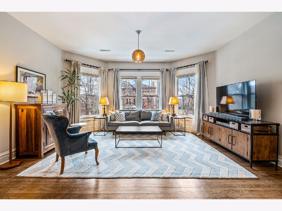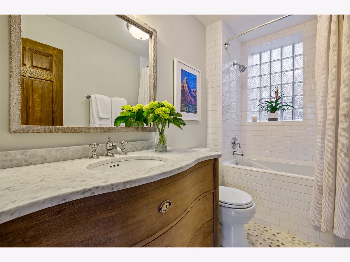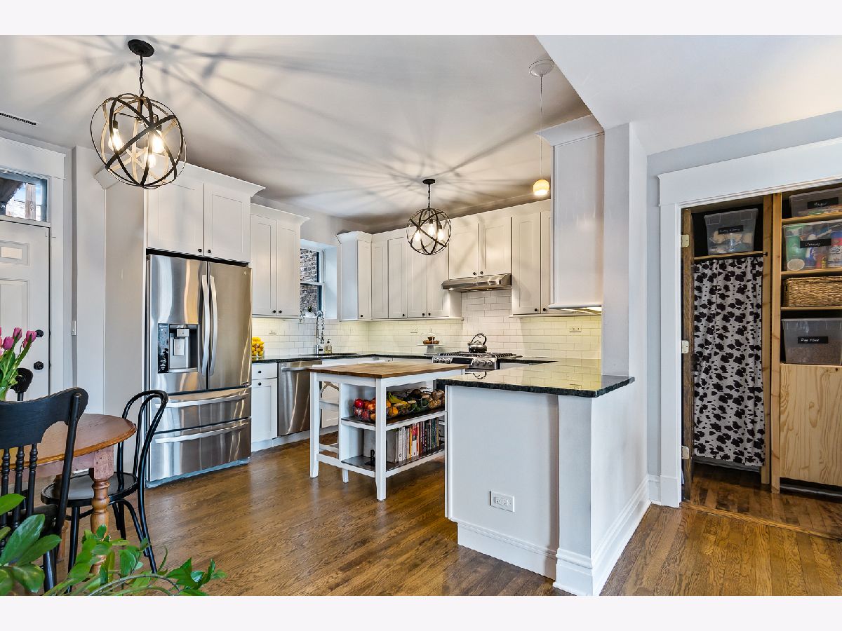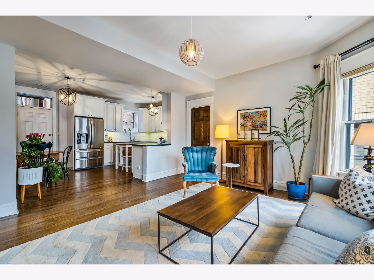 Buena Park 3 bedroom 2 bath home features recent renovations while keeping its vintage charm. Located in the historic area between Lakeview and Uptown just steps to the lakefront, dining, and convenient shopping. Gut renovated eat-in kitchen features 42" white cabinets with under cabinet lighting, stainless steel appliances, 5 burner gas stove, granite counter tops, chefs island with butcher block top, and adjacent pantry. Open concept kitchen leads into a large family room which is perfect for TV/entertaining. Outdoor deck space off the kitchen. Sun filled front living room/ dining room has 2 full walls of windows facing east and north. Features include gas fireplace, custom mantel surround with marble tile, built in cabinets and shelving. Gut renovated bathrooms. Primary marble bath offers frameless glass walk in shower with 2 separate shower heads and Restoration Hardware vanity. Second marble bath has subway tile shower surround, soaking tub and Restoration Hardware vanity. Primary bedroom and BR 2 are very large, filled with lots of light from big bay windows and feature organized closet systems. BR 3 is perfect for guests/ home office. Hardwood floors throughout. All new lighting fixtures. New solid wood doors. In unit washer/dryer. Large storage space (11 ft X 12 ft). Includes 1 secured gated parking space.