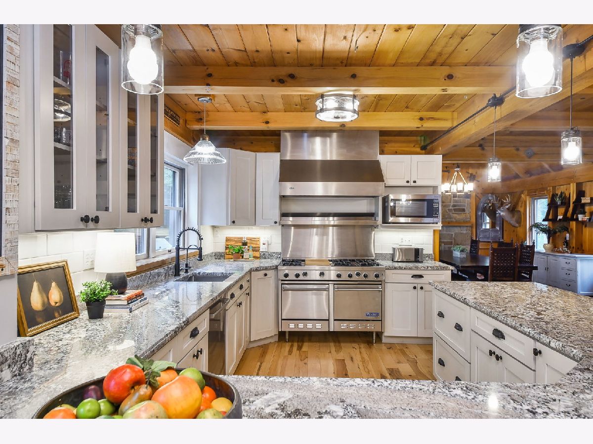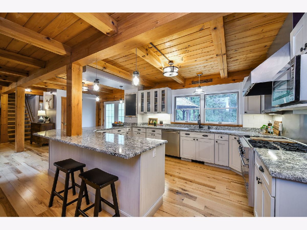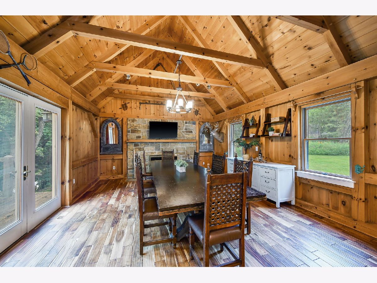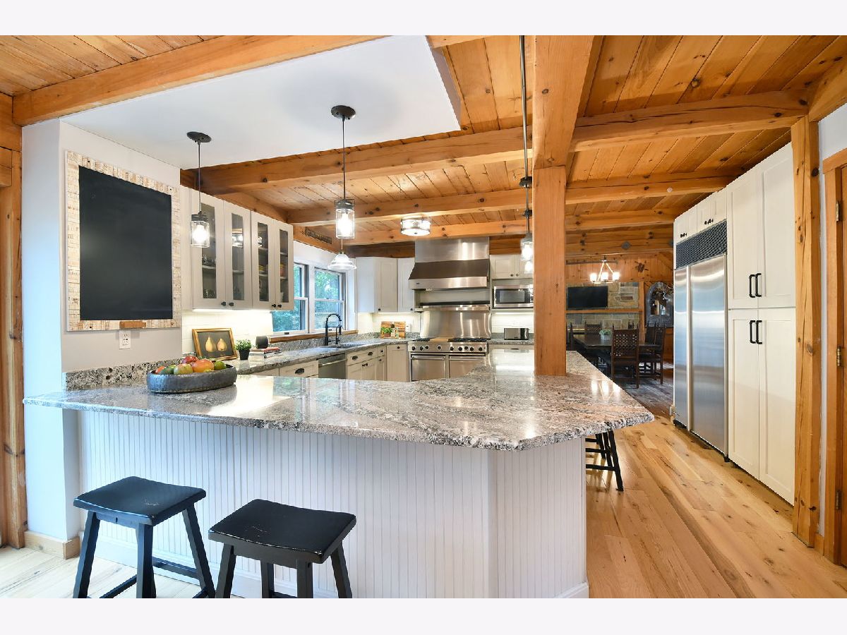 Tucked away on 1.5 acres with a winding private drive, this one of a kind Timberpeg home offers the warmth of a mountain retreat with the space and convenience of modern living. With over 4,000 square feet of living space, it combines rustic charm with updated style in a truly special setting. Inside, you'll find soaring vaulted log ceilings, exposed beams, and an inviting layout filled with character. The completely renovated kitchen features a Viking range, Sub-Zero refrigerator, abundant cabinetry, granite countertops and soft-close drawers. Bathrooms and lighting have been thoughtfully updated throughout, blending seamlessly with the home's timeless craftsmanship. A cozy loft area adds flexible space for storage, or a creative retreat. The walkout basement, expansive deck, and gazebo overlook the wooded lot, where you'll also find a hiking trail and small sledding hill perfect for winter fun. Thoughtful details like the copper roof on the front portico add to the home's distinct appeal. The product of a classic house raising, this property is as unique as it is welcoming. Just minutes from area amenities and part of the award-winning St. Charles school district, this home offers the rare opportunity to feel like you're on vacation every day, without ever leaving the comfort of home.