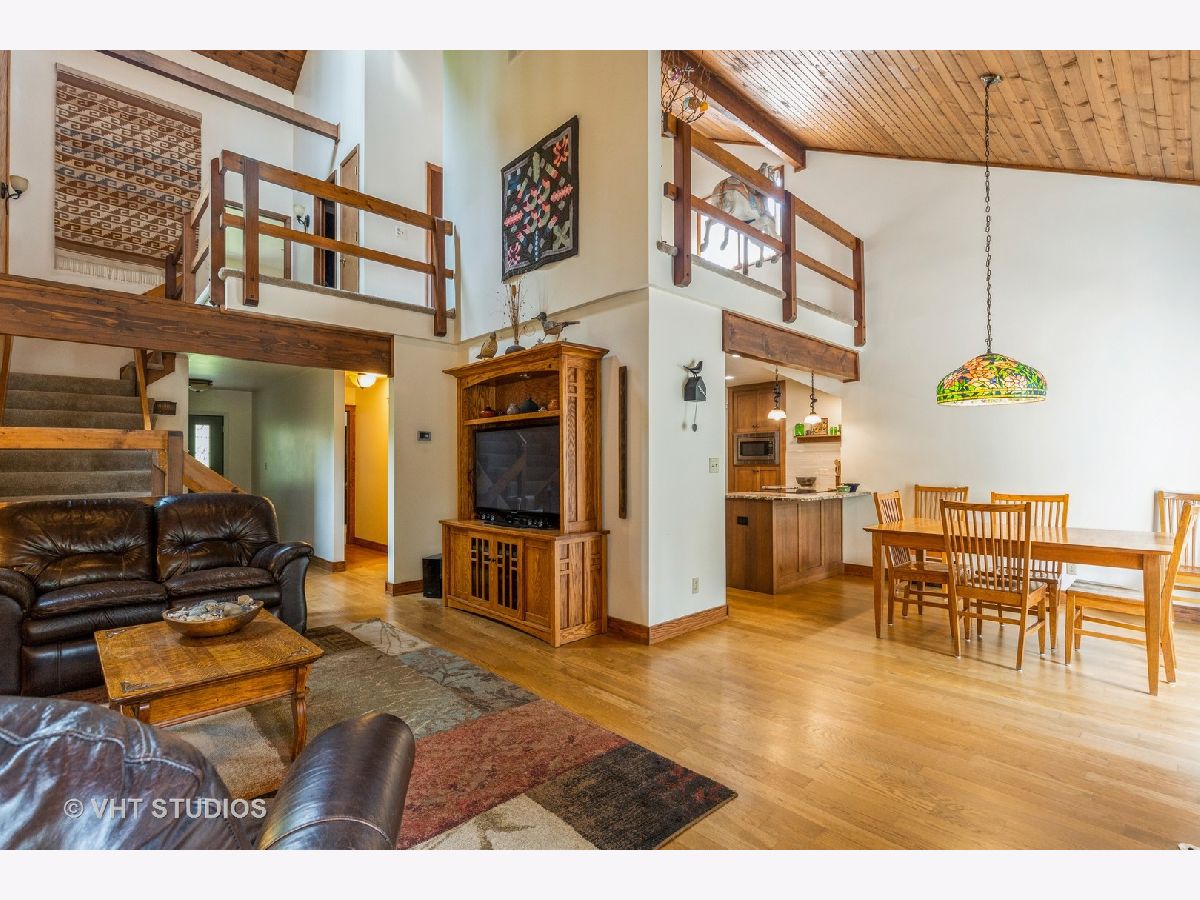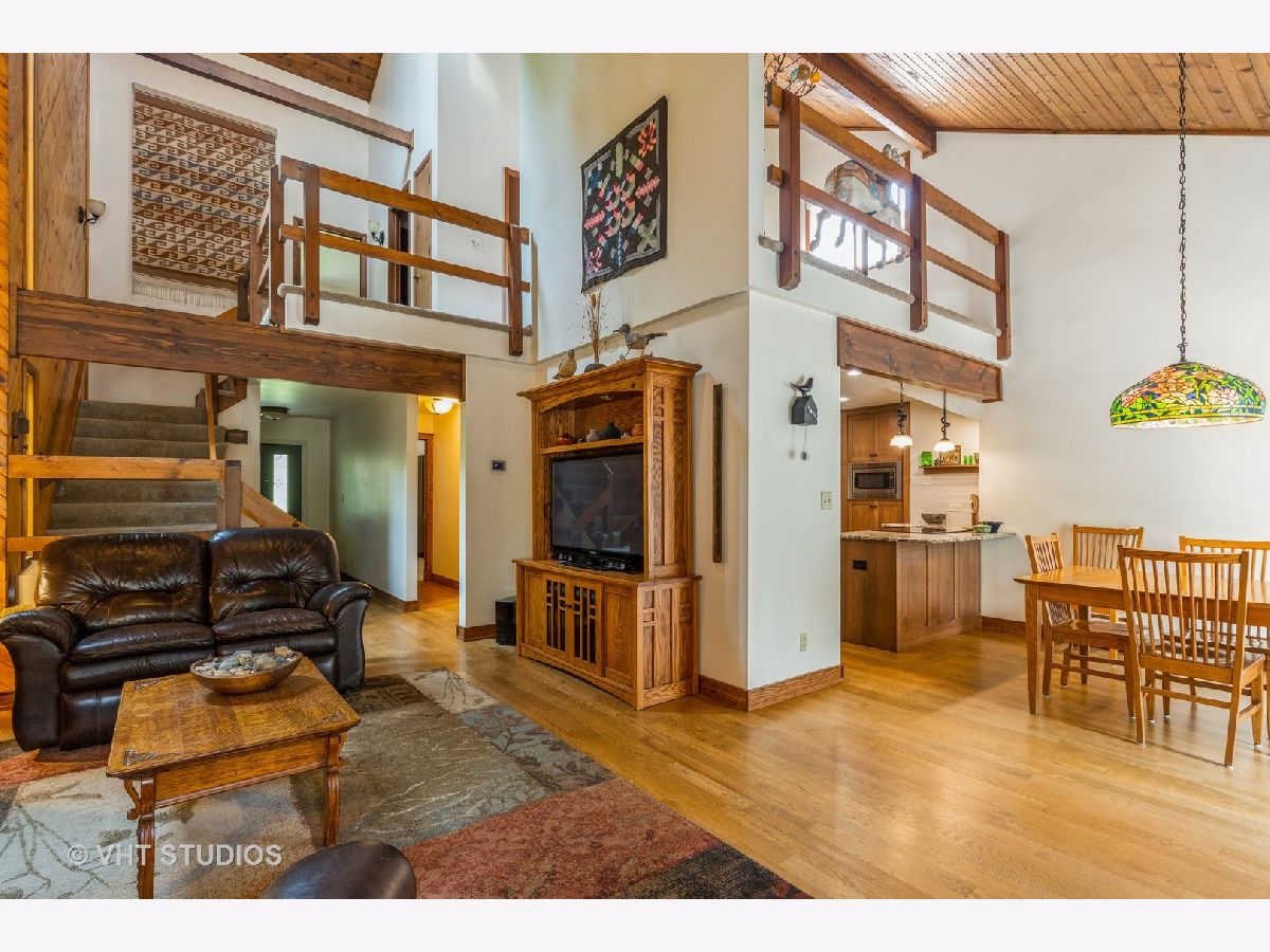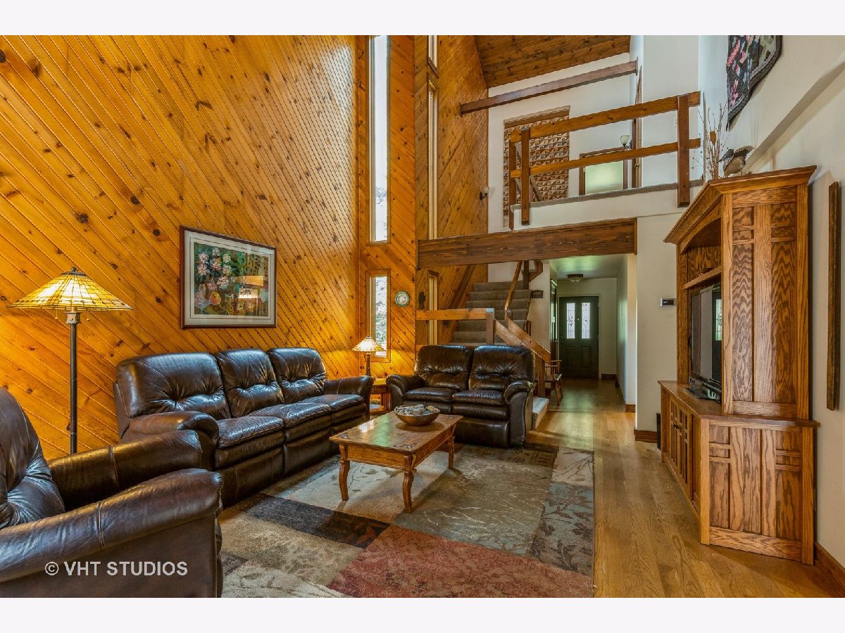 Won't want to miss this amazing home. Contempary style home that has it all. 3 Bedrooms 2 and a half baths, plus the loft overlooking the living area. 2 car attached garage also includes main floor laundry. Soaring ceilings, floor to ceiling stone gas starter fireplace. fireplace. Outdoor there is a pool and park like setting Situated on almost and acre, surrounded on 3 sides by forest preserve, makes this home completely private. Kitchen, bathrooms and balcony have all been updated recently.