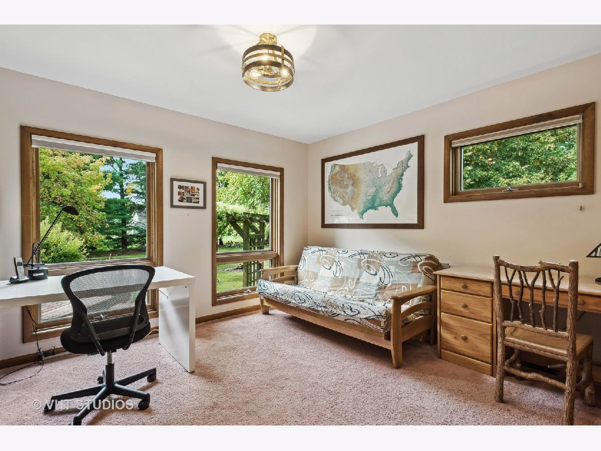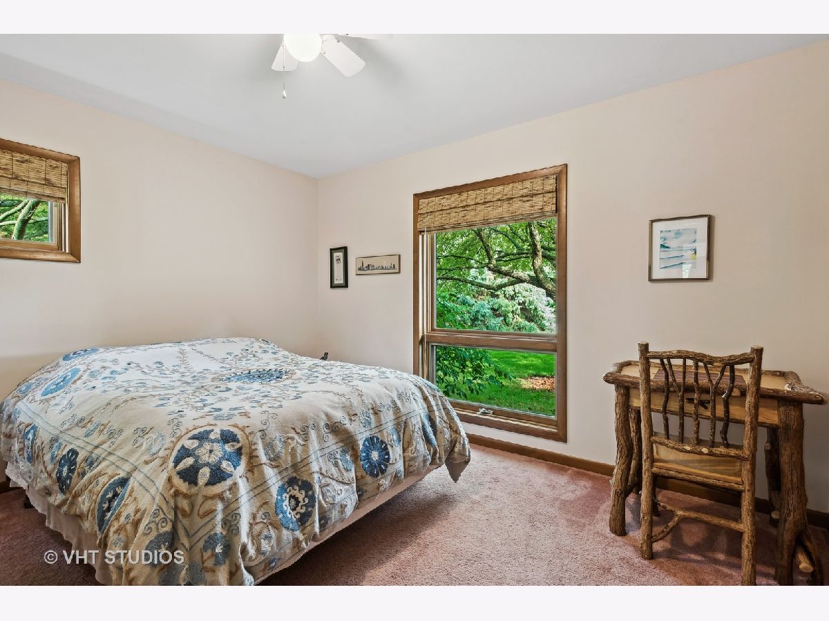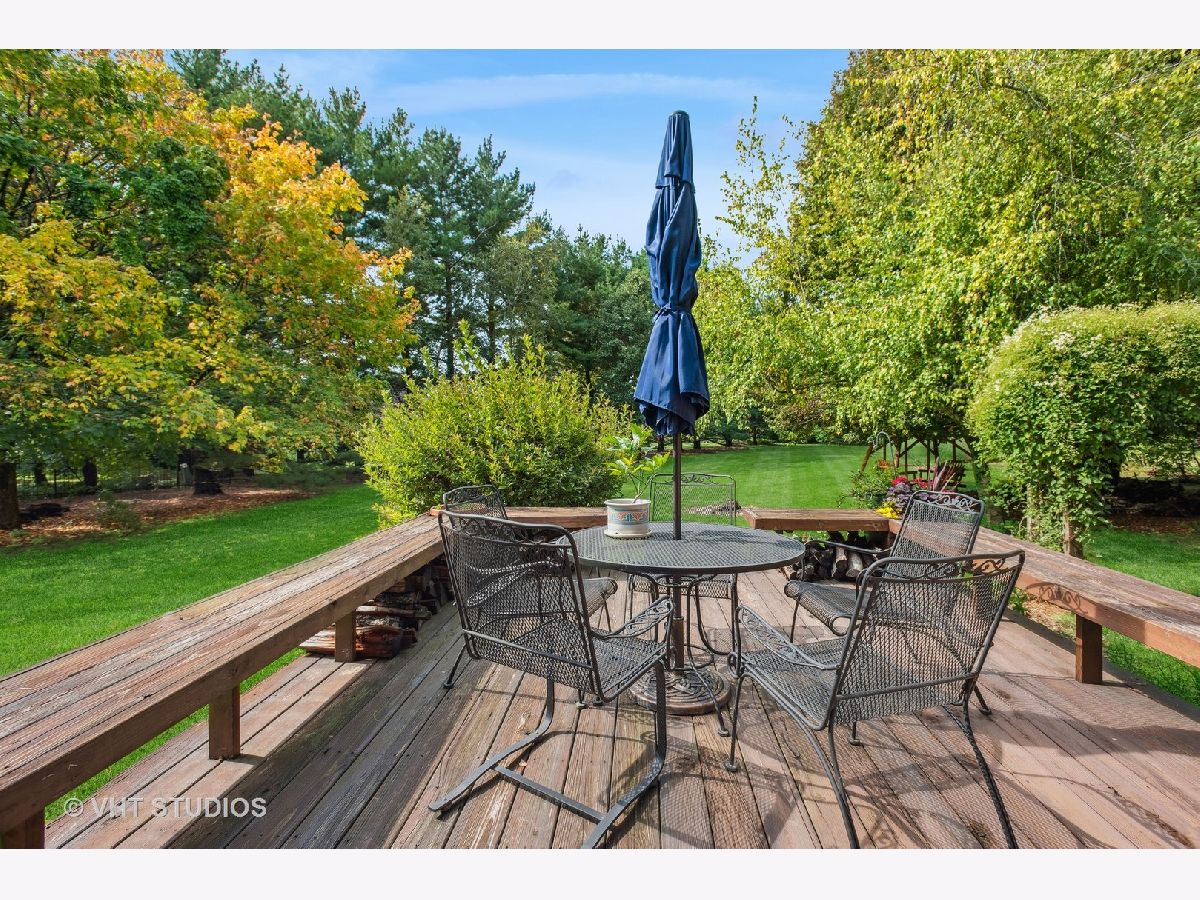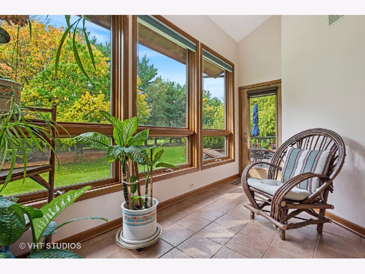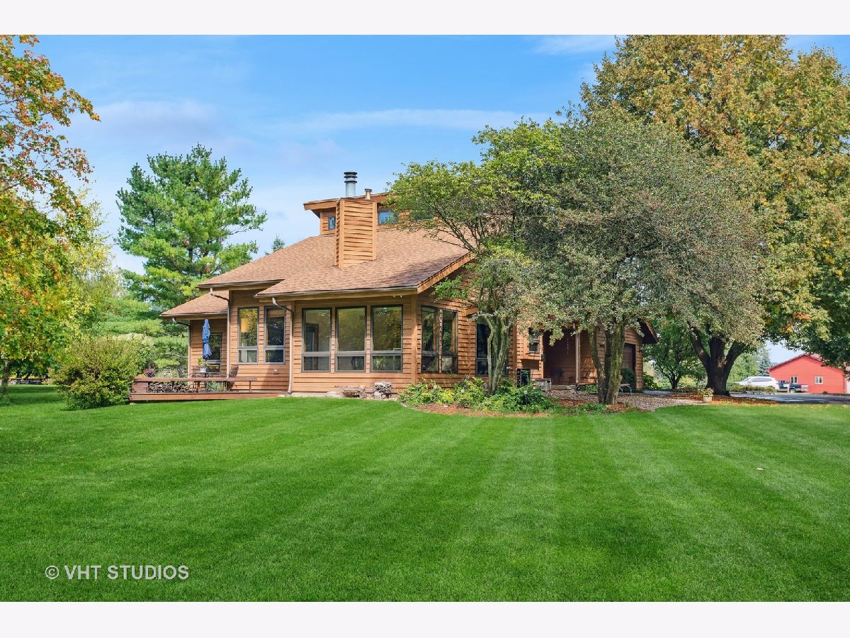 Escape the ordinary with this custom-built home nestled on a secluded cul-de-sac, offering over 1.25 acres of serene privacy. As you step into the foyer, you'll immediately notice the meticulous upkeep and the abundance of natural light flooding through numerous windows. The family room, directly ahead, features a soaring vaulted ceiling, a brick fireplace, and beautiful views. The functional layout seamlessly transitions from the family room to the open-concept dining room and kitchen area. Off the dining room, you'll find a 4-season room, encased in windows and featuring radiant heated floors. Imagine savoring your morning coffee here while enjoying year-round panoramic views! Adjacent to the kitchen is the mud/laundry room, complete with a sink, ample cabinets, and a convenient folding space. This room provides access to the foyer, garage, basement, and side entrance. Completing the first floor are two bedrooms and a full bath that has been refreshed with new tile floors, tile shower surround and vanity top and faucet. Radiant heated floors grace both bedrooms and the bathroom. Upstairs, the vaulted ceilings continue, leading you to a loft with a wall of custom-built bookshelves and the primary bedroom. The primary bedroom has a spacious walk-in closet and an en-suite bathroom with a newly tiled shower, new shower door, new countertops, and a jacuzzi bathtub to unwind in. The full basement offers ample storage or the potential to create your dream space. The outdoor area is a sight to behold, featuring lush lawns, mature trees, garden beds, a charming trellis and swing, and a deck. Experience a tranquil country lifestyle while still be just minutes to commuter train access, interstate connections, the charming town of Elburn, forest preserves with miles of trails for the outdoor enthusiast, and the region's finest shopping and dining options along the Fox Valley corridor. A very special home in so many ways!