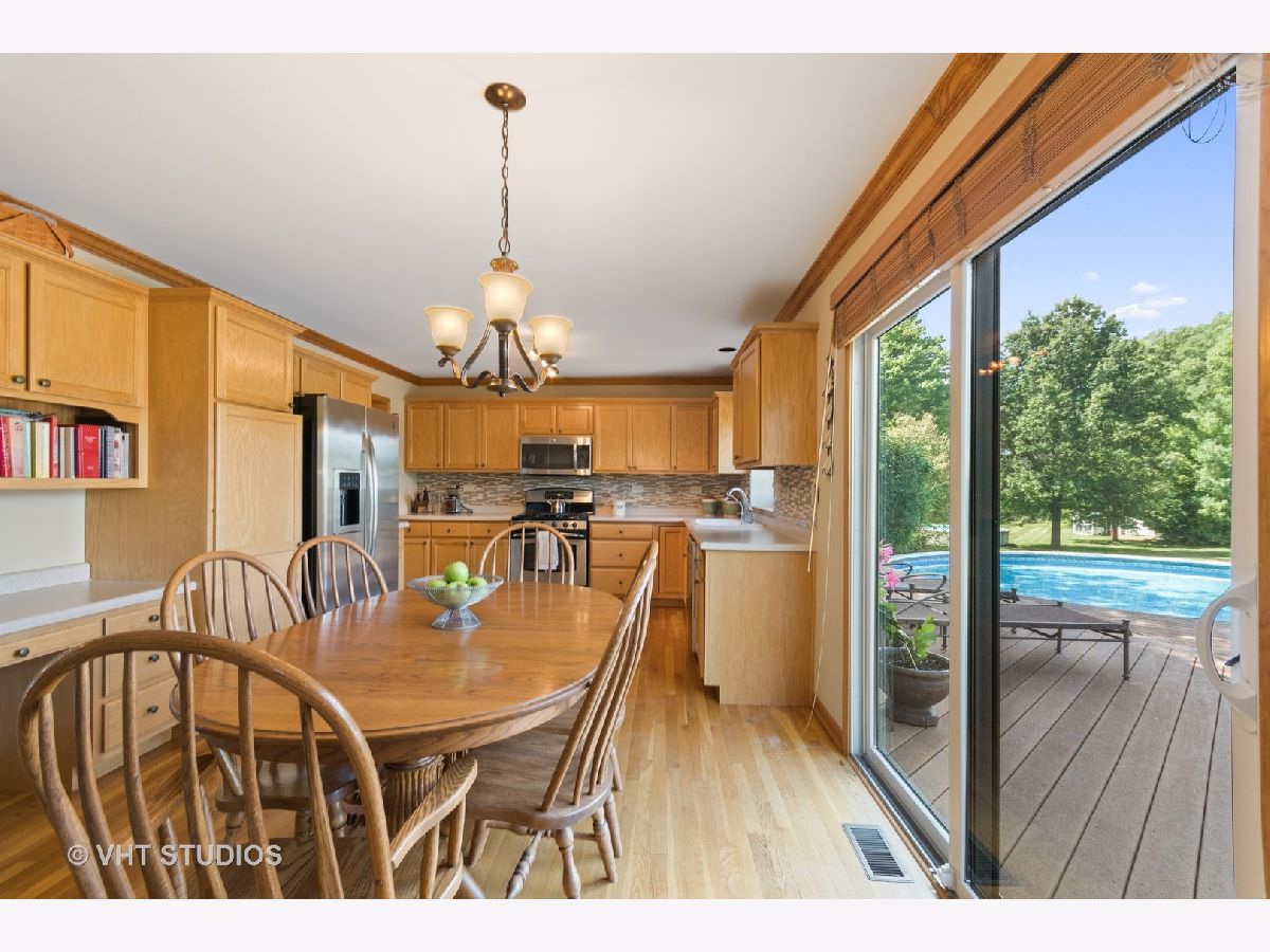Light and bright throughout, this one owner home is perched on 1.25 acres of land with privacy and room to breathe, yet close to everything! NEW WINDOWS IN 2019, NEW ROOF IN 2017, hardwood flooring, 6 panel doors, vaulted and trey ceilings, pool and large trex deck! The spacious living room has a bay window, vaulted ceiling and arched window. The dining room features a chair rail and crown molding. The kitchen has pretty pale oak cabinetry, custom back splash, desk area and stainless steel appliances. The kitchen and eat in area are open to family room with a brick fireplace and a wall of windows to take in the country views. The mud/laundry room is on the first floor as well. Upstairs are 4 bedrooms, the master having a trey ceiling, walk in closet, and en suite bath complete with jetted tub and dual sinks. The expansive deck surrounding your pool is perfect for entertaining. You are sure to enjoy this small, quaint neighborhood while living in the country. All this with the priceless element of being beautifully maintained! Minutes to train, forest preserves, and Randall Rd for all the Fox Valley has to offer!