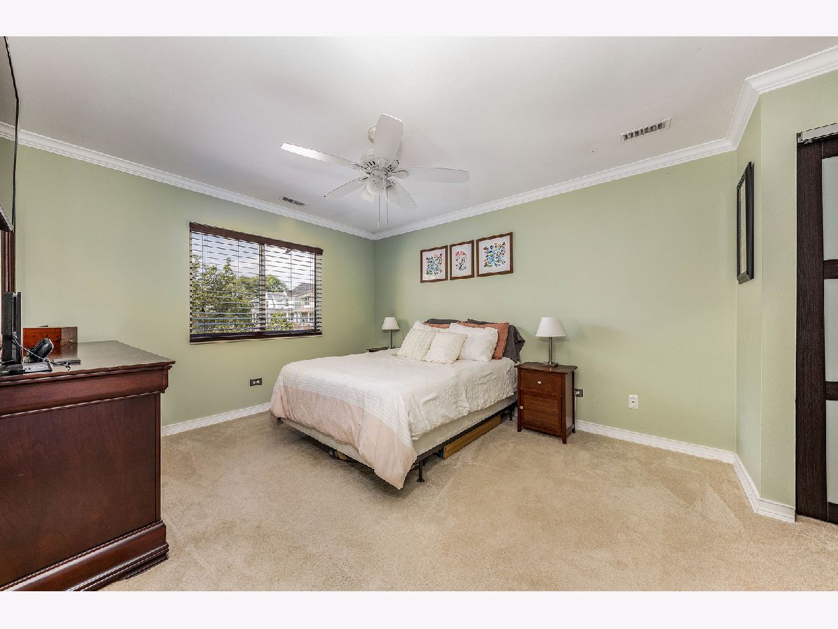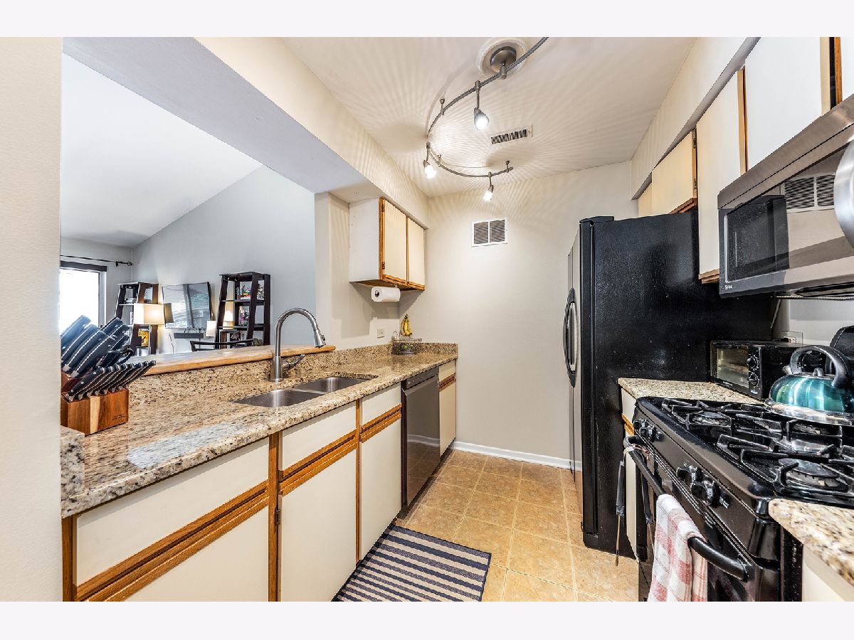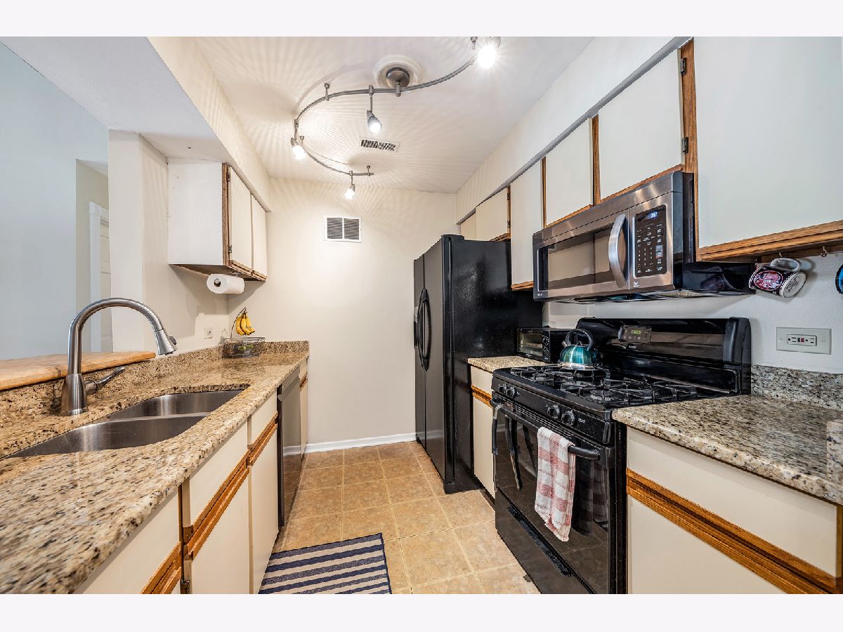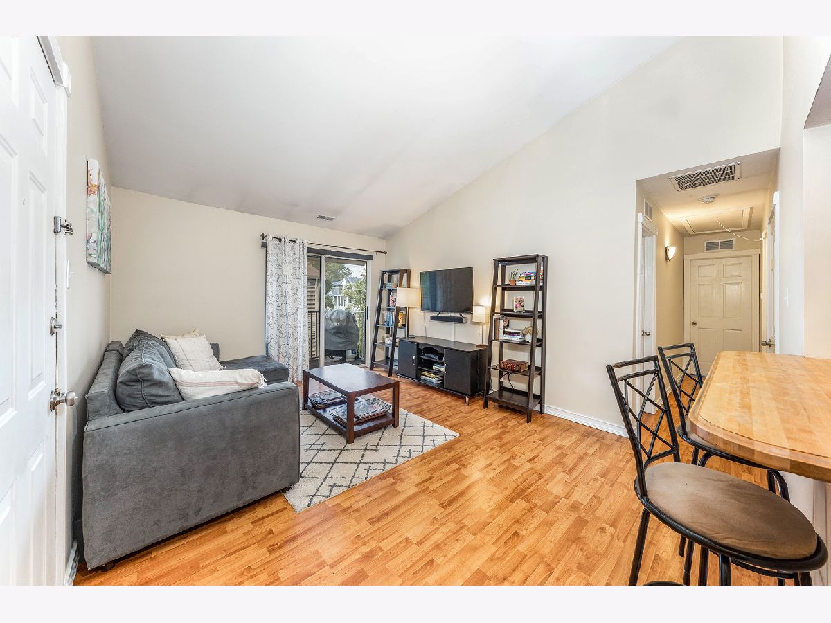 Bright & updated condo! Gorgeous unit with balcony, steps from everything downtown Lombard has to offer and only one block from the Metra Station. Close to parks, Prairie Path and in very desirable school district 44. Spacious second floor unit has vaulted ceilings in living & dining room, beautiful hardwood style laminate floors, open galley kitchen with breakfast bar, pantry, granite counters, custom tile work in both updated bathrooms, newer carpeting in both bedrooms, in unit stackable laundry, loads of attic storage and 2 parking spaces!