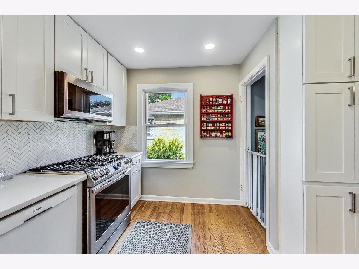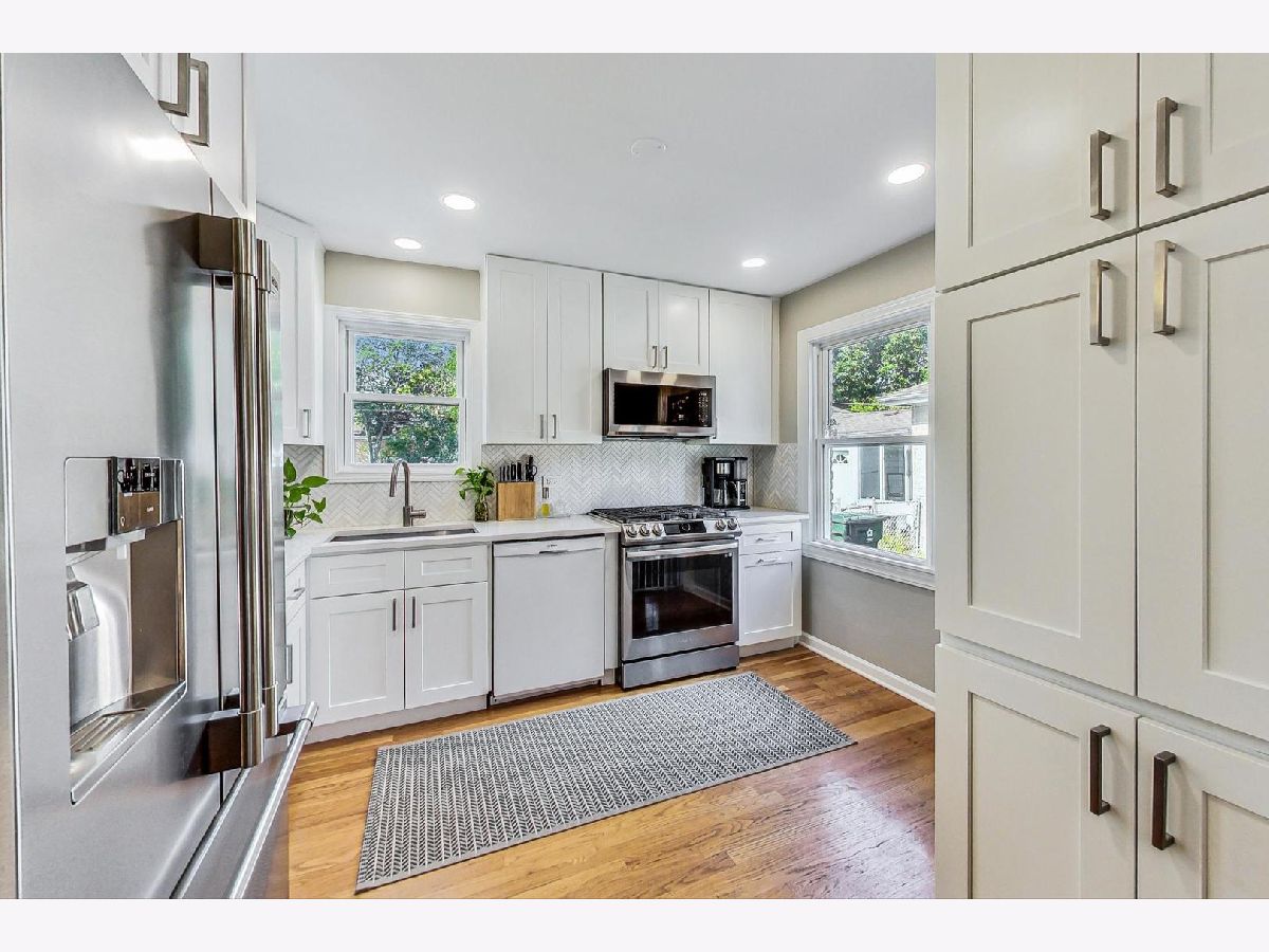 T U R N K E Y - 3 bedroom, 2 full bathroom Cape Cod in a wonderful location. This home has been beautifully updated from top to bottom. You'll notice the open, modern layout of the first floor as soon as you enter the home. The bright Living Room leads right into the built-in dining area which matches the elegantly updated kitchen with white 42" cabinets, white quartz counters, houndstooth backsplash and modern appliances. First floor also features a bedroom with built in desk and bathroom with walk in shower and gorgeous fixtures. The expanded second level has two generously sized bedrooms with stunning built-in storage and large well-appointed bathroom with double vanity and tub. Enjoy the stylish finished basement with Family Room area as well as private office space. Peace of mind with investment of drain tile system, sump pump (with battery backup) and Egress window all already taken care of! Gleaming hardwood floors and 6 panel doors throughout most of the home. Outside you will enjoy the spacious bluestone patio and beautifully landscaped, expansive yard. Newer electrical & plumbing throughout the home. Roof 6 years old, Furnace 7 years old. All this just a block away from newly renovated Emerson Park! Also close to train, library, farmer's market, shopping and restaurants as well as Randhurst. Excellent District 57 schools and Prospect High School.