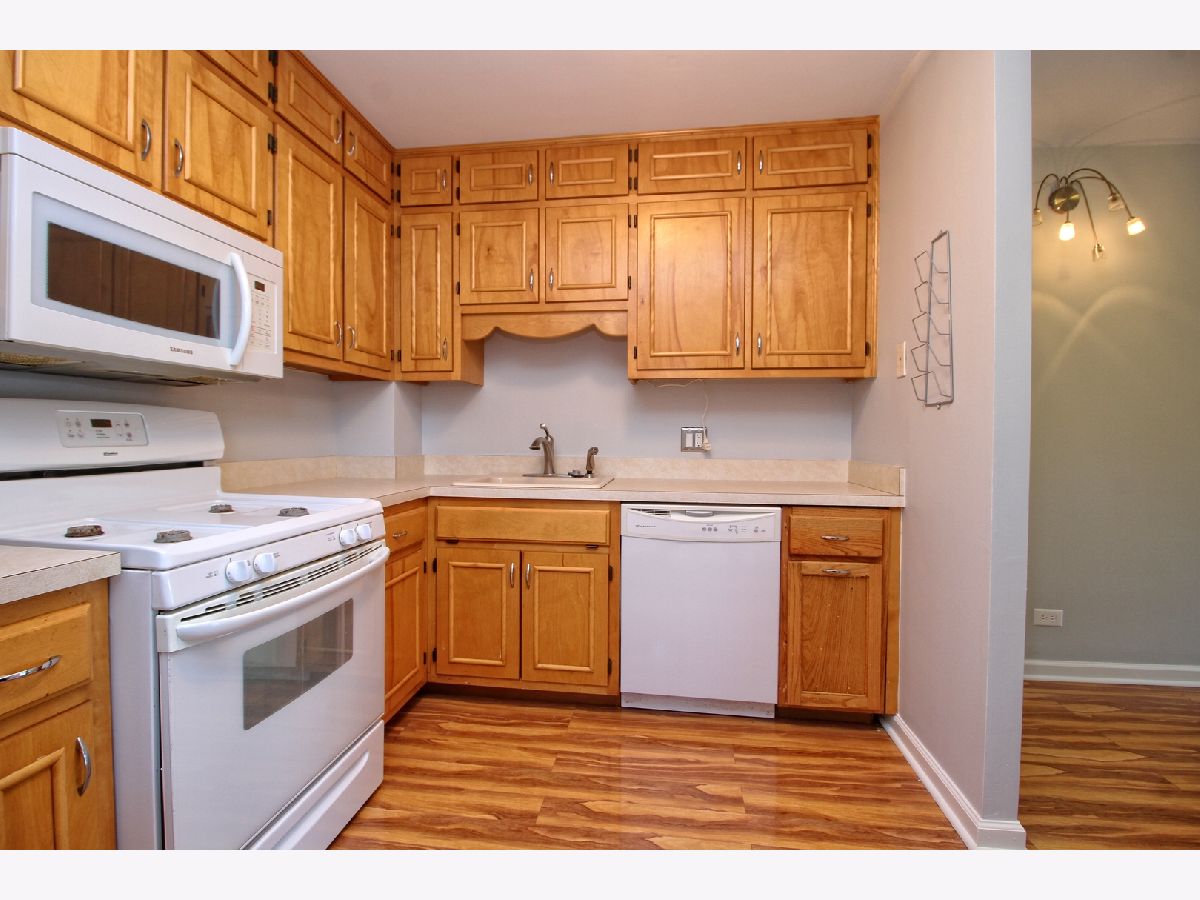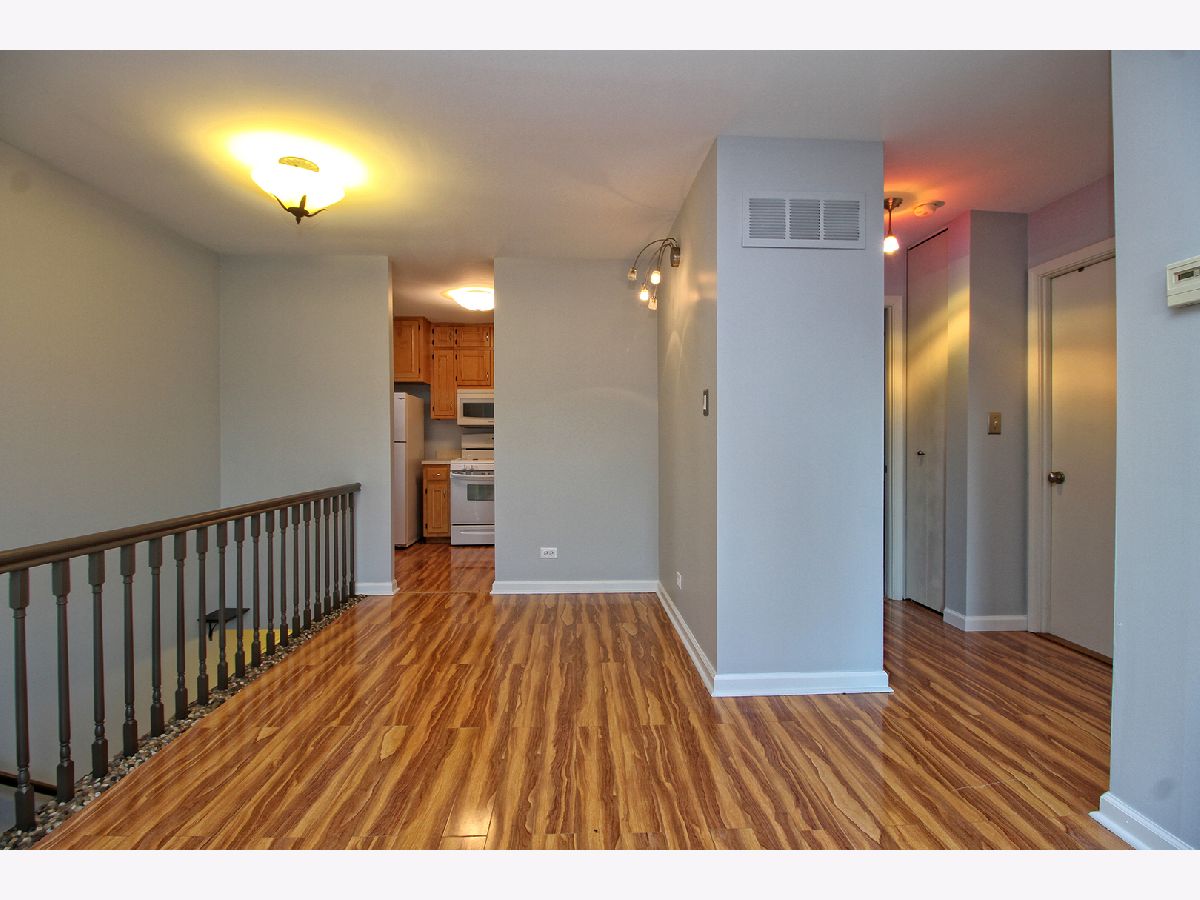 Spacious condo in the heart of New Lenox! 2 bedrooms, 1 bath, wood flooring, large closets, balcony, and a 1 car attached garage. Walking distance to the post office and metra. Low HOA dues!
