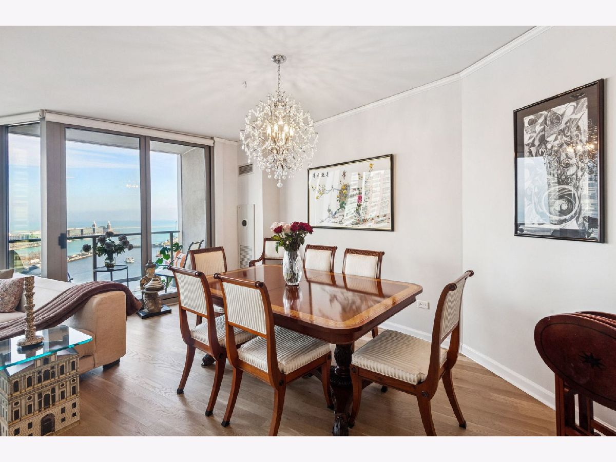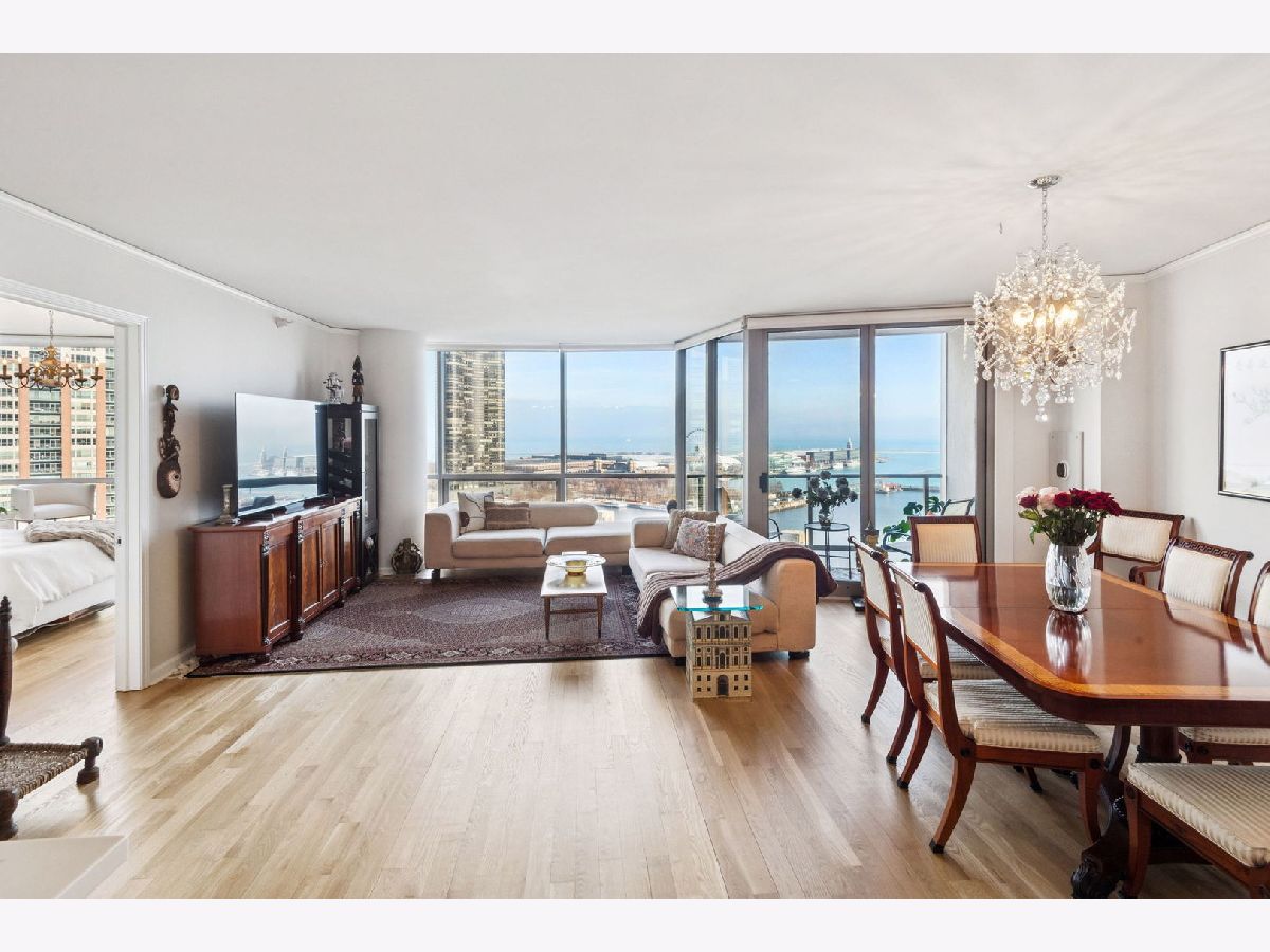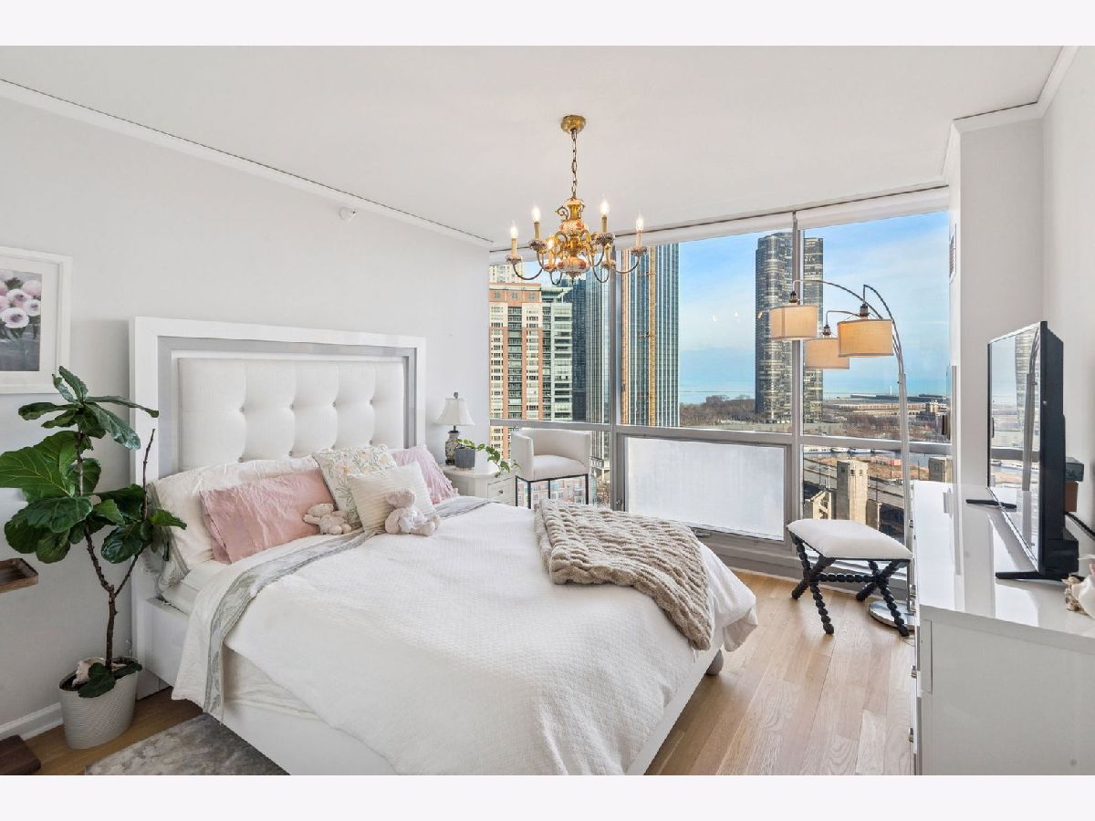Welcome to The Regatta and beautiful Lakeshore East! Unit 1514 is a thoughtfully designed split floor plan 3 bedroom 3 bathroom home that is not to be missed. Upon entering, the foyer offers an elegant cove ceiling and lighting, gorgeous new oak hardwood floors throughout, an elegant open stainless steel kitchen with new marble counters, sink and custom backsplash. New window treatments installed throughout the home, with electronic window coverings in the main living area. All three bedrooms have views of the Lake and Navy Pier. Balconies located in the main living area and primary suite. Custom closet organization throughout. Two ensuite bedrooms in total. The oversized primary bedroom suite includes a balcony, walk-in closet and full bathroom complete with double bowl vanity, separate shower, and soaking tub. (All unit upgrades completed in 2024.) The light fixtures in the primary and second bedroom as well as the dining room and kitchen are an exclusion. The Regatta is a full amenity building offering 24 hour door staff, indoor pool and Jacuzzi, gym quality exercise facility, including a yoga studio, game room, party room, library with resident book sharing, theater, children's playroom, rooftop deck with grills, dry cleaners, and game room. Lakeshore East offers nearby fine dining restaurants, Mariano's, Lakeshore East, Maggie Daley and Millennium Park, Michigan Ave shopping, the lakefront trail, Chicago River Walk and easy access to Upper and Lower Wacker Drive. A 1-car indoor deeded garage parking space is included in the price!