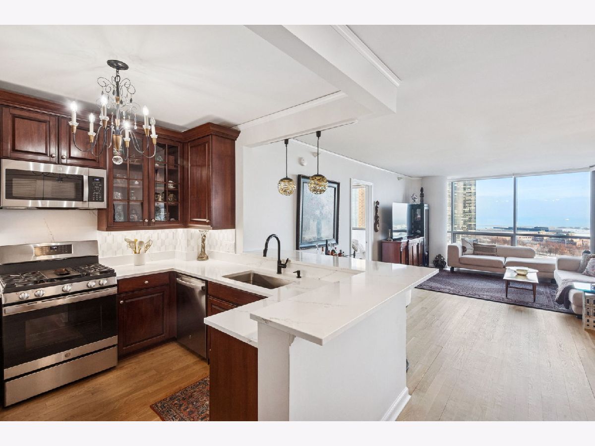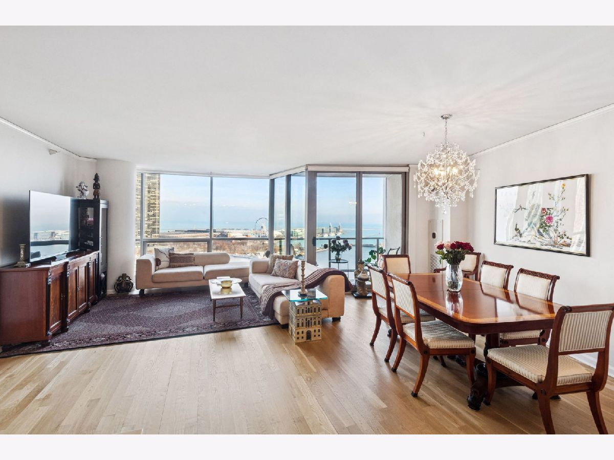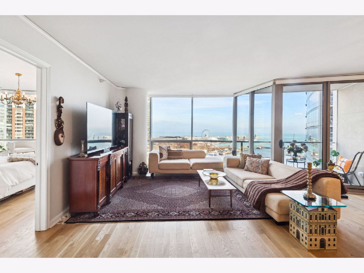 Welcome to The Regatta and beautiful Lakeshore East! Unit 1514 is a thoughtfully designed split floor plan 3 bedroom 3 bathroom home that is not to be missed. Upon entering, the foyer offers an elegant cove ceiling and lighting, gorgeous new oak hardwood floors throughout, an elegant open stainless steel kitchen with new marble counters, sink and custom backsplash. New window treatments installed throughout the home, with electronic window coverings in the main living area. All three bedrooms have views of the Lake and Navy Pier. Balconies located in the main living area and primary suite. Custom closet organization throughout. Two ensuite bedrooms in total. The oversized primary bedroom suite includes a balcony, walk-in closet and full bathroom complete with double bowl vanity, separate shower, and soaking tub. (All unit upgrades completed in 2024.) The light fixtures in the primary and second bedroom as well as the dining room and kitchen are an exclusion. The Regatta is a full amenity building offering 24 hour door staff, indoor pool and Jacuzzi, gym quality exercise facility, including a yoga studio, game room, party room, library with resident book sharing, theater, children's playroom, rooftop deck with grills, dry cleaners, and game room. Lakeshore East offers nearby fine dining restaurants, Mariano's, Lakeshore East, Maggie Daley and Millennium Park, Michigan Ave shopping, the lakefront trail, Chicago River Walk and easy access to Upper and Lower Wacker Drive. A 1-car indoor deeded garage parking space is included in the price!