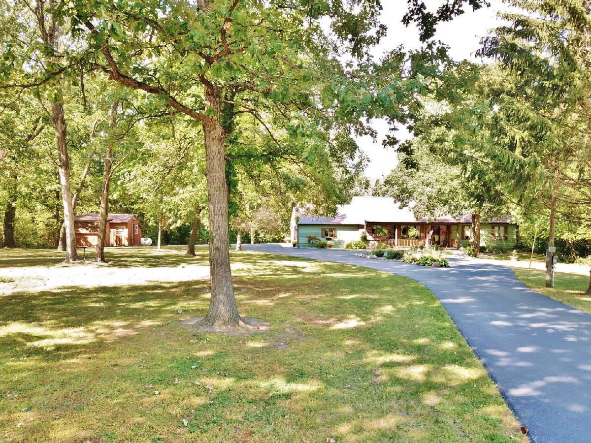 Enjoy the peace and quiet in the country in this beautiful ranch home, featuring over 2,100 finished square feet including a finished walkout basement, nestled in the woods on 6.3 acres! This home has been completely remodeled by the current owner and features hardwood floors throughout, barn wood siding accent walls and a beautiful kitchen with custom adler wood cabinets, granite counter tops, breakfast bar and stainless steel appliances. The spacious living room has plenty of room for all of your furniture and features a wood burning stove and glass door to a composite deck that overlooks the wooded back yard. Off of the kitchen is a dining area with large windows offering views of the landscaped front yard. The master bedroom suite is spacious and features a double closet and master bathroom with ceramic tile floor, double sink vanity, whirlpool tub and separate shower. The first floor also has two other bedrooms and a beautiful bathroom with shower. The finished walkout basement has glass doors that offer plenty of outside light and lead to a paver patio to the wooded back yard. There is a dining room/game room area in the basement with large closets for plenty of storage, a family room with a knotty wood walls that offer a cabin feel, and a spacious, bright laundry room with built-in folding counter. This property also has a 48'x36' outbuilding with concrete floor, that is heated by a wood burning furnace, and has two overhead doors that are 12'x16' and 7'x8'. Behind the outbuilding is an 38'x18' open front shed that is great for storage of firewood, outside equipment or vehicles under roof. A gravel area next to the outbuilding is perfect for parking your RV or camper. There is also a 20'x12' workshop building near the house that was built entirely from wood harvested from the woods behind the house. A garden shed and a lean-to offer extra storage space. This huge 39'x14' composite deck on the back of the house provides plenty of room for entertaining or relaxing while overlooking the beautiful woods with trails for ATVs or golf carts. There is a stream through the woods that enhances its natural beauty and offers the deer a place to drink. You owe it to yourself to live a peaceful life in the county, in the natural beauty of the woods, in a house that is truly immaculate and has been meticulously maintained! Please do not delay in seeing this home. You can make an appointment to see it today!