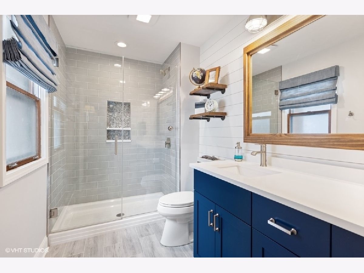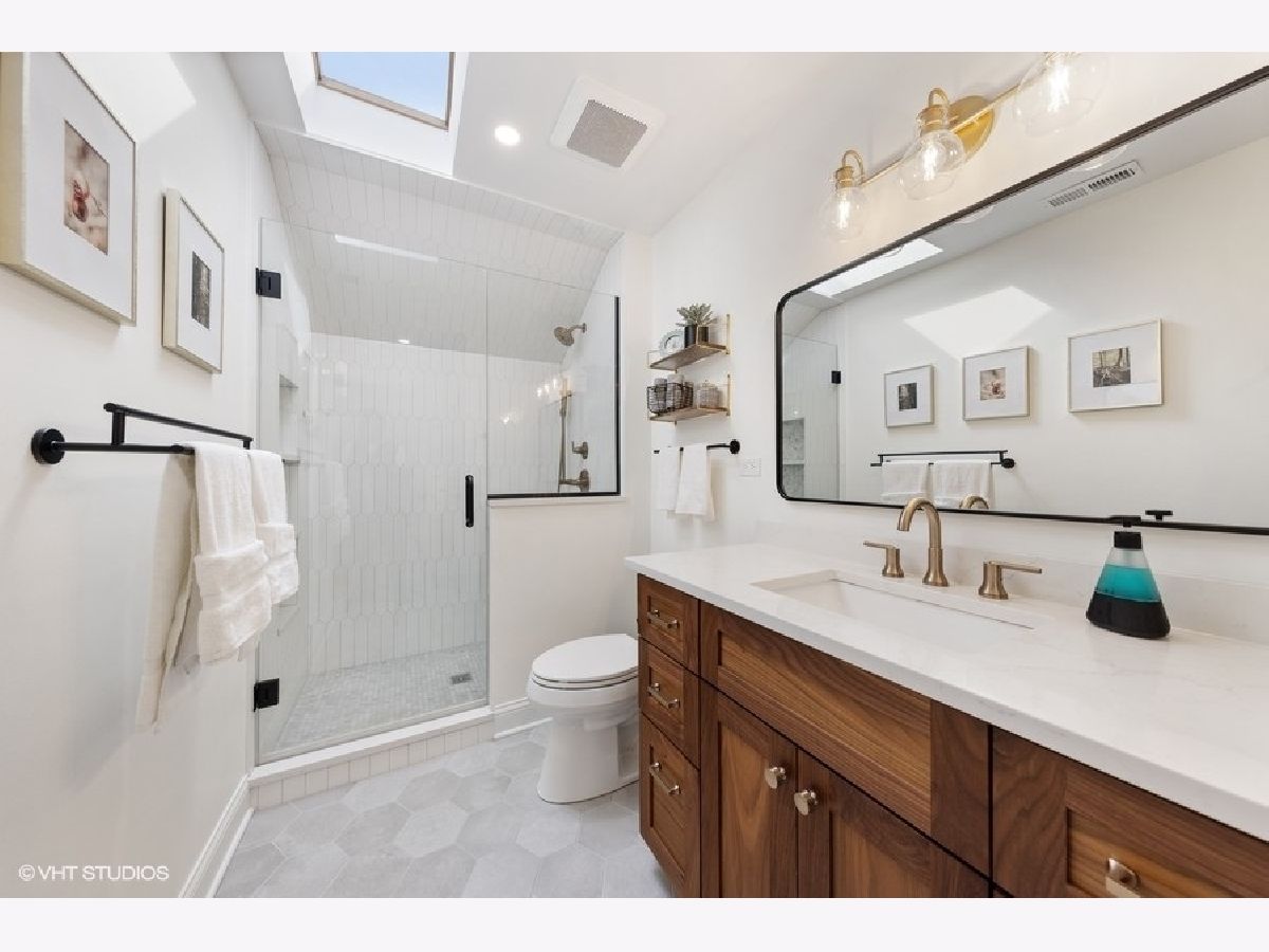 Larger than it appears, this move-in ready home is located in coveted Old Town. The inviting first level features hardwood floors, a bright and airy living room, dining room with wainscoting, and kitchen with white cabinets a large island with seating. Heading to the upper level, you will find an incredible primary suite with large walk-in closet, gorgeous new bathroom with walnut vanity, and private office with built-ins. A charming and updated hallway bathroom (2021) and 3 large bedrooms - one en suite with another new bath (2021) - complete the upper level. The lower level has a spacious family room with wood burning fireplace and ceiling beams, 5th bedroom across from a full bathroom, and laundry room. Other features include new interior doors on upper level, closet systems, crown molding, can lighting, 2 car garage, ample storage, and more! Close to town, train, parks, and award-winning schools!