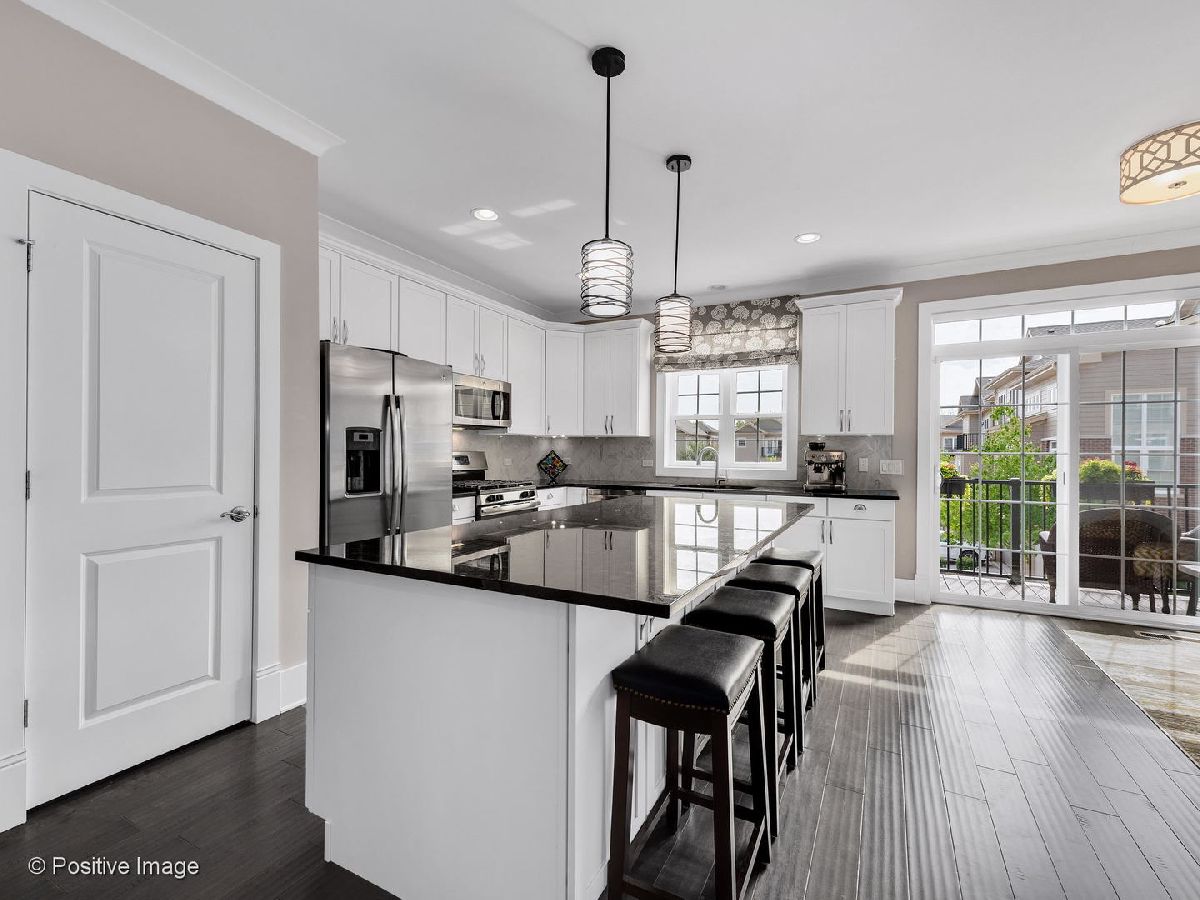 Located in Geneva's historic district & BETTER THAN NEW! This luxury townhome is designed for entertaining with its open concept floorplan and gourmet kitchen. So many luxe upgrades: wide plank, dark hardwood floors, "trendy" dry bar, extensive trim work, white woodwork, oversized base trim & crown molding. Sunny kitchen boasts HUGE island with storage, white cabinets with soft-close hinges, granite countertops, stainless steel appliances. Balcony overlooks manicured courtyard with fireplace. Flexible lower level family room can also function as an additional office or exercise room. Primary bedroom features: walk in closet, plenty of room for a king-size bed & private bathroom with dual sinks & walk-in shower. Convenient 2nd floor laundry. Covered entrance and front porch. Spacious 2 car garage has built-in overhead storage. Balcony is East facing providing afternoon shade & pretty courtyard views. Plenty of guest parking. Amazing location... steps to Wheeler Park & blocks to downtown Geneva (shopping, restaurants, river). Less than 1 mile to commuter train station.