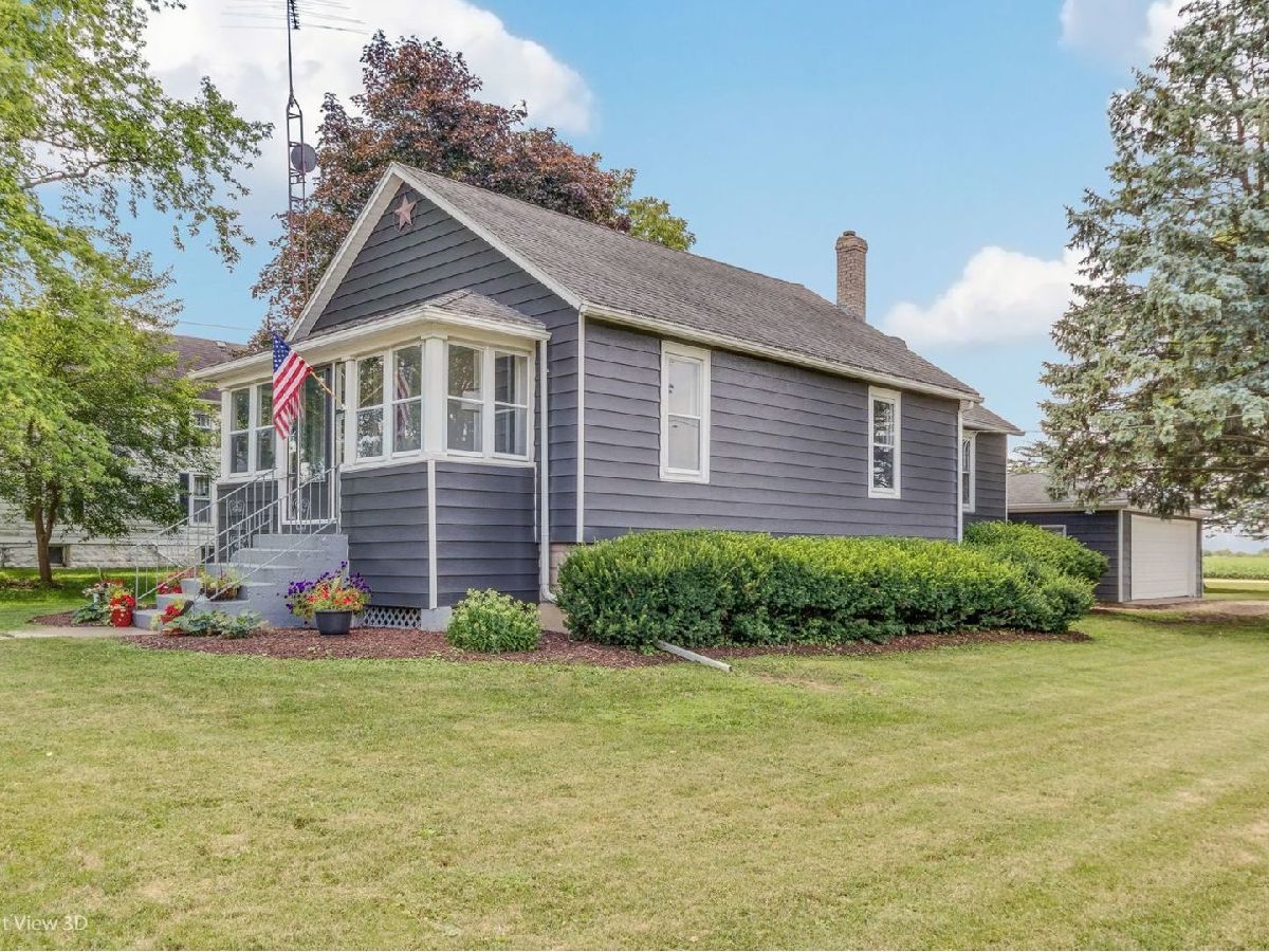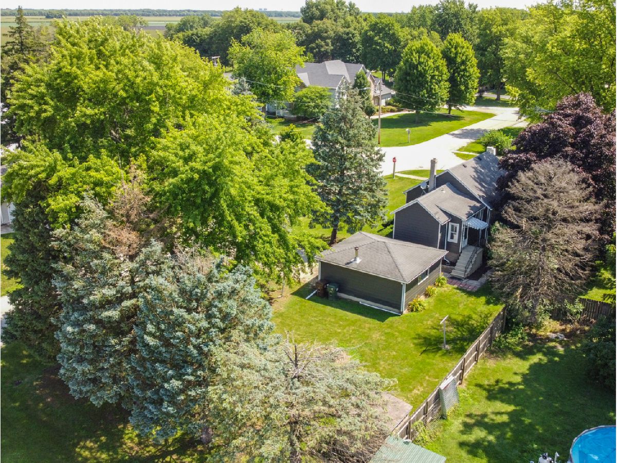 Well kept 3 BR, 1 and 1/2 bath home on spacious corner lot with quaint front porch looking east to have that morning coffee, read a book, or enjoy that afternoon/evening beverage. Living room is large and could be shared with a table (as photo displays). Full bath located near kitchen and 1/2 bath with pocket door off of living room area. Full unfinished dry basement with washer/dryer. Kitchen has new counter tops and cabinets with stainless appliances. 2 car detached garage has wood burning stove. Home sits on a large corner lot and the backyard is across from "fields of green" / cornfields and a westerly view of the beautiful sunsets. Home is in town but when sitting in backyard it seems like you are in the country. Just minutes from I55 for an easy commute. Home is close walking distance to the Elementary/Junior High School and community parks. Perfect for that a young family or downsizing. This one is a must see to appreciate it's beautiful charm.