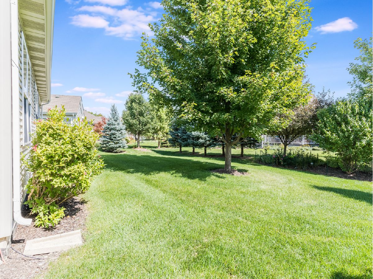 Wonderful opportunity to move to a maintenance free single family for the price of a townhome! Sprinkler system in yard for ease of care. Rare "Four Seasons" floor plan with huge unfinished basement just ready for your ideas. Neutral decor throughout, and thoughtful layout with great room concept living/dining/kitchen. Split bedrooms offer privacy, and screen porch off living room with conveniently located den/office. Loads of closet space and spic-and-span clean. Extra window and heat lamp upgrade in master bathroom. Epoxy floored garage and large laundry/mudroom with full closet. Wonderful location across from golf course and very close to pool. South facing back yard for delightful and sunny year round enjoyment. Solid surface counters in kitchen plus large breakfast room. You will love this bright and sunny home in one of Naperville's nicest neighborhoods!