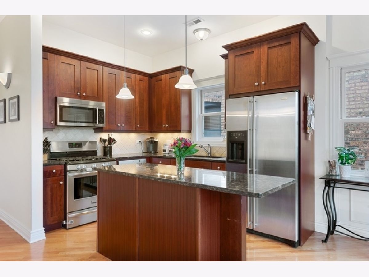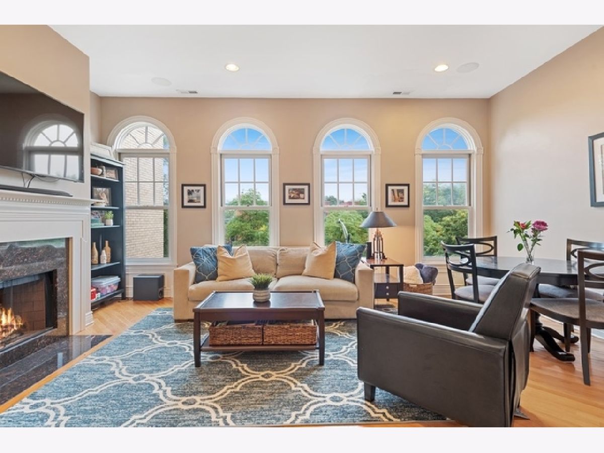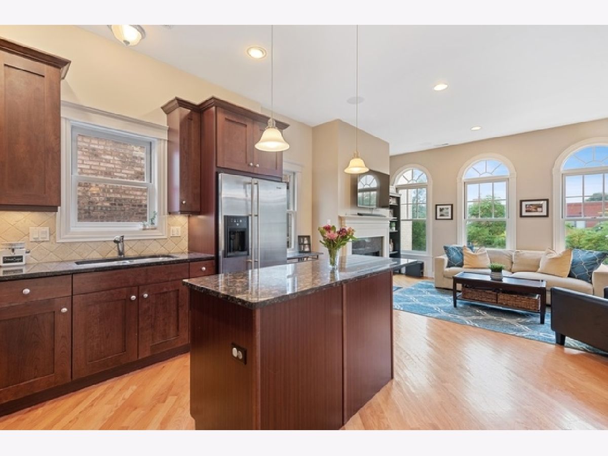 Sun drenched 3 bed, 2 bath penthouse unit located between Southport Corridor + South East Ravenswood! The inviting living/dining area features a gas fireplace with granite surround, beautiful arched windows and hardwood floors throughout. Bright, open layout makes for great entertaining space and draws you into the nicely appointed kitchen featuring stainless steel appliances, granite counters, tile backsplash and island with extra seating. Spacious master suite boasts dual sink vanity with ample counter and cabinet space, walk-in shower and separate bathtub. Two more generous bedrooms can be used as a guest room, nursery, office or flex space. Don't miss the 2 private decks to enjoy your morning coffee or a summer cocktail. Garage parking included. Short walk to Brown Line, Southport Corridor, Wrigleyville, Lincoln Square and Ravenswood Elementary! Tasteful unit in a fabulous location!