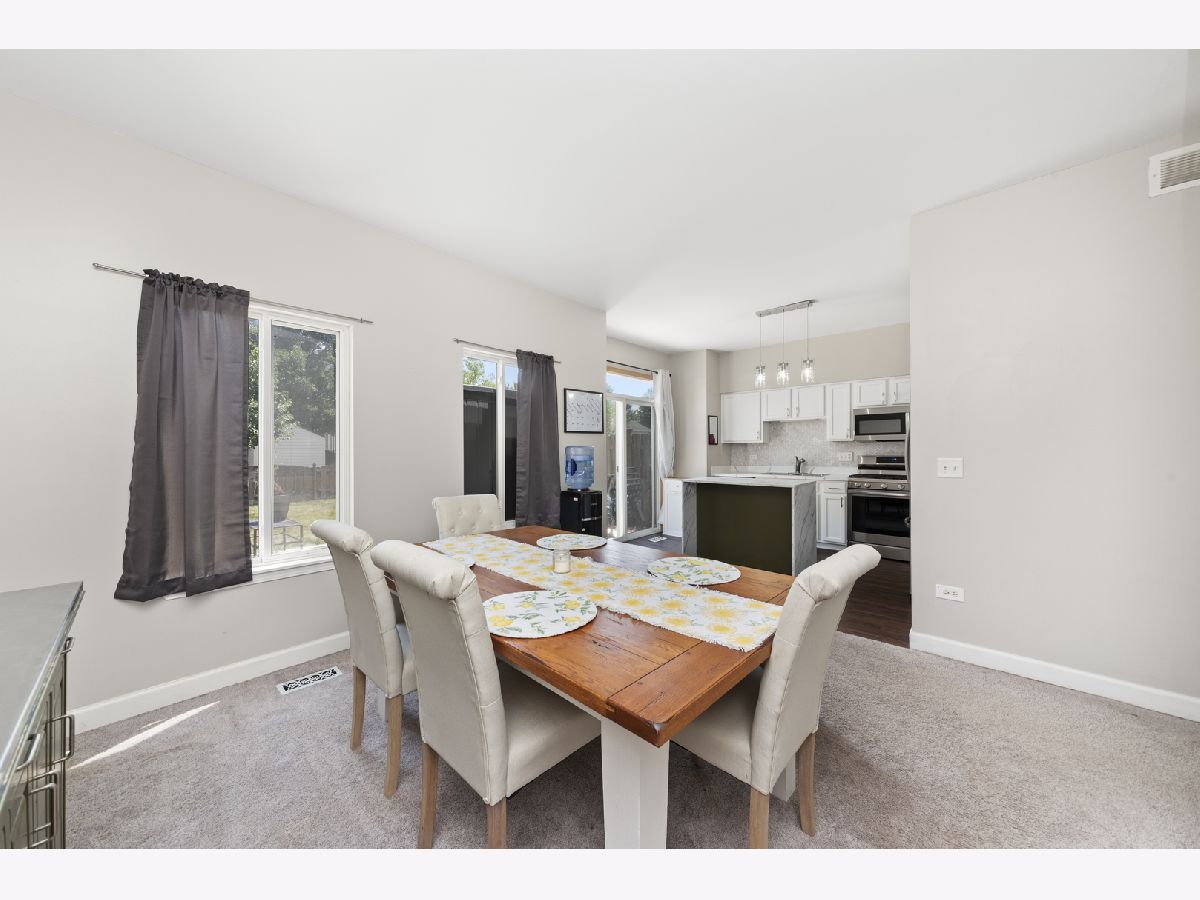 Welcome to your new home in the desirable Lakewood Springs community, where resort-style amenities such as a pool and clubhouse await you. This beautiful 3-bedroom, 2.5-bathroom residence offers the perfect blend of comfort and style. Upon entering, you'll find a versatile floor plan featuring a spacious family room and an additional living room, which can easily be transformed into a formal dining space. The heart of the home is the stylish kitchen, boasting white painted cabinets, a convenient island, custom epoxy countertops, and stainless steel appliances. The adjacent sliding glass door opens to a fully fenced backyard, complete with a large concrete patio-ideal for outdoor entertaining and relaxation. Upstairs, the serene master suite includes a walk-in closet and a private en-suite bathroom for your convenience. Two additional bedrooms share a well-appointed full bath, and the upstairs laundry area adds extra convenience to your daily routine. The attached 1-car garage offers added storage and parking. Nestled between Yorkville and Plano, this home provides easy access to a variety of shopping, dining, and recreational activities. Don't miss the opportunity to make this Lakewood Springs gem your own! Recent updates include: 2020: Roof, Hot Water Heater *** 2021: Patio *** 2023: Furnace, Refrigerator, Stove, Dishwasher, Washer, Dryer, Garage Door Opener