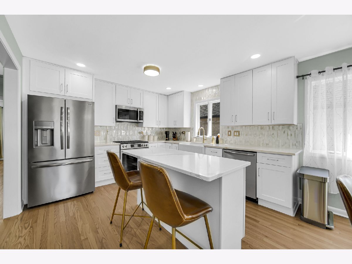 Terrific south Elmhurst location! Recently updated, this 5 bed, 2 full bath raised ranch offers two full floors of living space! Quiet and established street, with quick and easy access to area expressways. Built in 1965 and refreshed in 2024, this home boasts 5 bedrooms (3 upper level and 2 lower) and 2 full bathrooms (1 on each floor). Large front living room full of light adjacent to large and updated combined kitchen with dining room. Very large 2.5 car garage with brand new driveway and adjacent patio for outdoor living, while long 180' deep lot offers large backyard.