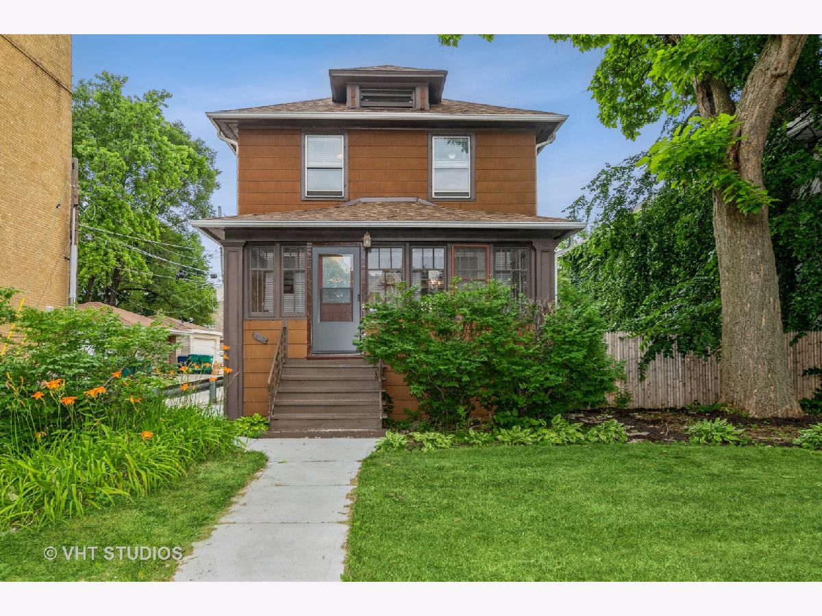 If you're looking for space both inside and out, this is the one! Make your appointment today to see this well-loved classic American 4-Square home on an oversized lot. The first floor of this bright and spacious home features separate living, dining and family rooms, two enclosed porches, and a brand new kitchen and half bath, making a great flow for entertaining. The French doors in the family room lead to the deck, overlooking the patio and the huge yard. The 3-season enclosed front porch is great for morning coffee or reading on a peaceful summer day and the enclosed back porch/mud room awaits your ideas. The second floor has 3 bedrooms plus two bonus rooms. Bonus room 1 is the tandem room off of the primary bedroom- sweet! Bonus room 2 could be a den/music room/exercise room/guest room, etc. The expansive yard is great for summer bar-b-ques and winter snow angels. Have a large vehicle or looking for extra income? Behind the yard are 7 parking spaces (five are currently rented)! New roof, new kitchen, new powder room, new washer/dryer - all in 2022! New sidewalk and fence in 2021. You'll love it here - great neighbors, dog friendly block, enjoyable block parties and close to the green line, the Daly Bagel and Stevenson Park! Being sold AS-IS. Move right in and make it home!