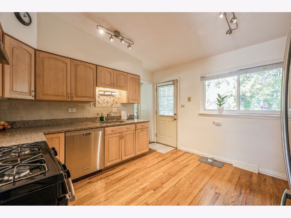 Nestled in a lush, sleek and sunny home exudes warmth and style, located in the heart of Wilmette! This mid-century bi-level offers 3 generous size beds, 2 full baths and finished basement for leisure along with 2 car garage. Hardwood floors through out. Elegant kitchen with granite counter-top, 42" maple cabinets, all new stainless steel appliances and backsplash. New upgrades added in 2018, are Roof, Windows, a new furnace and air conditioner, hot water heater, electric panel, blinds, roman shades, kitchen cabinets and appliances, washer and dryer, and lower level bathroom. Professionally maintained fenced back yard is ideal for gatherings, and summer activities. Prime location steps from CENTENNIAL PARK outdoor pools, indoor tennis, indoor ice skating, sledding etc, walk to RAMONA, HIGHCREST/WILMETTE SCHOOLS, easy access to HIGHWAYS, SHOPPING and public transportation. Property doesn't reflect any exemptions! Schedule your showing today!