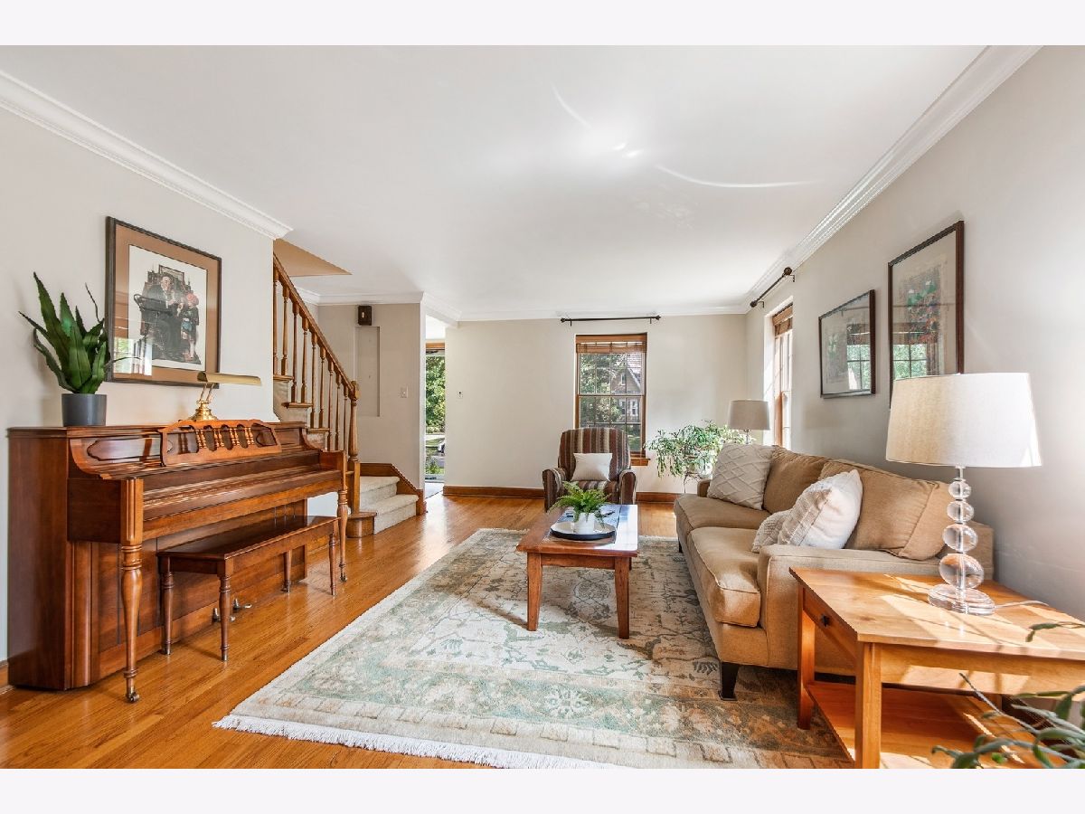 Beautiful brick light-filled Field Park home in a perfect walk-to-town/train location! Pride of ownership abounds in this welcoming 4 bedroom, 2 1/2 bathroom home with gleaming hardwood floors, fresh paint, impeccable maintenance, and flow and floor-plan you will love! Enter into the foyer and find a gracious Living Room and separate Dining Room. Large Living Room opens with French doors to perfect Family Room with fireplace and unique wooden mantle. Family Room opens to Breakfast Room and Kitchen for fabulous family living. Family Room, Breakfast Room, and Kitchen overlook the lovely back yard. Updated Kitchen has gorgeous extensive cherry cabinets, granite counter tops, and gleaming stainless steel appliances. The cabinetry is SO generous - with numerous cabinets, a serving/display pantry between the Breakfast Room and Family Room, another Butler's Pantry in the hallway to the Dining Room. Powder Room and Mud Room with entry door from the driveway and huge coat closet complete the first floor. The hardwood floors continue upstairs with 4 very large Bedrooms including a huge Primary Suite and additional hallway Bathroom. Primary Bedroom features sitting space, a gorgeous updated Primary Bathroom, and well-organized Walk-in Closet. Basement is finished with both recreation and office areas as well as a generous Laundry Room and storage. Back yard features beautiful plantings and paver patio. 2 1/2 car detached garage with cement driveway. Walk to town and train - and award-winning Field Park School and McClure Junior High. EZ access to expressways and both airports. This is a must-see!