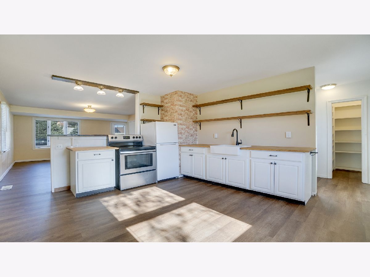 Oregon Schools! Cute 3 BR, 1BA ranch house on the edge of Mt. Morris yet close to town. New LVP flooring throughout; adorable kitchen with the open shelving concept, white painted cabinets with wood countertop and a farmhouse sink both new in 2023. Breakfast bar that can stay up for serving or put down for extra room. All appliances stay in kitchen (electric SS stove) including the washer/dryer in the main level laundry area with additional storage in the pantry. Full bathroom with tub/shower unit and extra storage. Newer blinds on windows, gas furnace & A/C, 40 gal gas water heater, Patio out back in the fenced in yard which includes a storage shed and firepit. 1car finished garage w/ heater. Concrete driveway. Vinyl siding