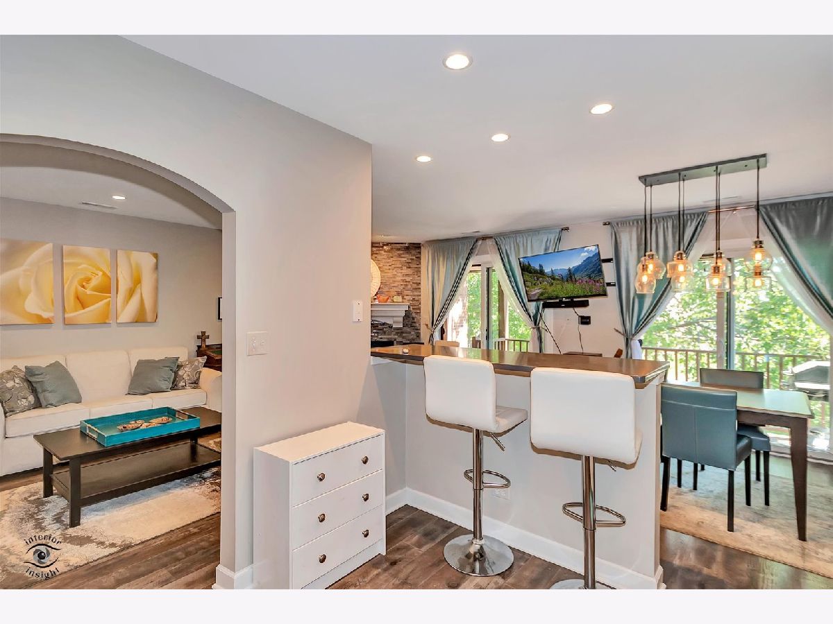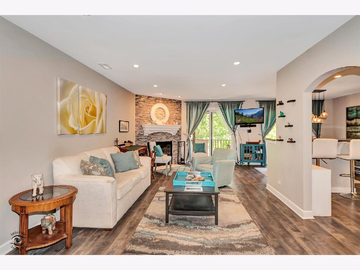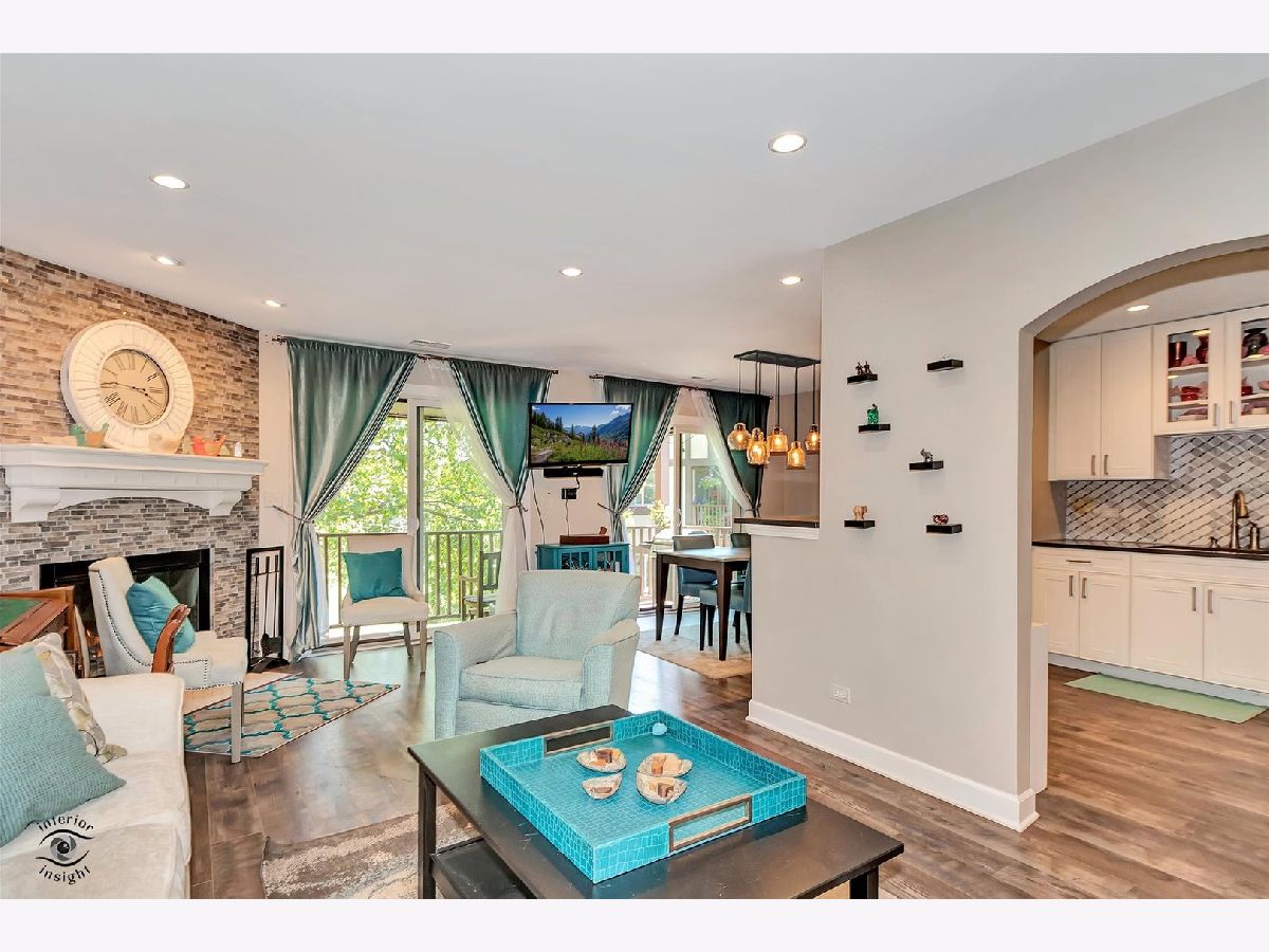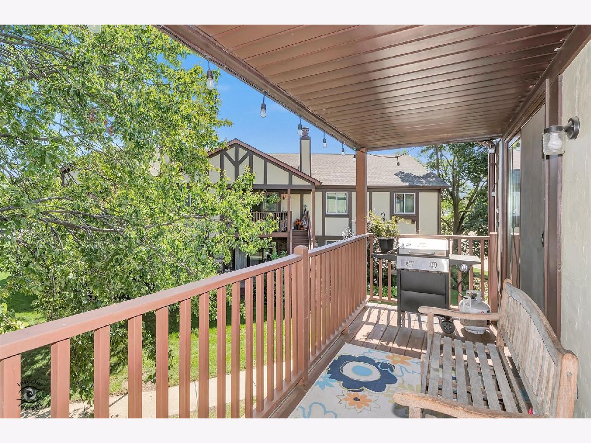 Gorgeous, upgraded second floor condo with 2 Bedrooms, attached garage and 1.1 Baths. This unit was completely remodeled in 2016 down to the studs. New kitchen featuring 42 inch White Cabinets, Silestone counters and stain less steel appliances. Walk in Pantry and breakfast bar. This condo has engineered hardwood flooring and updated baths. The Full Bath has marble floor tile and subway tile in the bath area. The Master Bedroom has a private entrance to the bath and a walk in closet. Powder Room features a raised bowl sink and subway tile. Wood burning fireplace in the Living Room with a gas starter. Two newer sliding glass doors exit to a 25 foot balcony with stairs going down to the courtyard. Lovely view of the courtyard and trees. Private laundry room with full size washer and dryer. The furnace, Central air and water heater were replaced in 2016. Pet friendly building. Wonderful location near College of DuPage and expressways. See it today!