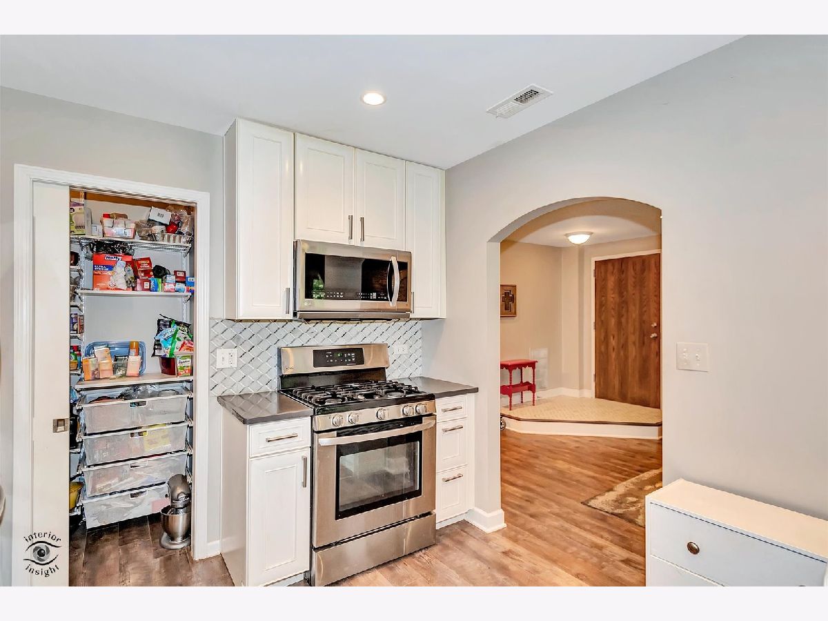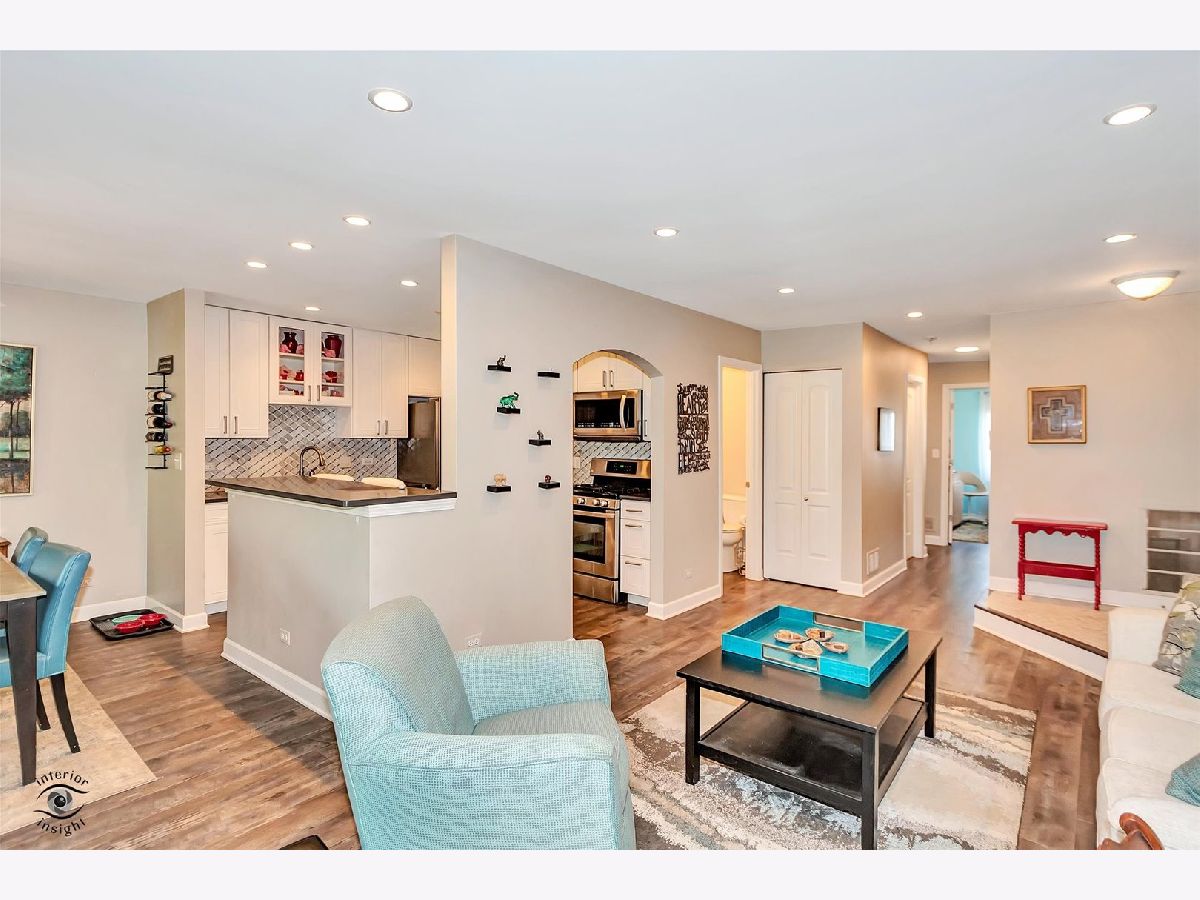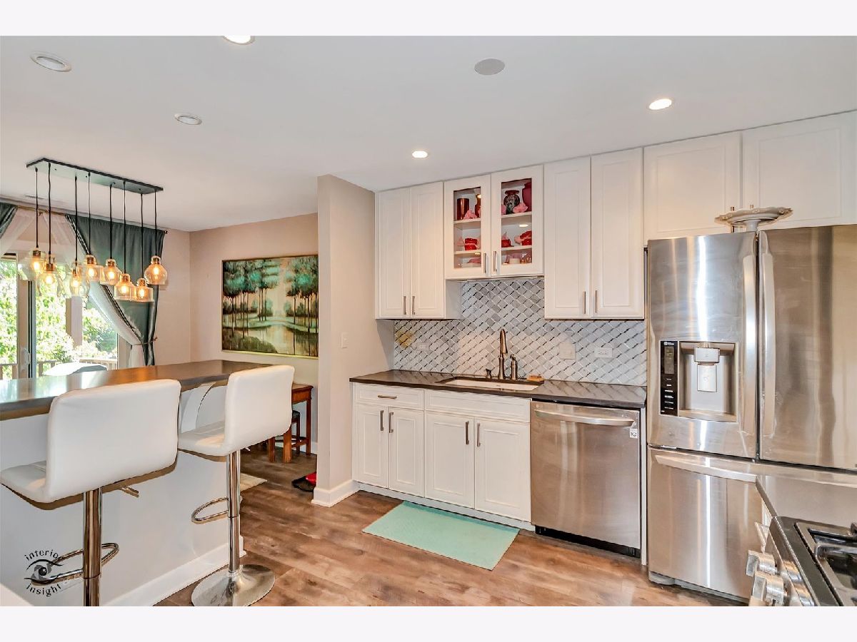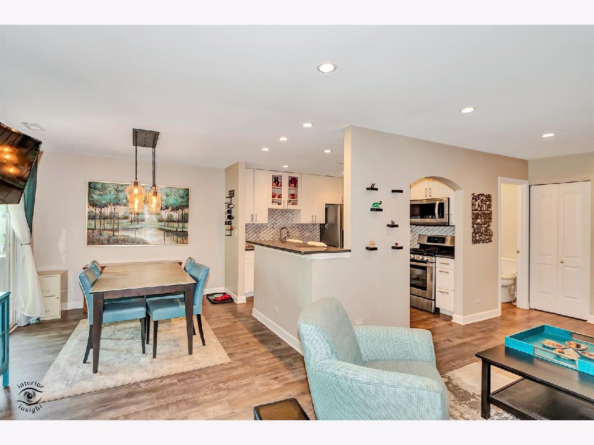 Gorgeous, upgraded second floor condo with 2 Bedrooms, attached garage and 1.1 Baths. This unit was completely remodeled in 2016 down to the studs. New kitchen featuring 42 inch White Cabinets, Silestone counters and stain less steel appliances. Walk in Pantry and breakfast bar. This condo has engineered hardwood flooring and updated baths. The Full Bath has marble floor tile and subway tile in the bath area. The Master Bedroom has a private entrance to the bath and a walk in closet. Powder Room features a raised bowl sink and subway tile. Wood burning fireplace in the Living Room with a gas starter. Two newer sliding glass doors exit to a 25 foot balcony with stairs going down to the courtyard. Lovely view of the courtyard and trees. Private laundry room with full size washer and dryer. The furnace, Central air and water heater were replaced in 2016. Pet friendly building. Wonderful location near College of DuPage and expressways. See it today!