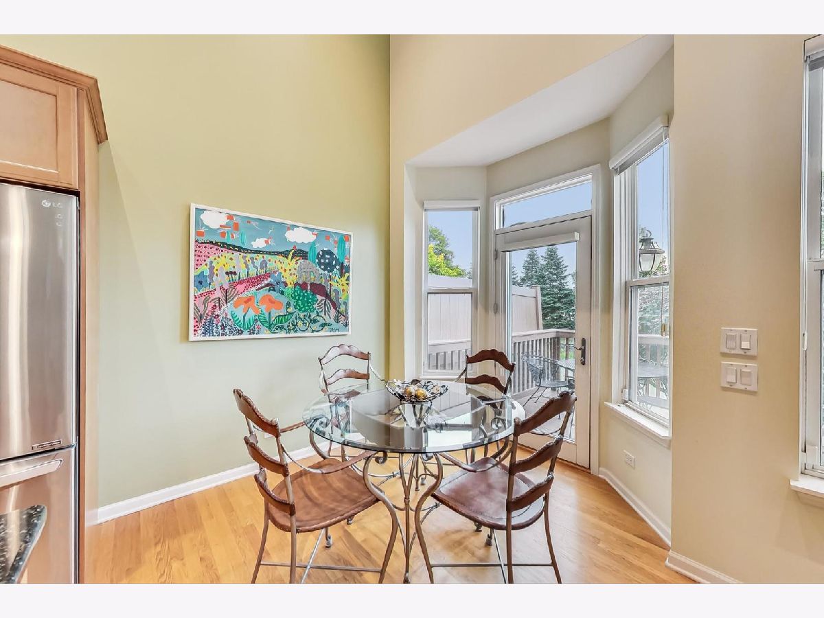 Welcome to Sanders Praire Townhomes. This home has 3 bedrooms & 2.5 bathrooms that includes a blend of comfort and luxury. The first floor boasts all wood floors and flowing floor plan. As you enter the home, the dining room has high ceilings, recessed lighting and ample space for large table and chairs plus an additional seating area. The first floor includes a laundry room and open plan living room, kitchen and space for table. The kitchen is beautifully appointed with granite countertops, a large pantry, double oven, and a spacious island perfect for preparing meals and entertaining guests. Step outside onto the wood deck directly off the kitchen, where you can enjoy outdoor dining and relaxation. The primary bedroom suite, is conveniently located on the first floor and features a luxurious shower, a vanity with two sinks, and an enclosed toilet for added privacy. There is so much space for all you need. Upstairs there is a large landing that can be used for a comfortable den or office area. There are two additional bedrooms and a bathroom, ensuring plenty of space for family or guests. The finished basement is large and it includes a fantastic storage space. The development has ample guest parking and is maintenance free living. Located near restaurants, new private gym, I294, and several grocery stores, making errands and dining out a breeze. Plus, it falls within the coveted district 27 for elementary and middle school and the prestigious Glenbrook North High School, known for its excellent academics and community involvement.