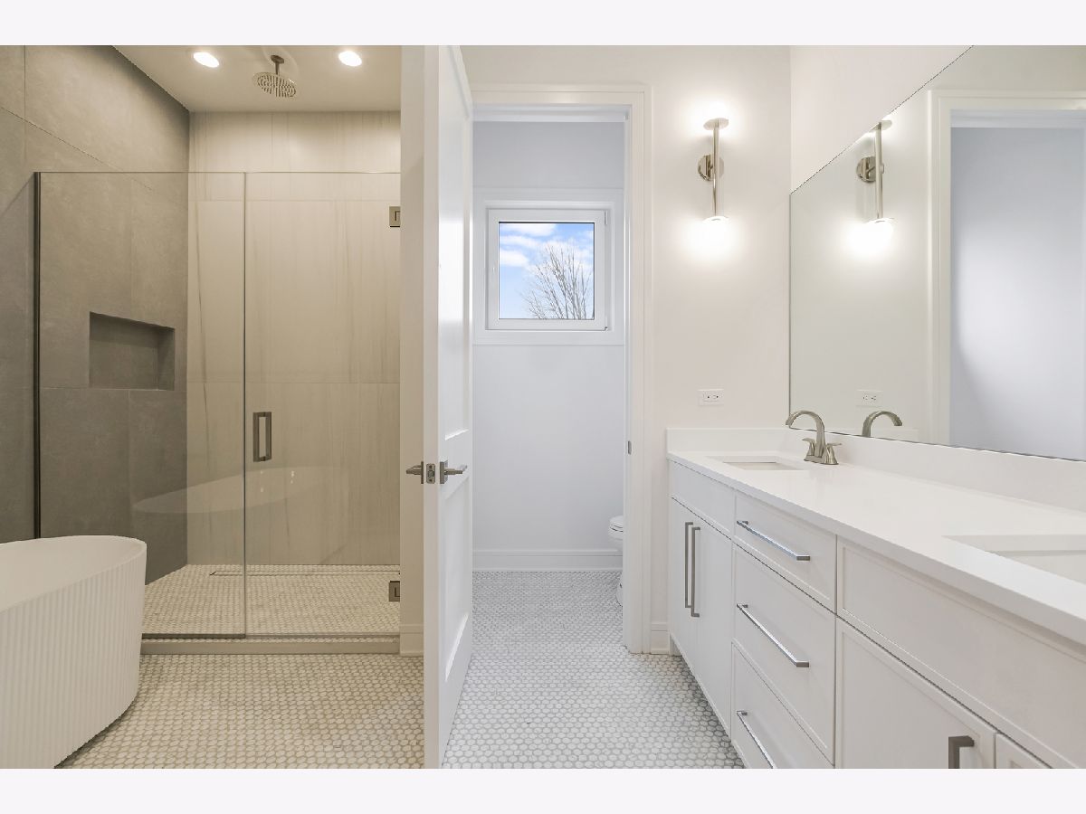 This stunning, four beds up home, is ready to be yours. With an elevated design by En Masse Architecture and Design, and located in the coveted Coonley School District, it features 10-foot ceilings on every level and high-end finishes throughout. The main level boasts custom millwork, crown molding, and 8-foot solid doors. A wet bar and spacious walk-in pantry make it perfect for entertaining, while the rear windows overlook a garage rooftop deck with a pergola. A unique sitting/breakfast area off the family room adds rare extra space. Upstairs, four bedrooms include a versatile en suite, ideal for a home office or guest quarters. The primary suite offers two custom closets and a spa-like bath with heated floors, a fluted freestanding tub, and a private wet closet. The lower level impresses with radiant heated floors, a wet bar, a playroom, and a guest room/gym next to a steam shower bath-creating a retreat of its own. This exceptional home seamlessly blends style, comfort, and functionality.