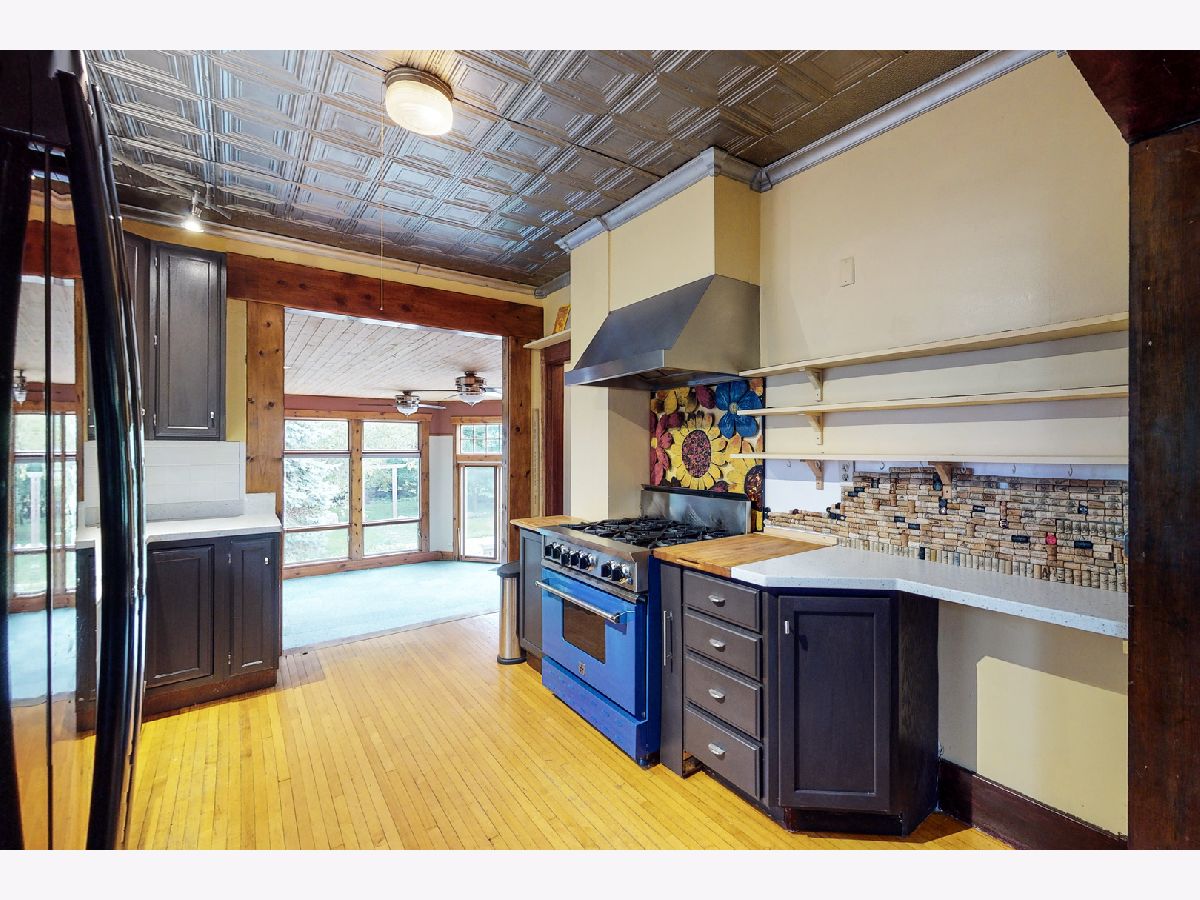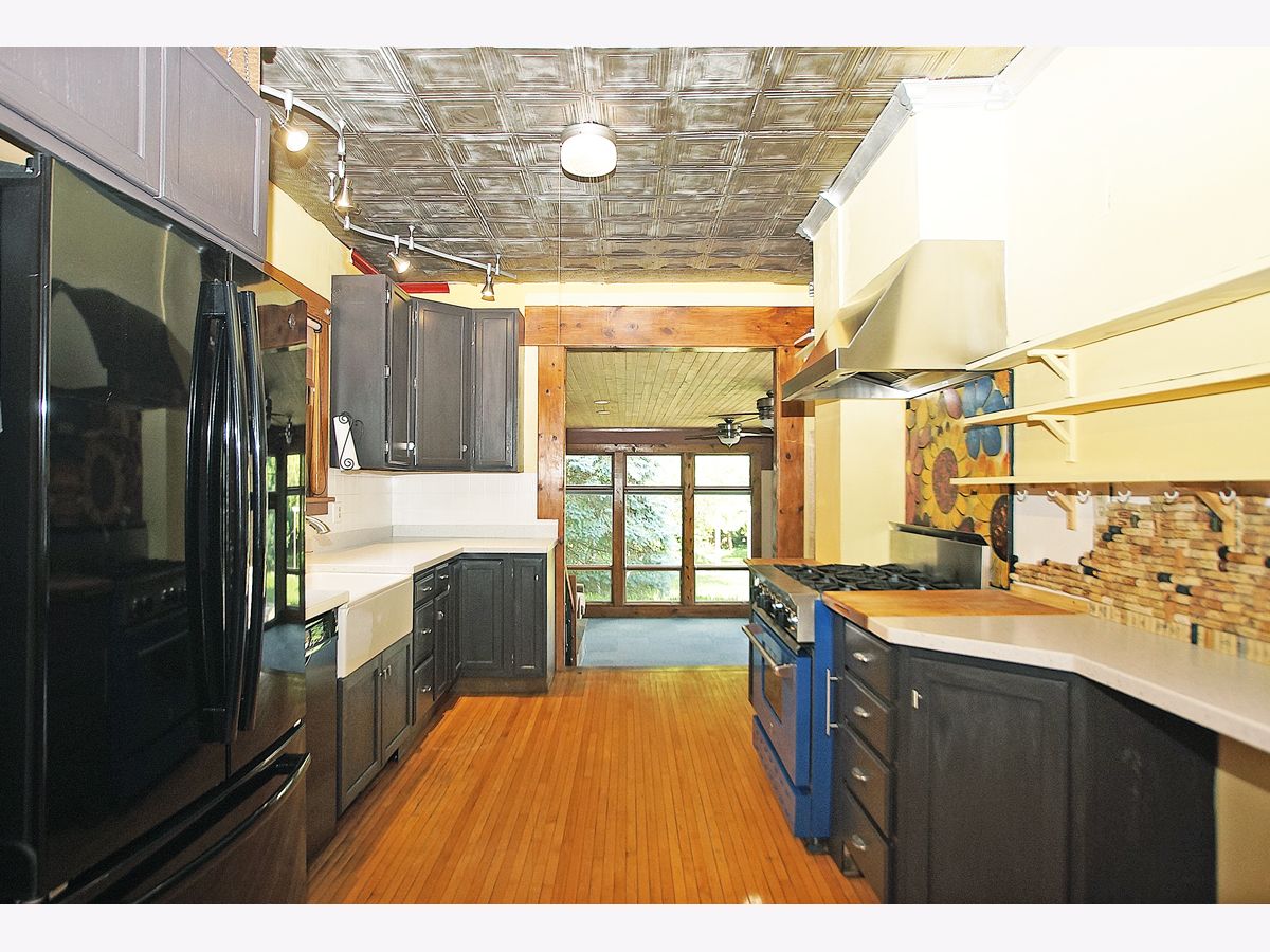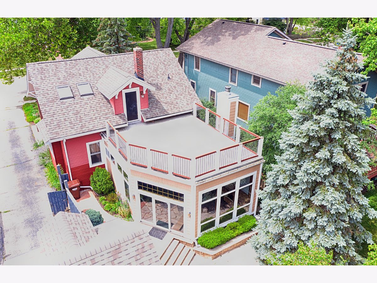 Move-in ready bungalow with architectural charm in the heart of Woodstock. Within walking distance of Metra, the down town square and library. The home features Corian counters in the kitchen, gourmet "Blue Star" dual energy source stove & oven, farm style sink and "Tin" ceiling. Original hardwood flooring, trim, doors, 9' ceilings and crown molding throughout most of the 1st floor. A 460 sq ft family room was added in 2007 with a 10' ceiling, wall of windows providing a view of the backyard, access to the limestone patio and a wood burning fireplace. A half bath is also available on the 1st floor. The 2nd floor has plenty of headroom, original maple hardwood flooring, a large full bathroom and 2-bedrooms. With access from the 2nd floor, there is a 450 sq ft roof top deck (above the family room). The partially finished basement features a 3rd bedroom/in-law suite with a full bathroom. Plenty of storage is available in the separate storage room and the laundry/mechanical room. All electric has been updated as well. The screened front porch could be enclosed to add additional living space (4-season room) and has an attached gas grill. The backyard is partially fenced and won't take much to complete. Landscaping was updated by the current owner plus a garden area completes the backyard. Low maintenance exterior (aluminum & brick) with a new roof that was replaced approx. 3 years ago.
