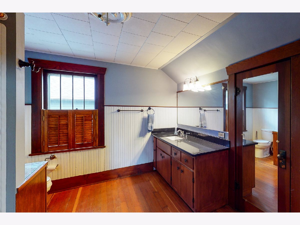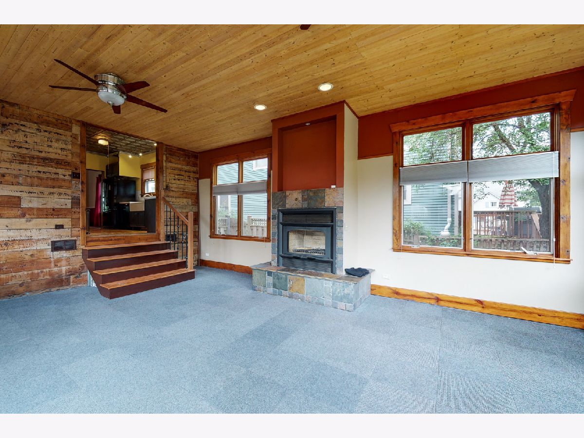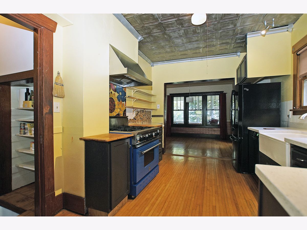 Move-in ready bungalow with architectural charm in the heart of Woodstock. Within walking distance of Metra, the down town square and library. The home features Corian counters in the kitchen, gourmet "Blue Star" dual energy source stove & oven, farm style sink and "Tin" ceiling. Original hardwood flooring, trim, doors, 9' ceilings and crown molding throughout most of the 1st floor. A 460 sq ft family room was added in 2007 with a 10' ceiling, wall of windows providing a view of the backyard, access to the limestone patio and a wood burning fireplace. A half bath is also available on the 1st floor. The 2nd floor has plenty of headroom, original maple hardwood flooring, a large full bathroom and 2-bedrooms. With access from the 2nd floor, there is a 450 sq ft roof top deck (above the family room). The partially finished basement features a 3rd bedroom/in-law suite with a full bathroom. Plenty of storage is available in the separate storage room and the laundry/mechanical room. All electric has been updated as well. The screened front porch could be enclosed to add additional living space (4-season room) and has an attached gas grill. The backyard is partially fenced and won't take much to complete. Landscaping was updated by the current owner plus a garden area completes the backyard. Low maintenance exterior (aluminum & brick) with a new roof that was replaced approx. 3 years ago.