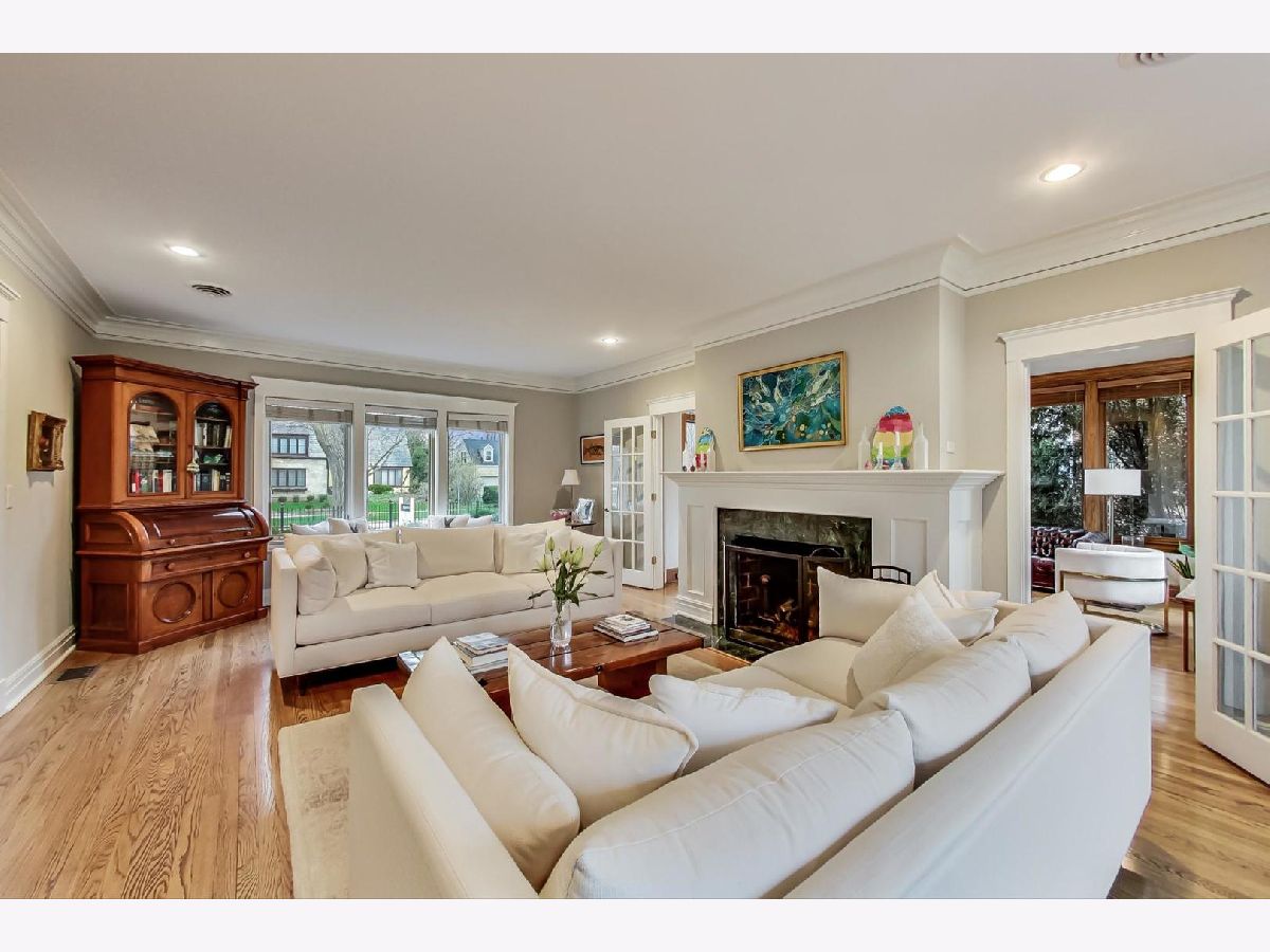 In the Gold Coast neighborhood of La Grange, there is an unforgettable brick manor with full functioning coach house that has all the sophisticated characteristics of a home that would appear on the streets of Beverly Hills. Positioned on the giant lot of 90X152, this home is enfolded by iron gates that extend along the sidewalk of the 90 feet on Sunset and wrapped with clematis and flowering vine along the 152 feet from street to the back yard. The two-inch wooden doors open to a gracious foyer with dramatic staircase, views of the cavernous fireplace central in the living room and the pastel-colored floral leaded glass windows in the dining room. The immaculate wooden floors usher you from big room to big room with unexpected large, newer windows that bring lots of light into the home. The first floor has a big living room with adjoining sunroom that is provides the opportunity for office or family room. The chef's kitchen, eat-in area overlooking the expansive backyard gardens, and attached bar are brand new (2021) with white high-end cabinets and counters and all new steel appliances. The upstairs has 4 bedrooms including a very large primary suite with an attached sunroom that can be used for nursery, den, or office. The primary bedroom has a newly updated spa-like bathroom and walk-in closet. The finished lower level rec room has bathroom and wine room ... and provide lots of room for storage, Netflix tv binge-watching, or play spaces. The house has award-winning gardens and 2.5 car garage. The most special feature of this home is the stylish heated/airconditioned apartment on the second floor of the garage/coach house. This provides visiting families a great staycation opportunity. Additionally, the apartment can be used for home office or hobby/studio. Great proximity to schools, parks, town, and Metra!