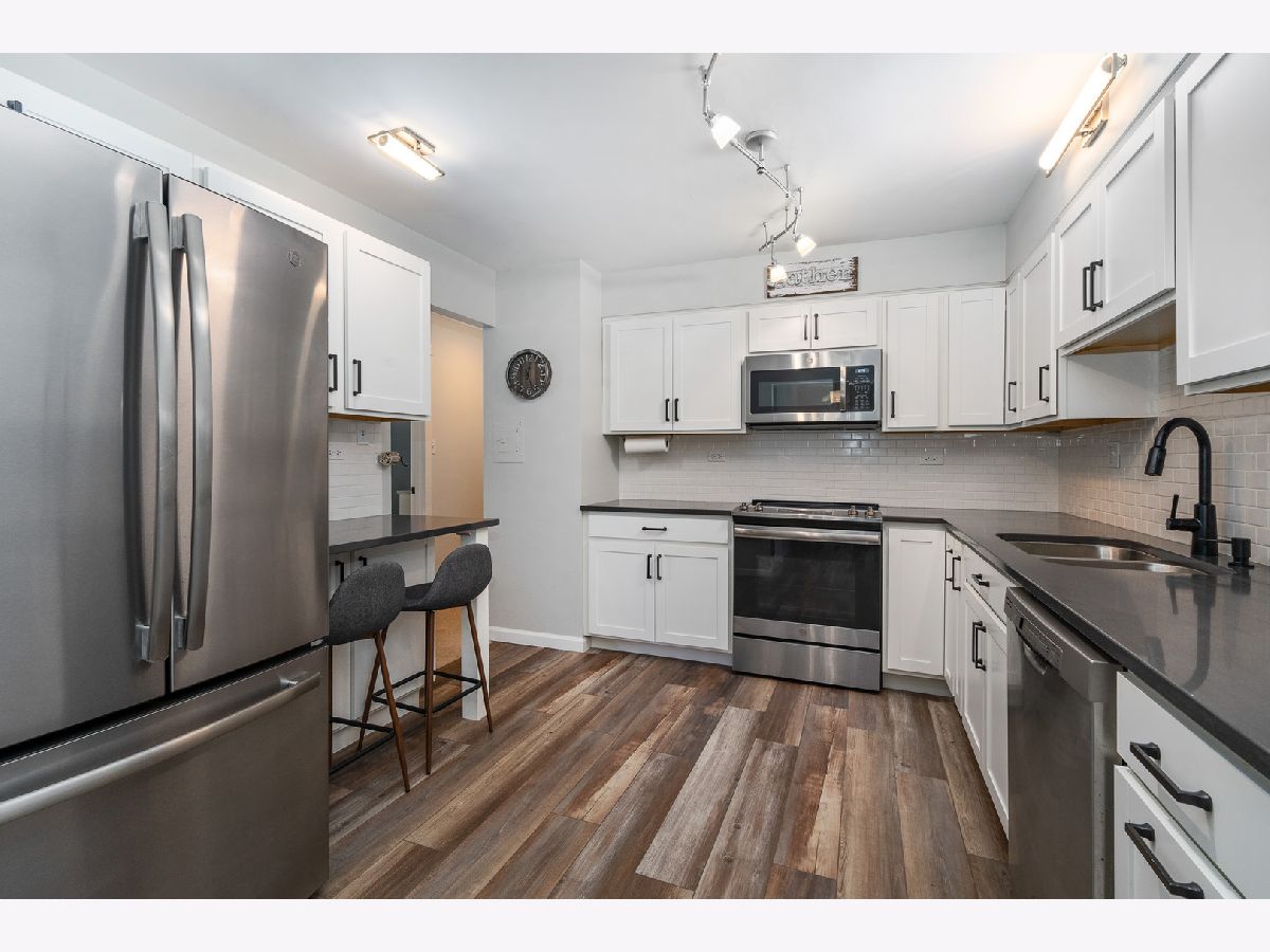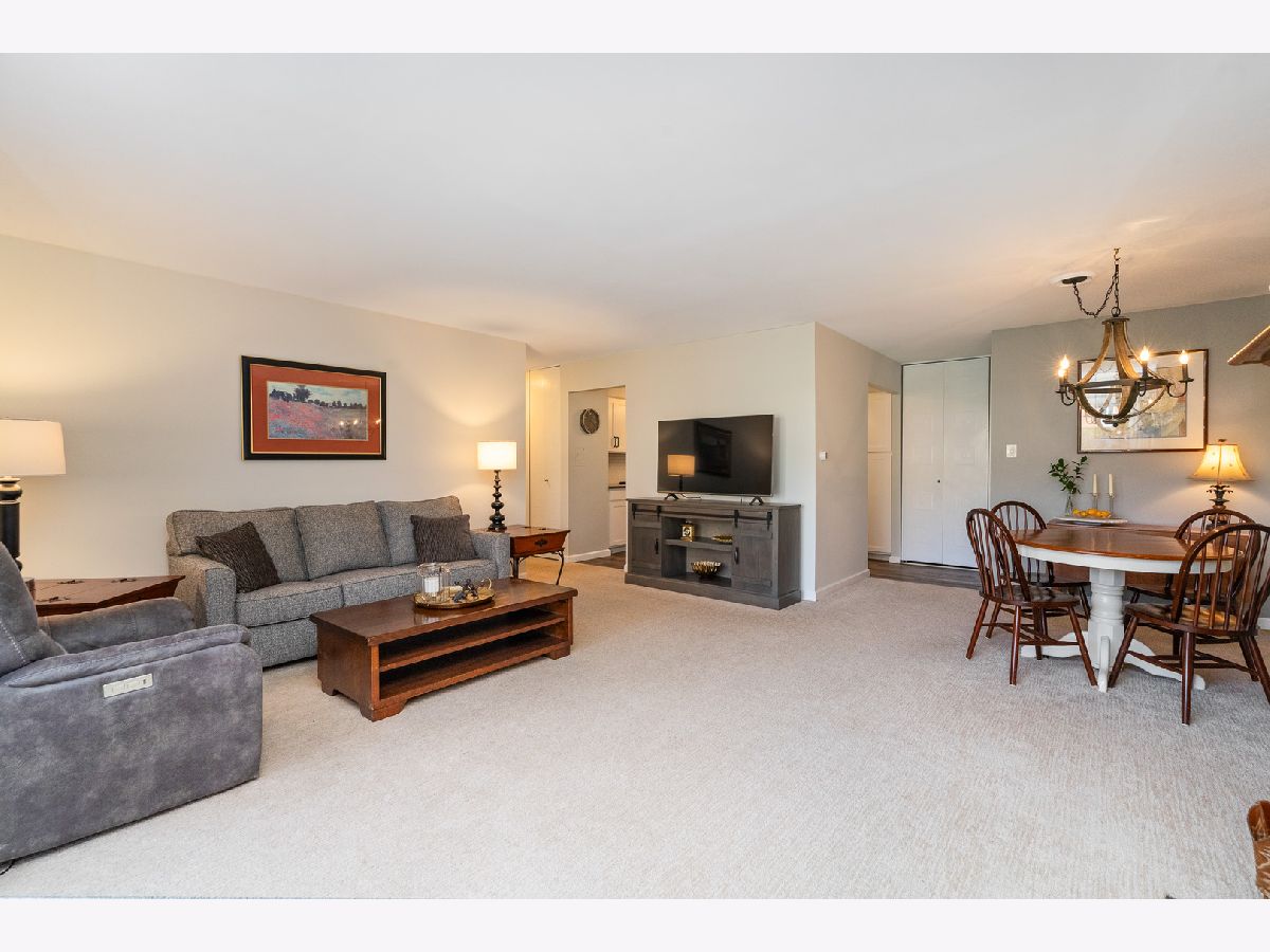 Welcome to this completely remodeled first-floor condo in the highly desirable Westbrook West Condominium Association, where everyday living feels like a vacation. This beautifully updated unit combines comfort, style, and unbeatable amenities in one of Downers Grove's most sought-after locations. Step inside to discover a stunning kitchen featuring white cabinetry, quartz countertops, a classic subway tile backsplash, GE stainless steel appliances, pantry closet, and a custom breakfast bar perfect for casual dining. The sun-filled living and dining area is adorned with a cozy wood-burning fireplace and opens directly to your private patio-complete with outdoor carpet-overlooking the refreshing swimming pool. The spacious master suite offers ample closet space and a sleek, modern en-suite bath with a tiled shower and rich vanity topped with quartz. A generous sized second bedroom and a second fully updated bath with subway tile and quartz counters offer space and style for guests or a home office. Enjoy abundant storage, plus exclusive community amenities and a stylish party room ideal for entertaining. This secured building offers key fob access for peace of mind and convenience. Just steps from schools, parks, shopping, dining, banks, and vibrant downtown Downers Grove, this location can't be beat. Association fee includes heat, water, parking, scavenger, common insurance, and access to all resort-style amenities. Don't miss this rare opportunity to live where lifestyle meets location!