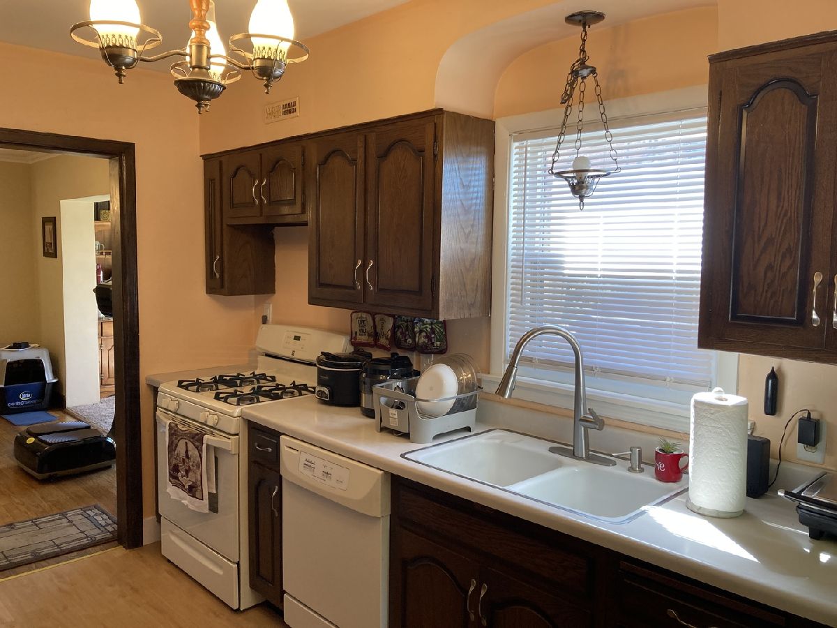 Welcome home to this beautifully well-maintained brick bungalow. Enjoy the natural light of all the windows and a cozy wood-burning fireplace in the living room. follow your way through the archway into the ample dining room. Next you'll find a quaint sunroom with a large picture window. Mostly hardwood floors throughout with new vinyl flooring in the kitchen. Lower level features a large Rec Room. Additional room has electric heater and thermostat. Enjoy outdoor time on the freshly stained deck with large table and umbrellas that stay! Sold As Is, with inspections welcome but no repairs made by seller.