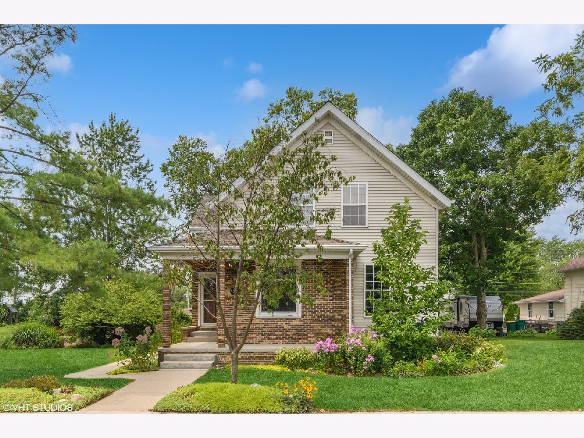 Vintage 2-story in the heart of town on super oversized, parklike lot. Charm and character inside and out, with a welcoming 20' long covered front porch. Step inside and discover beautiful original woodwork and doors, plus two fabulous antique stained glass windows. Solid oak pocket doors and built-in cabinetry add elegance. Main level offers a classic floor plan with flexible options for use: living, dining, den or 4th bedroom (has closet) with direct access to full bath with classic clawfoot tub. Wonderful newer kitchen with white cabinets, subway tile backsplash, copper farmhouse sink, granite counters and four seat breakfast bar (counter stools stay), stainless appliances, retro pendant lighting. Upstairs boasts 3 more bedrooms (all with walk in closets) and another full bath. Basement offers laundry area and good storage and has good celling height for a home built over a century ago. You'll appreciate the modern comfort of central heat and air conditioning. The exterior of this classic charmer boasts multiple patio areas including a 21x14 paver and 20x10 stamped concrete space for outdoor entertaining and relaxing: there's also a firepit, shed, arbors, perennials and plantings galore...it's an oasis of greenery and a gardener's dream. The icing on top? Unbelievable detached 24x42 two-story garage with room for 3+ cars and a huge shop area on the 2nd floor (lift accessible), tons of concrete offstreet parking too!