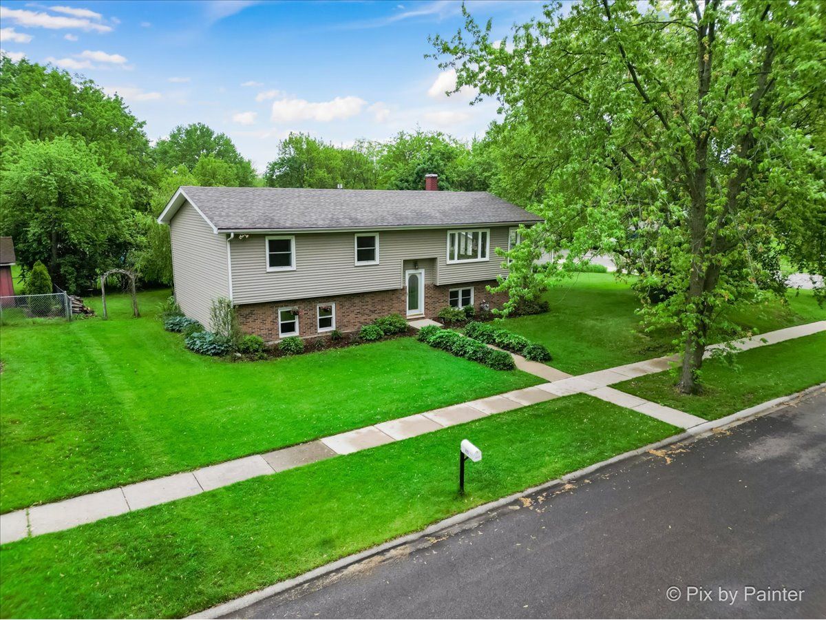 Welcome Home to this beautiful home located in a peaceful neighborhood, landscaped with colorful perennial gardens surrounding the home and detached garage. Enormous deck to use for entertaining, picnics or some quiet time outdoors. This Bi-level home features four bedrooms and two full bathrooms. Primary suite includes a full bath and fireplace on the lower level along with a gigantic family room including, heated floors, a Billiard table and accessories that are staying with the home. Also on the lower level is an 8x8 room also with heated floors that can be used as an office workspace or darkroom. Upstairs has an additional 3 bedrooms and full bath, Kitchen with breakfast bar and open eating area with living room. A storage shed for any lawn equipment, motorcycles etc has a concrete floor and is attached to the home and accessible from the outside. The oversized garage has a back door leading to the home. South Elgin School District and close to Randall Road shopping! This one won't last long! Selling AS IS.