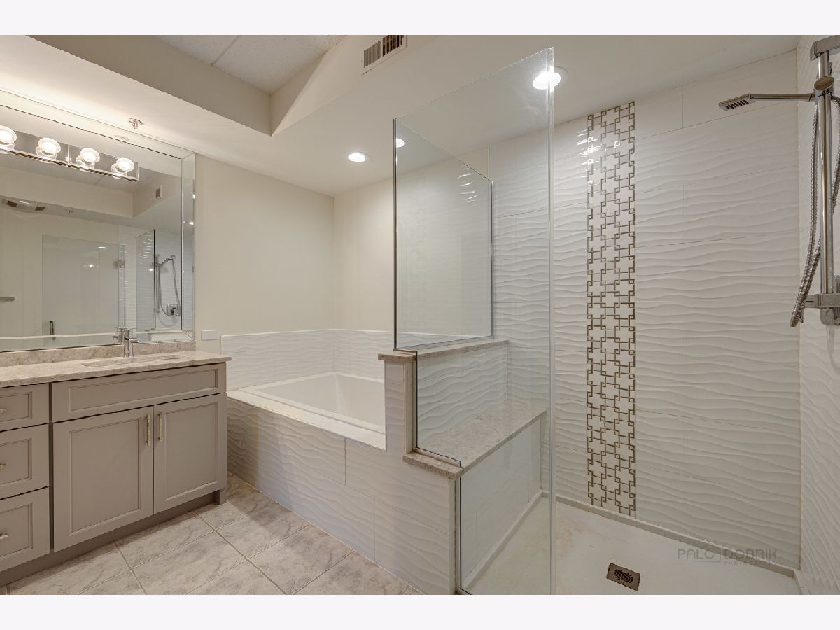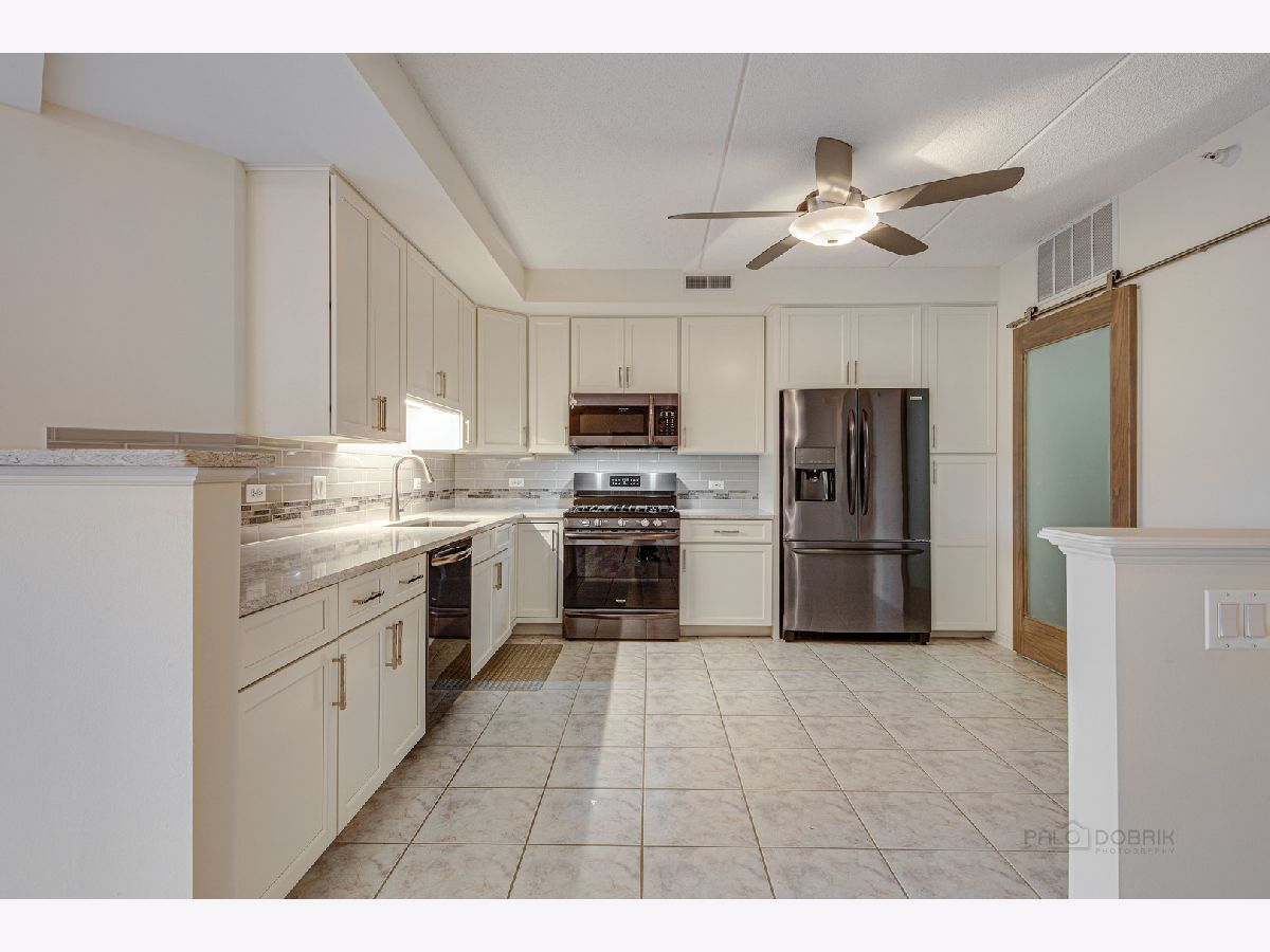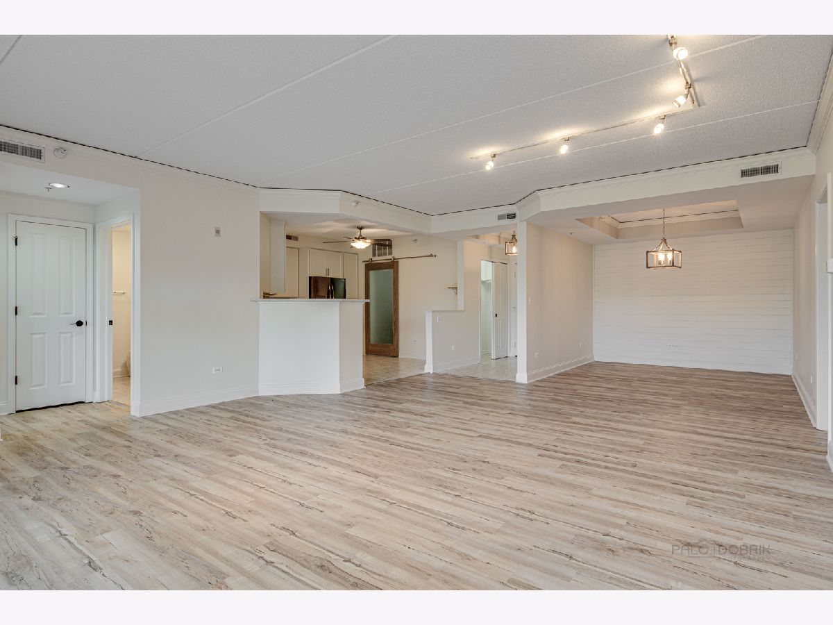 Completely renovated condo with beautiful upgrades in a secure, gated building. You'll love the open floor plan and beautiful views. The kitchen has been completely remodeled w/soft-close white cabinets, quartz countertops and new appliances. Dinners will be wonderful in the formal dining room with a ship lap accent wall and a tray ceiling. New electrical & plumbing fixtures, rubbed-oil bronze door hardware, fresh paint and lighting. The primary bath includes a large soaker tub and spacious glass shower. The laundry room features new LG washer & dryer, slop sink, and a custom frosted sliding glass privacy door! Radiant heated floors throughout (included in your monthly assessment fee). Large balcony w/gas line hookup for your cookouts. Tons of extra closet space, including a walk-in closet in the master suite w/organizers. New thermostat, smoke and CO detectors. This is the only building w/2 elevators - such a convenience! Pool, Gym and clubhouse on site! Garbage chute and storage locker on same floor as the unit. Convenient to the expressway or METRA train station in Vernon Hills. Assessment includes gas, water, garbage, parking, and common insurance. Award-winning Adlai Stevenson High School District.