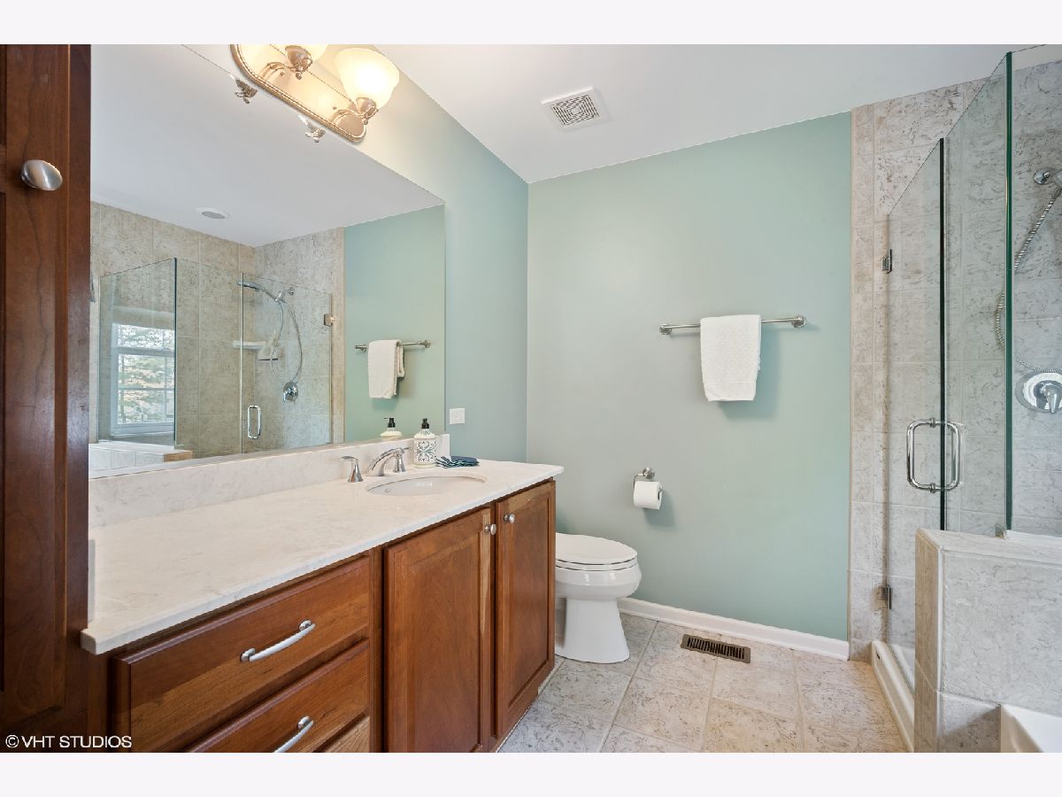 Imagine coming home to a private lane that was inspired by elegant streets around the world and English manor home architecture. Welcome to Linden Tree Lane! The moment you drive onto this beautifully landscaped and tree-lined street, the cares of the day will be washed away. Enjoy the convenience of this maintenance free community in a duplex that lives like a single family home. The 2-story entry welcomes you into the spacious living room with a fire place and large windows providing abundant natural light. The adjoining dining room with a bay window is perfect for holiday gatherings. The well appointed kitchen with gorgeous cabinets and breakfast bar, opens to the cozy family room, creating an easy flow for everyday living as well as entertaining. The main level also includes a half bath, laundry room, entry to the 2 car attached garage as well as a sliding door to a private patio- the perfect spot for a morning cup of coffee or evening glass of wine. Upstairs you'll find the primary bedroom suite with vaulted ceilings, a large walk-in closet and spa-like bathroom with soaking tub and separate shower. Two additional bedrooms, a full bath and a loft area complete this level. The full basement with high ceilings and over-sized windows adds more living space with a large rec room, a 4th bedroom with a cedar lined closet, and a full bath. This home provides a perfect blend of space for social gatherings as well as for private retreats. Convenient location near restaurants, top rated schools and Glenview's new Ice Center! This is the perfect place to Live, Work & Play!