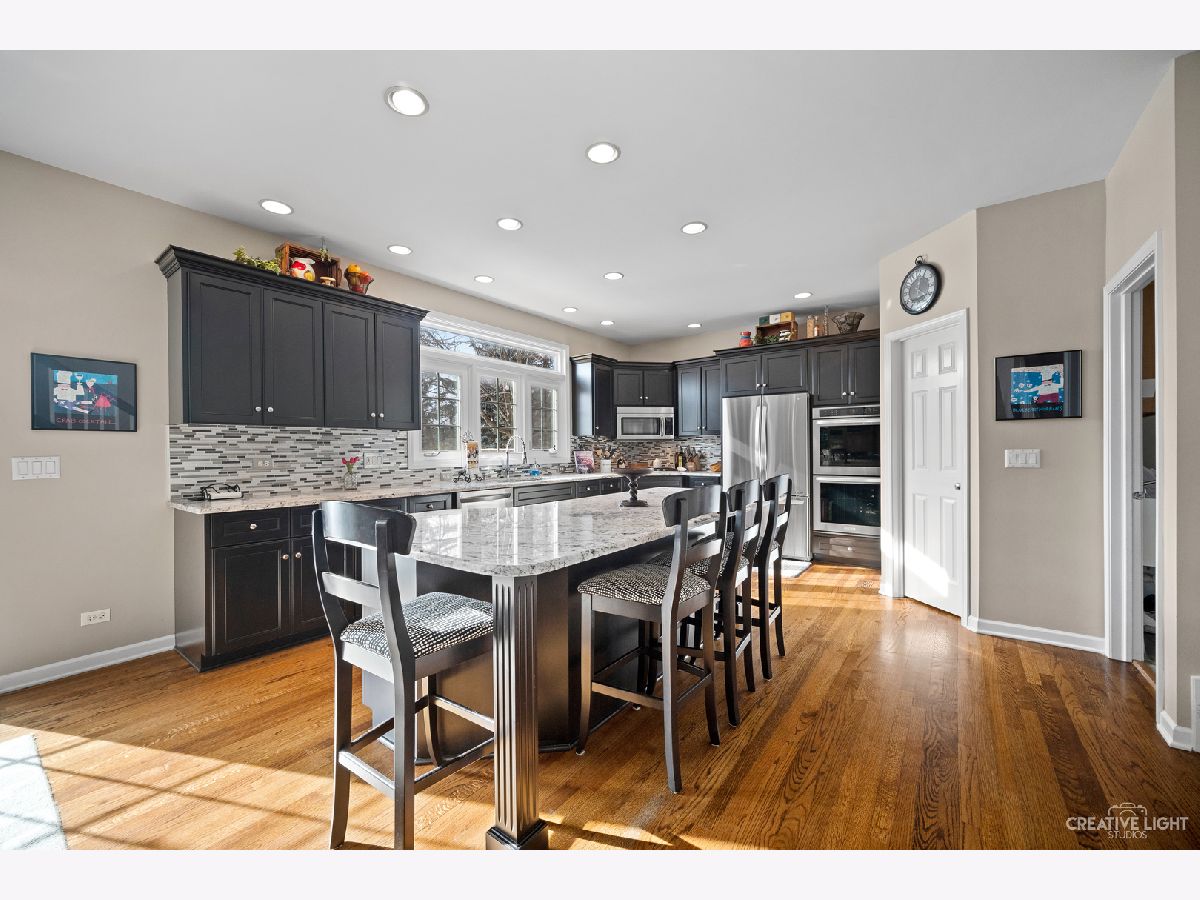 Rare find in desirable River Run subdivision. Full brick exterior Jelenik built home situated on .95 acreage. Original owners have lovingly cared for this home. Neutral paint & white trim throughout! Refinished hardwood flooring. Large updated chefs dream kitchen featuring black custom cabinetry with crown molding, oversized custom center island, wine/coffee bar nook with beverage fridge, gorgeous granite countertops with complimentary backsplash, stainless steel appliances & walk-in pantry! Two story family room boasts floor to ceiling windows & masonry fireplace. First floor office/den richly appointed with built-in bookcases, overlooking beautiful private backyard. The master suite has newly remodeled bath including soaking tub, dual granite vanity, separate shower and wood grain ceramic tile. Second bedroom with ensuite bath. Additional bedrooms share a Jack and Jill bath. Newer carpeting on 2nd level. Finished basement has expansive recreation room including large custom wet bar, 5th bedroom(currently used as 2nd office) & bath with shower. Two brand new furnaces with humidifiers, AC '17, Roof '20, Newer windows & sliding glass door. New garage doors '18. This home has one of the largest interior lots in the subdivision and has it's very own basketball court in the backyard. Two tiered deck to enjoy the beautiful sunsets. River Run equity membership included, giving access to clubhouse w/banquet room, indoor pool, sauna, outdoor pool and tennis courts. Award winning Neuqua Valley HS. Please view video!