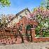 Nestled among the trees in the quiet enclave of Buena Park's Hutchinson Historic neighborhood, is this lovely 1910 prairie style home with Frank Lloyd Wright-esque additions. Lovingly maintained for over 35 years by the current homeowner, it offers an opportunity for you to move in, add your finishing aesthetic touches and continue the love and care of the home for many years to come. Stepping through the secured gated entry is a heated walkway leading you to a welcoming front porch (a design element added by the present owner). A proper foyer and coat closet leave the elements outside and take you to the home's central entry hallway. There are three gas fireplaces in this home, the first of which in the gracious living room, and it is surrounded by a custom wood chimney encasing, cabinetry and tasteful marble hearth and mantel. What will also strike you upon entry is how much the lush landscaping and neighborhood views are brought inside through the living room and adjacent sunroom windows. This theme is carried throughout the home, not only via the windows but also with five outdoor areas including terraces, porches and the main patio and gardens. Inside you will also find so many spaces for relaxing, gathering with family and entertaining. There is no shortage of storage in the main hub of the home, the kitchen. Well equipped with Miele and Thermador appliances you are prepared to apply your culinary skills for casual entertaining in the kitchen/family room's banquette area or more formal dining in the separate dining room. The second floor currently has three bedrooms and a fourth former bedroom (now dressing room) off of the primary suite. One of the other bedrooms is used as an office with custom built-in shelving and desk. The third floor is a teenager's or visiting guest's dream, with two bedrooms, a recreation room, bathroom and a fully equipped kitchen. The basement care taker's apartment has one bedroom, a bathroom, fully equipped kitchen, living room and a private entrance. You can truly make this home live the way that suits you with many options. So much more detail regarding the maintenance, mechanics and features will be shared with you as you come tour the home. We are thrilled to have the opportunity to introduce you to this special dwelling.