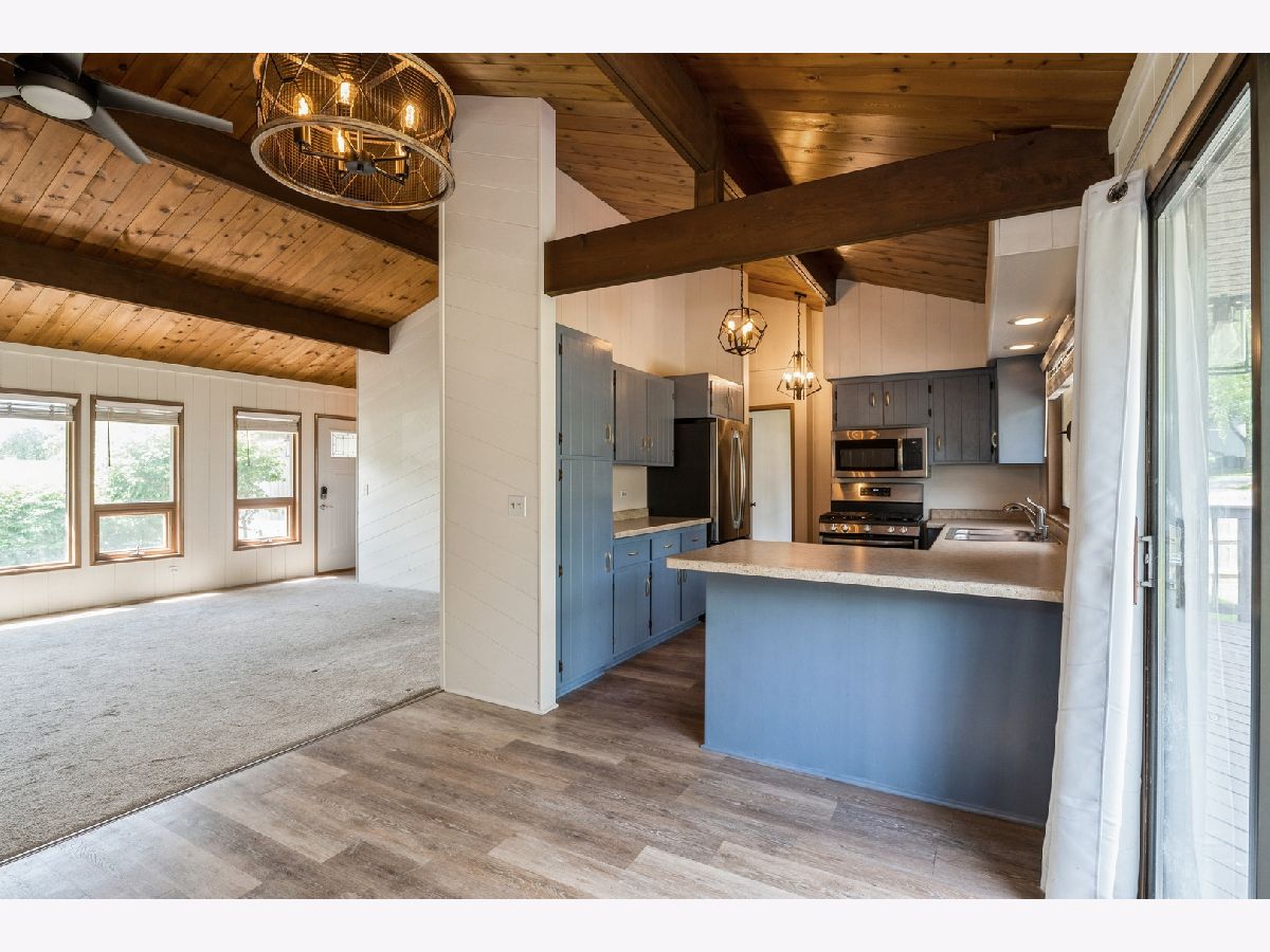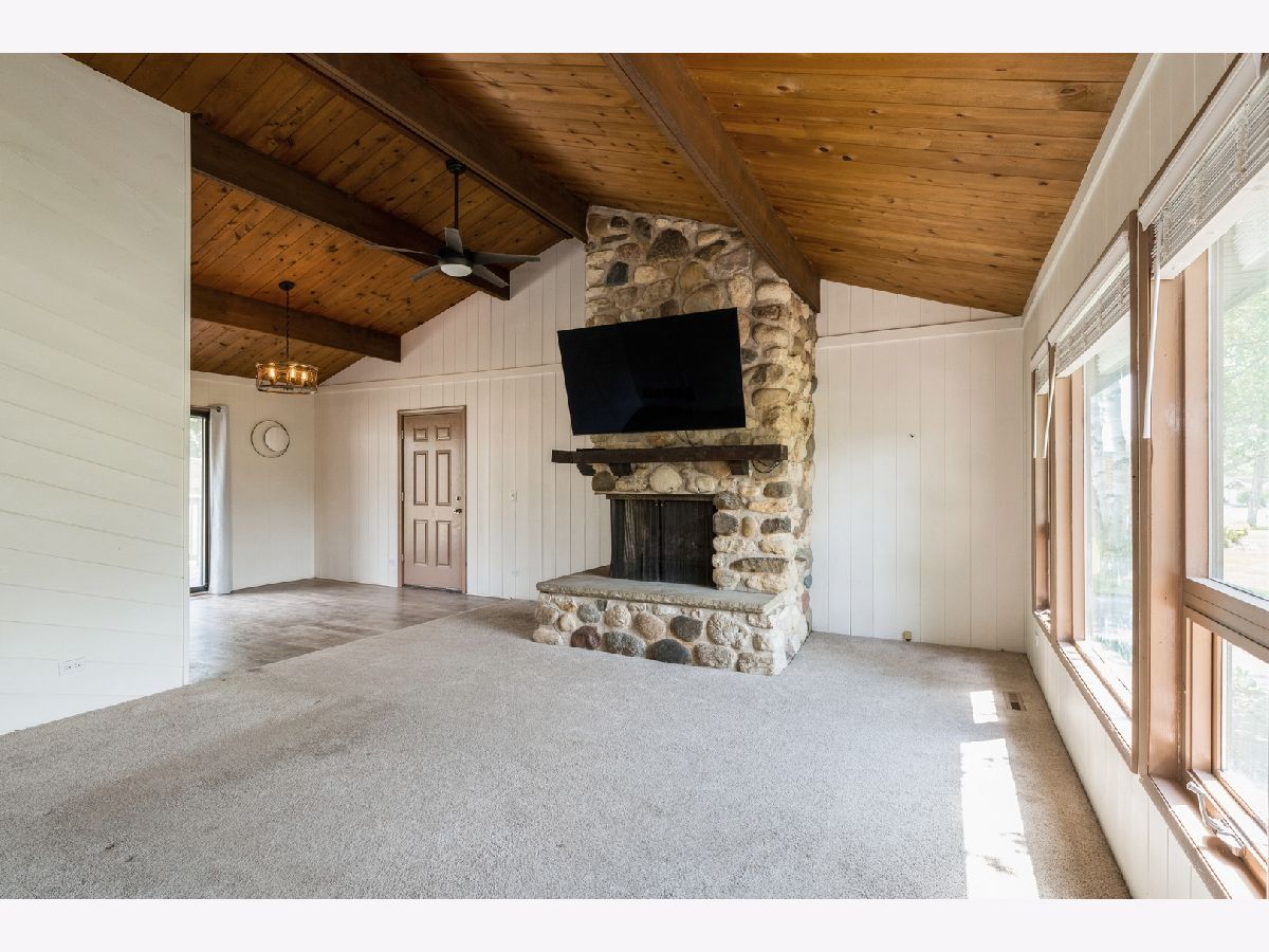 This ranch home in Cary is move-in ready. Take in the view of the Fox River on close to a half acre of land with a huge fenced yard. Nicely landscaped with a deck and patio. Inside you will find a stone fireplace, new low maintenance flooring, paint and trim throughout. The kitchen has all stainless appliances and convenient eating area and bar space. Three nice sized bedrooms and newly updated bathroom in the primary suite. The laundry is conveniently located on the main floor as well. A huge basement waiting to be finished for even more living space with a rough-in for a bathroom. There is a new furnace, new water filtration system and piping. The basement also has access to the oversized 2 car garage. Make the most of this river community on a quiet street with no through traffic. Water access for the neighborhood is just down the street.