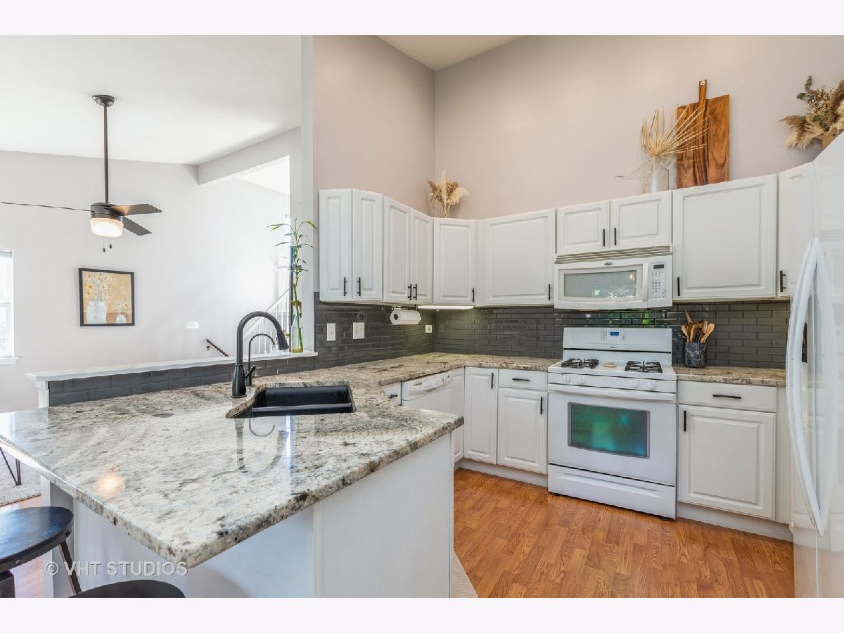 Spacious split-level, END UNIT townhome with full, ENGLISH BASEMENT! This 1800 SF home has an open floorplan and vaulted ceilings; KITCHEN, with breakfast bar and table space, overlooks the dining and living areas. Newly remodeled kitchen with beautiful GRANITE COUNTERS, and a GLASS SUBWAY TILE backsplash, and NEW SINK (2021)! The huge, finished Basement was recently remodeled (2021) with new LUXURY VINYL PLANK flooring; fresh paint, full bathroom and a separate laundry room! Main floor has wood laminate floors. Upstairs features a loft, 2 bedrooms. Large primary bedroom has vaulted ceilings and a WALK-IN CLOSET. Freshly painted gray walls throughout; new light fixtures. All appliances included! Enjoy relaxing with your morning coffee and evening cookouts on your DECK that overlooks a BEAUTIFUL YARD, PRIVATE YARD. Maintenance Free! Less than 1/4 mile to the heart of historic downtown Dundee! So close to all the fun of downtown; restaurants, shopping, parks, hiking and biking trails, yet, a very quiet neighborhood; private lot with no thru traffic! You also have easy access to the Randall Rd corridor and I90!