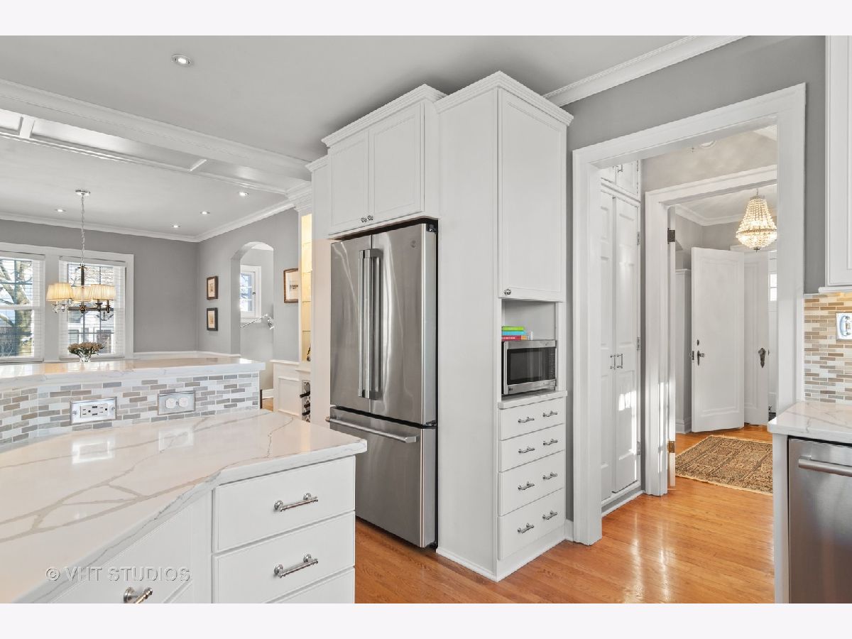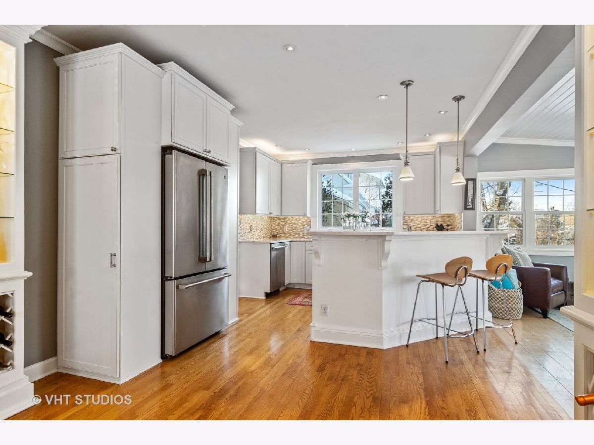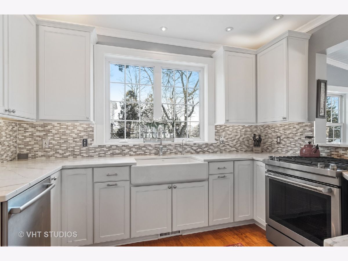 SO Charming and TOTALLY updated in sought after Barrington Village location! There is SO MUCH TO LOVE ABOUT THIS HOME!! Impressive NEW Kitchen with white cabinets, quartz counters, stainless steel appliances, tile backsplash and open to Family Room with volume wood ceiling, loads of windows, fireplace and sliders to the large and private deck. Spacious Dining Room with beautiful millwork, gorgeous architecture and built-ins. Elegant Living Room has fireplace and so much charm! The BRAND NEW Full Bath is AMAZING with massive walk-in shower, clawfoot tub, custom white cabinetry, quartz counters and all new fixtures. Half bath totally updated too. All 3 bedrooms are spacious and on the 2nd floor. Gorgeous detail throughout with high profile and crown molding, arched entryways, wainscoting, built-ins and HARDWOOD FLOORS throughout entire home. Basement has built-ins, new flooring, and plenty of storage. Spacious deck, beautiful landscaping and a 2+ car attached tandem garage. Walk to downtown, the train station and school. This home is METICULOUSLY maintained and absolutely PERFECT!!