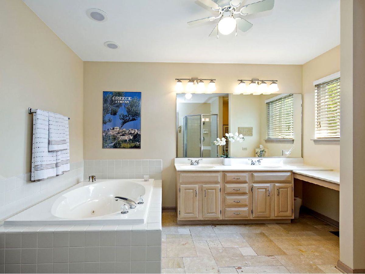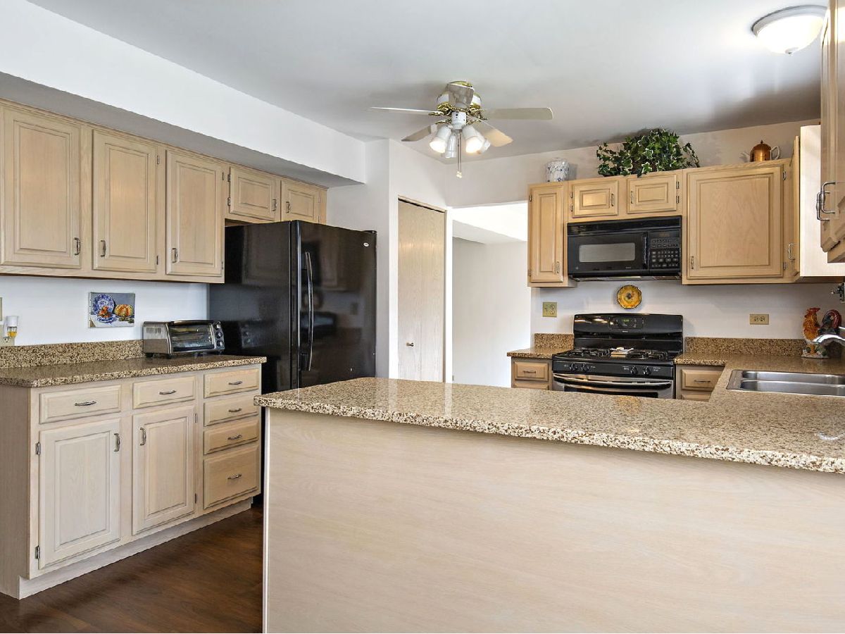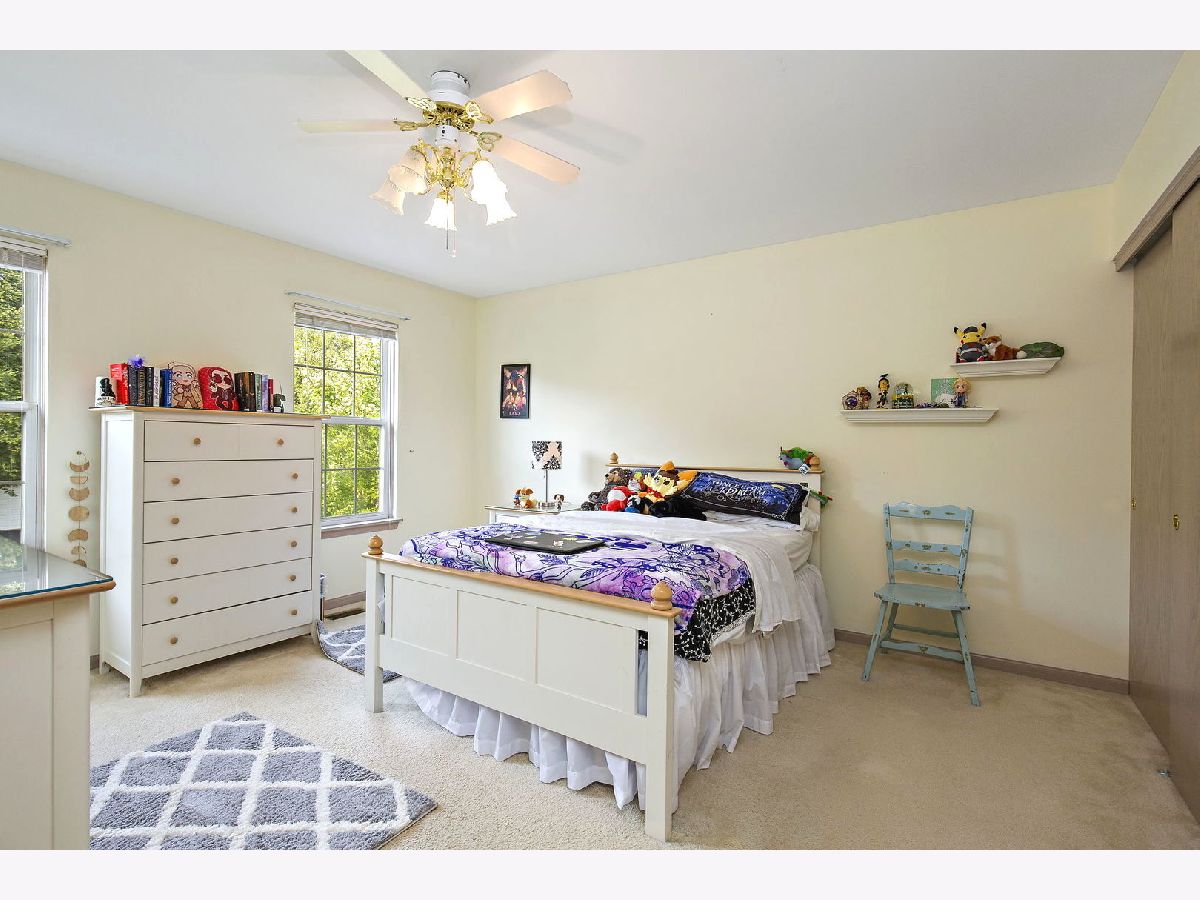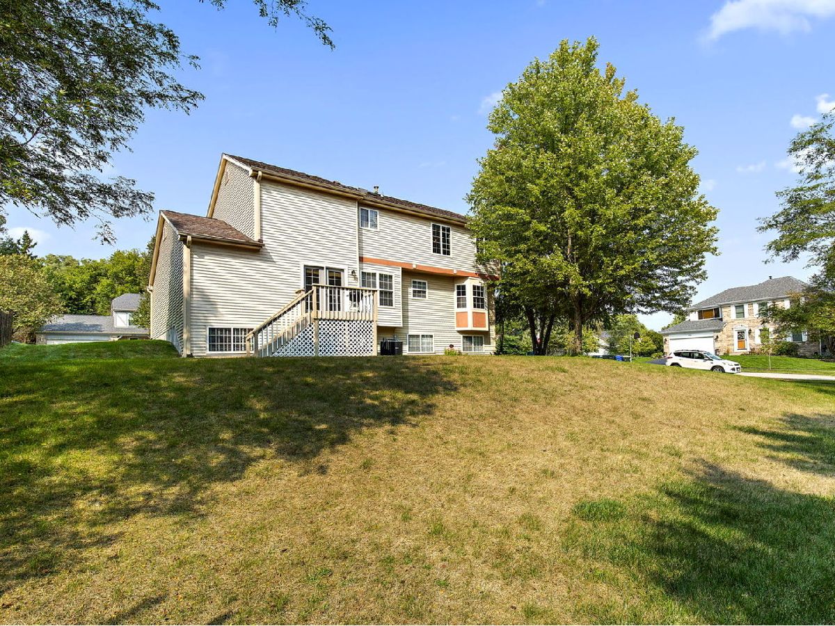 Don't miss this beautiful home located on an oversized corner lot located across the street from the entrance to scenic Raceway Woods which features over 3 miles of paved nature trails! Home features include: remodeled kitchen with refinished cabinetry, quartz countertops, and newer dishwasher, garbage disposal, refrigerator & stove - spacious family room with ceiling fan and french doors to deck area - large eating area off kitchen with boxed bay - newer vinyl plank flooring in foyer, kitchen & eating area - dining room with upgraded bay area - new carpeting on stairs, hallway and throughout second level - master bedroom with vaulted ceiling & walk-in closet - large master bath with double-bowl sink area plus dressing area, jacuzzi tub, separate shower with new shower door, ceiling fan & new travertine floor - second bedroom is 16 x 12 with a vaulted ceiling & walk-in closet - second floor bathroom with skylight & new light fixture - ceiling fans in all bedrooms - deep-pour English basement is partially finished with laundry area, rec room area, exercise area & family room - newer vinyl siding - many newer windows throughout home - newer architectural shingle roof with 30-yr warranty - newer humidifier - newer washing machine. Home is located within award-winning school districts and is conveniently located to area shopping, restaurants and expressway.