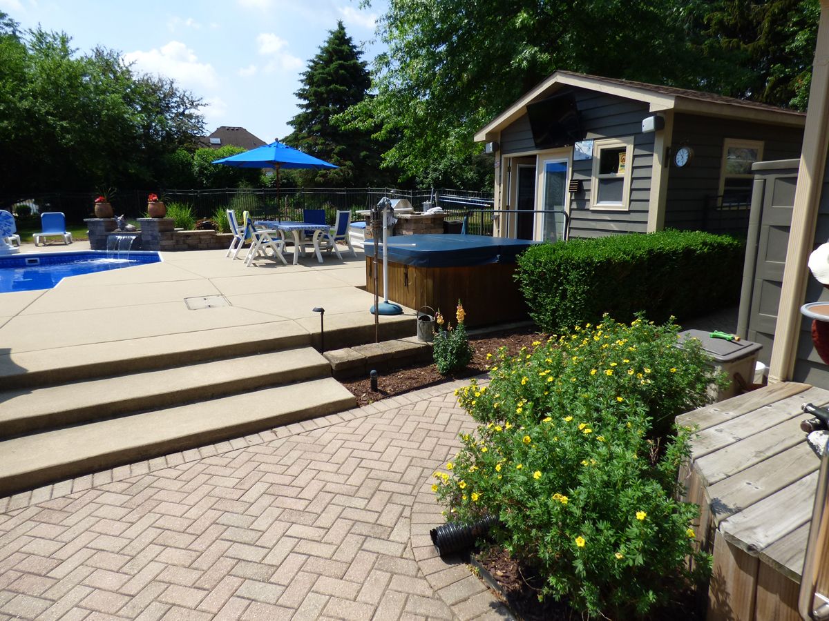 | Deck, Patio, Hot Tub, Brick Paver Patio, In Ground Pool, Outdoor Grill, Fire Pit | |
