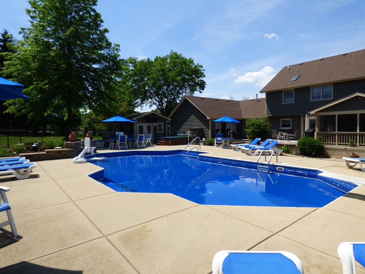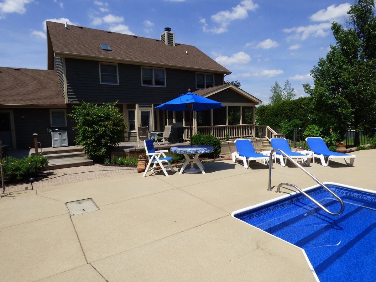 Like to entertain? Run to see this Private resort paradise~Stay home for vacation! Simply Gorgeous backyard offering award winning in ground saltwater pool/waterfall/pool house/hot tub/fire pit w/bench/built in grill/outdoor lighting & speakers~Seller paid 200K for this perfect oasis~Private 1.27 acre~Only 2 owners~Perfect inlaw suite/nanny suite/private office or teen suite on 1st floor offering private entrance/living room/full kitchen/bath w/dual head shower/bedroom/walkin closet & slider overlooking spectacular view~Formal living room w/firepace~Dining room offers hardwood floor/tray ceiling & wainscoting~family room has 2nd fireplace~seated Island kitchen has hardwood floor/backsplash/stainless appliances~1st floor den(could also be 6th bedroom)~1st floor laundry~16x13 vaulted screened porch~master suite has walk in closet/sitting area or additional closet space & bath with dual basins/whirlpool & separate shower~additional 3 bedrooms & full bath on 2nd level~finished basement offers recreation room/game room/dry bar with built in microwave/possible bedroom/half bath & storage~3 car side load heated garage~Hvac/AC/H20 heater/whole house filtration system 2 years new~Roof/siding/Garage doors 5 years new~Fabulous Hunters Hill neighborhood walking distance to Great Western Trail & Anderson park with baseball/soccer/basketball/tennis/playground & walking paths~A few short minutes to Campton square with dining/medical offices/salons/florists/dry cleaners ect~St.Charles schools too!! only serious buyers please~seller asks no home sale contingencies