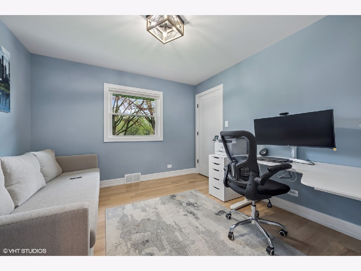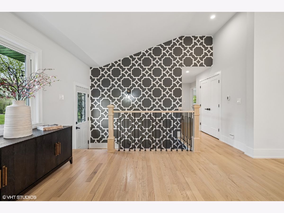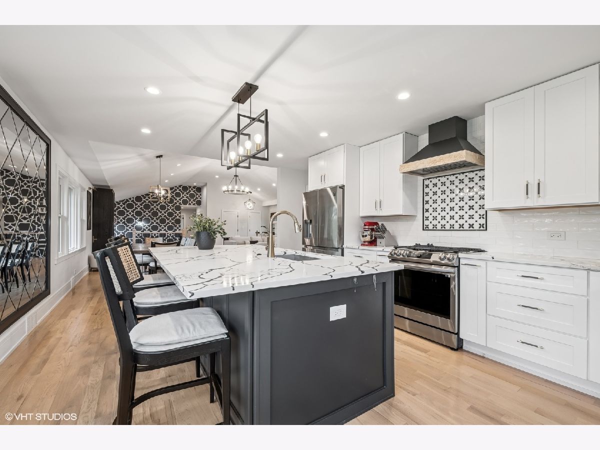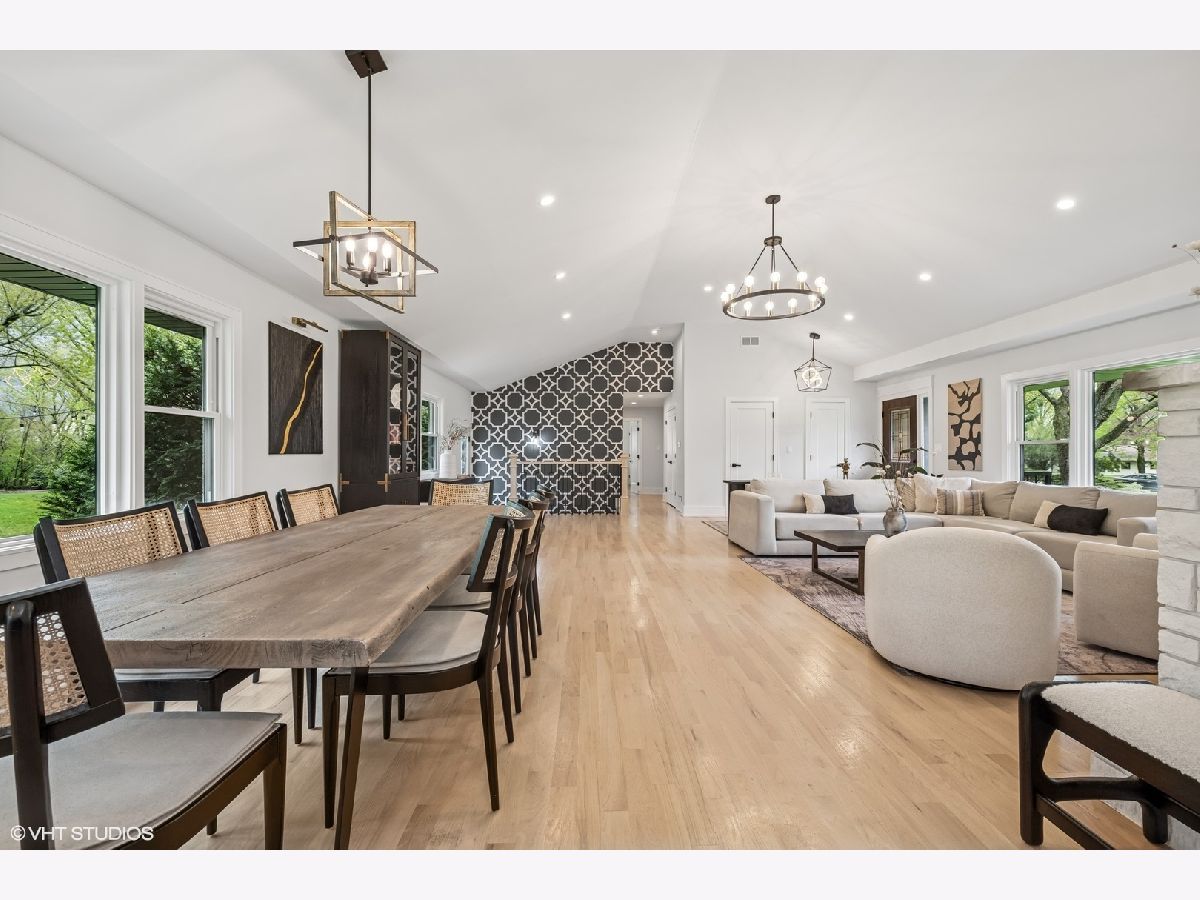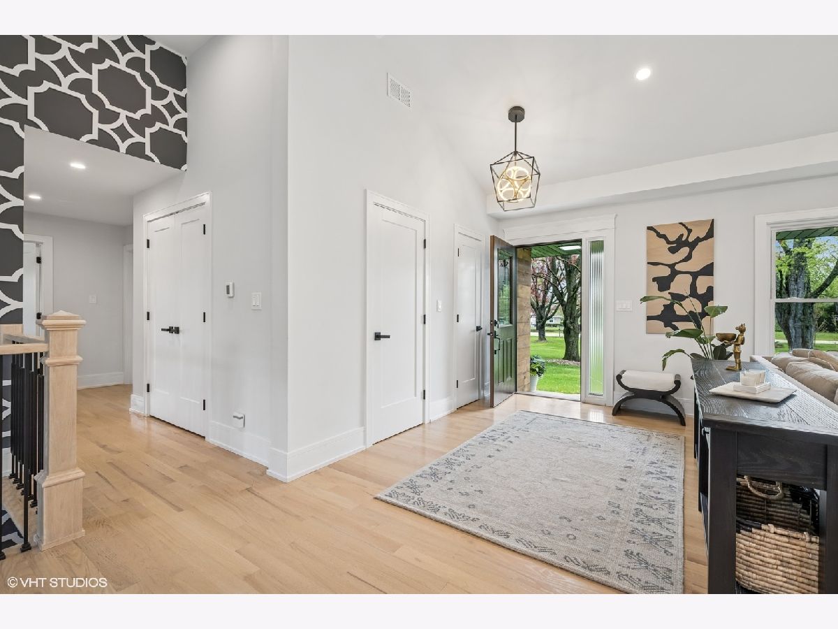 Welcome to 43 Lagoon Drive - A Modern Ranch Retreat in the Heart of Hawthorn Woods. Tucked away on a quiet, wooded lot in the sought-after Glennshire neighborhood, this all-white brick ranch has been completely reimagined for modern living. Step inside to discover silver whitewashed oak floors flowing throughout an open-concept layout filled with natural light and timeless style. The custom kitchen is a showstopper - soaring white cabinetry, stunning Calacatta Laza Quartz countertops, and a statement island illuminated by a sculptural iron and satin gold geometric light fixture. Enjoy high-end appliances including a Smart WiFi Samsung French-door refrigerator and counter-height wine fridge, all framed by a cushion subway tile backsplash with a designer focal point over a premium range beneath a black hood with limestone border. Open natural oak shelves add warmth and sophistication. Two walls of windows overlook the private, tree-lined backyard, while the immense dining area and great room feature designer lighting and a white stone fireplace with shiplap detail. The custom alder front door, scored glass sidelight, and modern iron chandelier make a striking first impression. The main level includes three generously sized bedrooms with custom plantation shutters (2023), overhead lighting, and large closets. The primary suite offers a spa-like bath with double vessel sinks, sleek black vanity with gold accents, rain shower and soaking tub in oversized subway surround, and designer tile flooring. The finished lower level boasts a bright rec room, laundry space, and large crawlspace for storage. A natural oak staircase with iron balusters adds architectural interest, and thoughtful details throughout include a stylish powder room, accent walls, and ample closets. Recent upgrades include: new driveway (2024), sump pump and backup system (2024), chimney restoration and cap (2024), and manicured landscaping with the addition of nine 70+ foot trees. Located just a short walk from the lake, park, tennis courts, baseball field, basketball courts, this move-in ready home blends luxury, comfort, and nature in one truly special package.