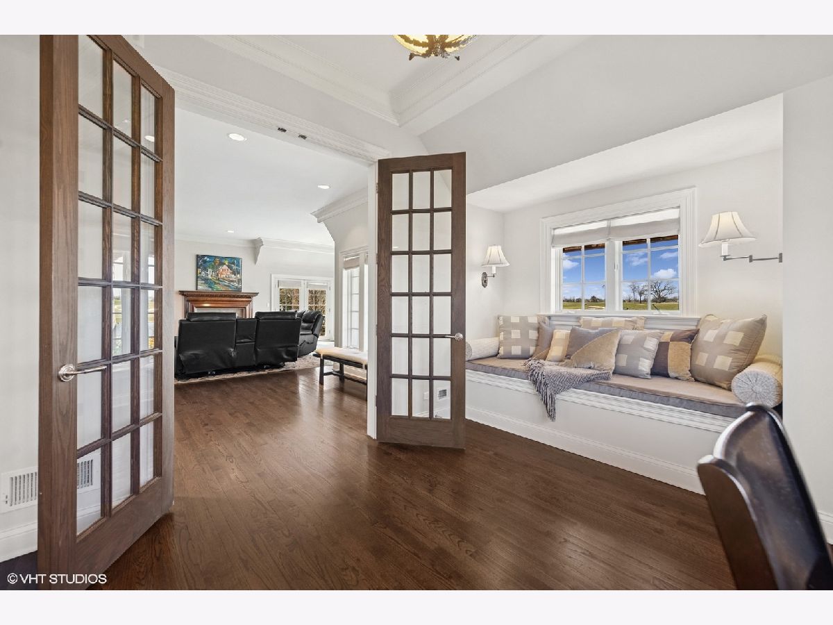 Nestled in the charming Village of Lake Forest, this classic French Manor home exudes timeless elegance and sophistication. The exterior is adorned with lush landscaping, featuring manicured gardens that frame the home and provide a serene backdrop. It is situated on a 1.64 acre lot backing up to the award-winning Conway Farms Golf Course. This home offers a well-thought-out layout that maximizes both space and functionality. Upon entering the house, the foyer leads you into the heart of the home where the living room serves as a perfect gathering space for family and friends. Large windows provide stunning views of the surrounding landscape, patio and golf course. The home features five generously sized bedrooms, including a luxurious primary suite with multiple of closets and an en-suite bathroom featuring dual sinks, two large walk-in closets, shower and a soaking tub. Additional highlights include a dedicated home office off of the primary suite with custom built-ins. The kitchen is a chef's paradise, featuring a spacious panty, butler pantry, Thermador professional stovetop with two warming stations. A charming breakfast room provides a casual dining option while overlooking the picturesque grounds. The family room, with its inviting fireplace and built-in bookshelves, provides a cozy retreat for relaxation, while large French doors open onto the terrace, seamlessly blending indoor and outdoor spaces. The second floor offers a large loft, complete with a wet bar and refrigerator. The lower level has so much to offer with a media room, exercise room, full bathroom and bedroom. In addition, you'll enjoy tons of storage throughout the home. Roof, copper gutters and downspouts replaced in 2019 Offering more than 6,000 square feet of living space and a one-of-a-kind outdoor haven, this home has been designed to meet your every need - indoors and out.