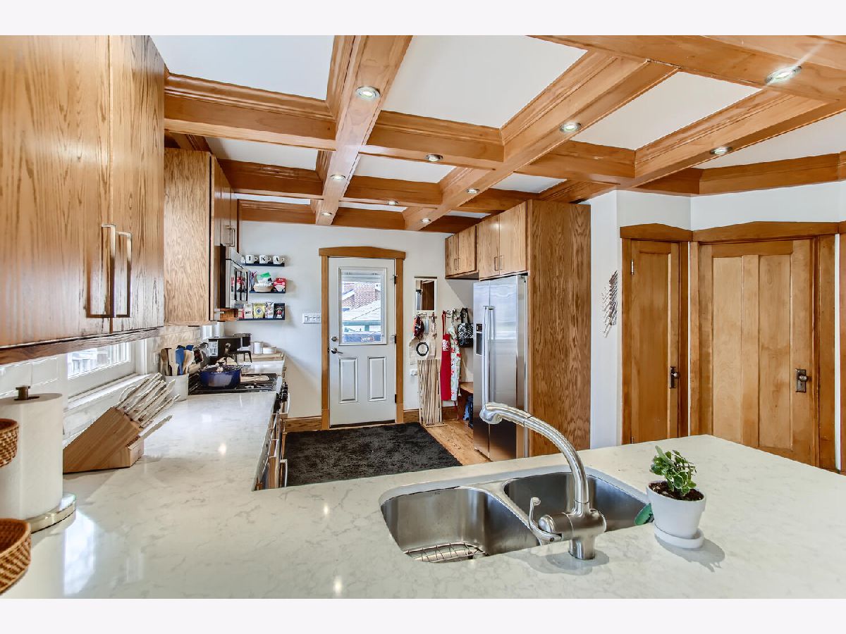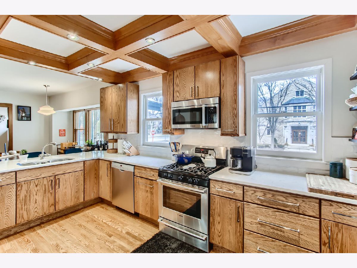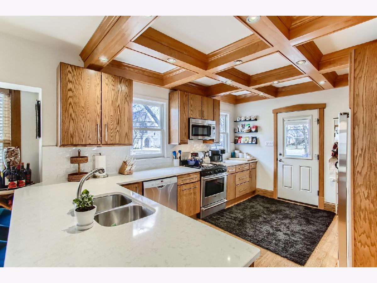 Walk-to-everything! Unbeatable location in the highly desirable Old Town neighborhood of Western Springs. This charming corner lot bungalow features incredible woodworking throughout all of it's 3 levels of living. Hardwood floors, heavy trim, custom built-ins and the incredible coffered ceiling featured in the kitchen. The kitchen was remodeled with Cambria countertops, stainless steel appliances, custom cabinetry, expansive buffet area and inset lighting. The oversized 25x16 primary suite easily accommodates a peaceful sitting area, workout area or can be divided into an additional bedroom. Full basement with recreation and bonus rooms was remodeled in 2016 and offers great natural light. Roof - 2017, Dual Zone Furnace - 2019, Washer Dryer - 2020, 75 Gallon Hot Water Heater - 2016, Windows on 1st Floor and Basement - 2014/2016. Highly desirable Laidlaw, McClure and LT schools plus the LOW property taxes makes this home an outstanding choice! Jacuzzi tub and home humidifier system AS-IS, homeowners have never used them.